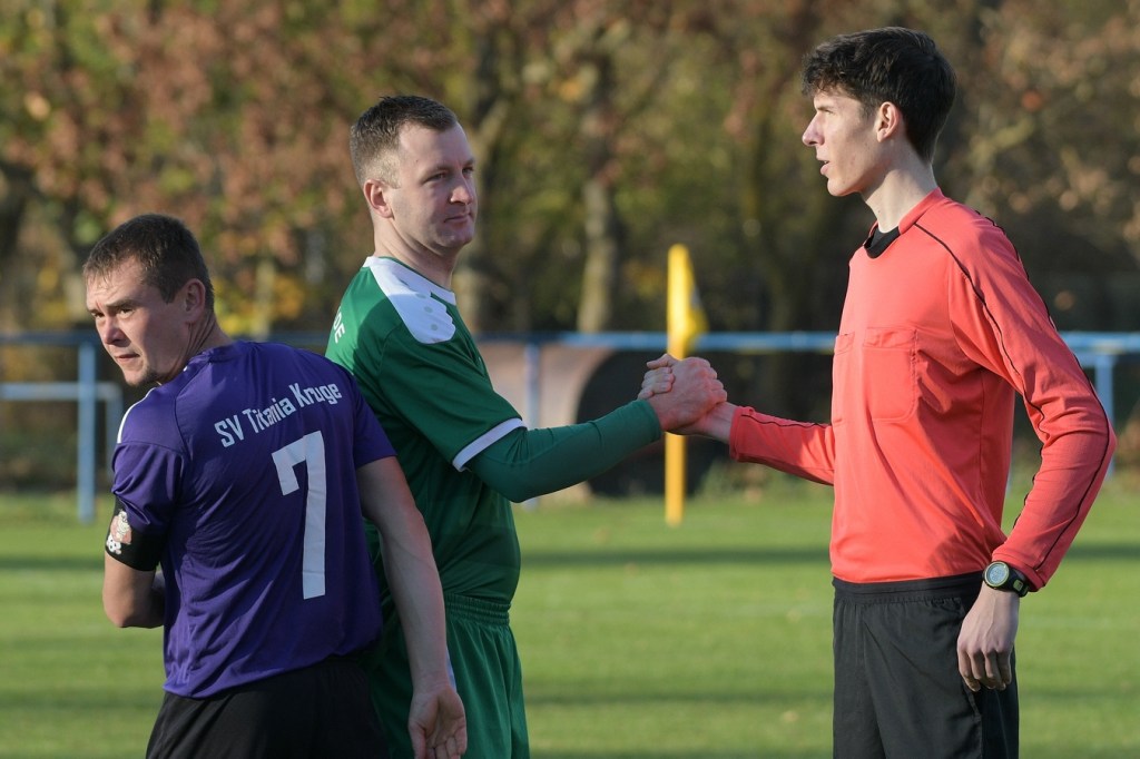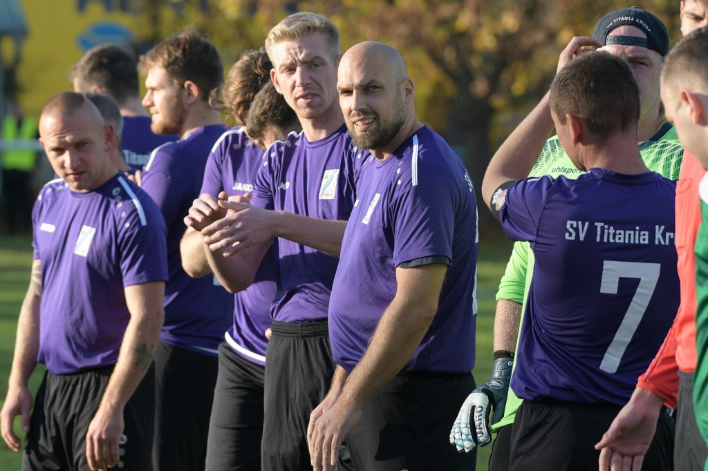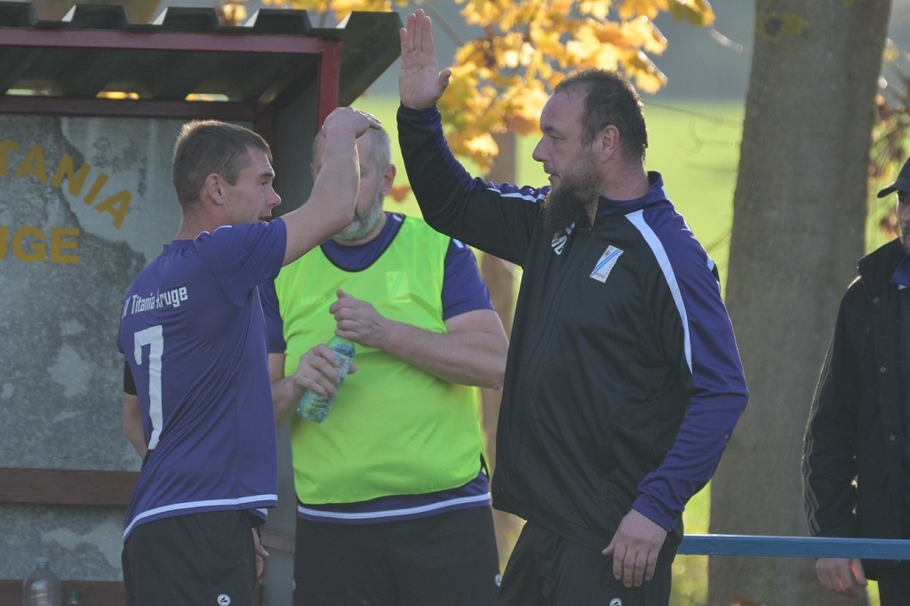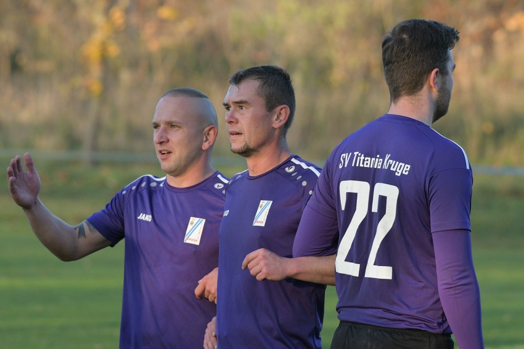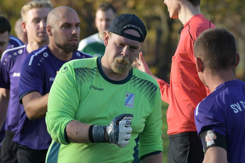 Die Gemengelage zum Wiederanpfiff änderte sich kaum. Kruge, weiterhin recht stabil in der Abwehrarbeit und eine GWA-Dritte, die immer noch nicht das sicherlich vorhandene Potential ausschöpfen konnte. Das Spiel war noch keine Minute am Laufen, da ertönte fast aus dem Nichts die Trillerpfeife von Schiedsrichter Lukas Weigel. Der hatte im Vorwärtsgang der Gäste nach einer Flanke ein Handspiel von Steven Miers gesehen und sehr zur Verwunderung aller, auch der Barnimer, auf den Punkt gezeigt. „Eigentlich schießt bei uns Pascal Klinkmann die Elfer“, hatte Henry Preuß die Einteilung des Schützen erklärt. „Wir wollten aber Marvin Menzel in die Belohnung bringen“, so die Begründung für das Umschwenken auf Menzel, der dann seinen Strafstoß halbhoch aufs Tor brachte und am liebsten im Boden versunken wäre, als Miguel Weinknecht die Kugel abwehrte. Die Befürchtungen auf Kruger Seite über Konditionsmängel in Rückstand zu geraten, blieben zunächst unbegründet. Grün-Weiss drückte weiter und kam auch immer wieder zu Möglichkeiten. „Hätte, wenn und aber“ zog sich weiter durch die Gäste-Offensiv-Aktionen. So hatte Dennis Mitschke das 0:1 auf dem Fuße, doch auch seinem Schuss fehlte die Präzision (61.). Keine sechzig Sekunden später war es dann doch passiert. Ein Eckball von der linken Seite führte in der Strafraummitte zu einem Spielerknäuel, in dem Ahrensfelde versuchte, die Kugel Richtung Tor zu bringen und Titania zu klären. Schlussendlich landete der Ball außerhalb der Ansammlung bei Niklas Hvalec, der den Ball dann abgefälscht im Netz der Hausherren einschlagen ließ. Grün-Weiss arbeitete in der Folge weiter intensiv an der Ergebnisverbesserung. So war es Pascal Klinkmann, der es mit einem Freistoßgeschoss aus gut zwanzig Metern versuchte und erfolglos blieb. Kruge kam kaum noch zur Entlastung, versuchte aber mit seltenen Kontern kleine Zeichen zu setzen. Oliver Rau kam in eine dieser Situationen und schloss unter Bedrängnis ab, mit dem Resultat, dass der Ball das Außennetz zappeln ließ (70.). Es war nun eine umkämpfte Partie, in der die Heimtruppe in der 78. Minute einen eignen ungeahnten Höhepunkt präsentierte. Ein langer Ball, bei dem die Gästeabwehr in der Abwehrkontrolle inklusive Torsteher fehlerhaft agierte, wurde durch Lukas Wieland viel umjubelt im Gästekasten untergebracht. Für Ahrensfelde war es schon ein Nackenschlag, der für die Schlussminuten das große Anrennen einläutete. Brechstangenbehaftet wurde viel probiert. Aber gegen aufopferungsvoll kämpfende Titanen gelang nicht mehr viel, sodass man Köpfe hängend und auch etwas frustbehaftet mit dem Punktverlust den Heimweg antreten musste. „Leider ist das heute auch ein wenig dem Abgeben der A-Jugendlichen, die morgen spielen, geschuldet. Dadurch haben wir schon ein wenig Kraft verloren. Wenn Du aber die Dinger vorne nicht reinmachst, dann kommt so etwas heraus. Ich denke, das Unentschieden geht so in Ordnung“, so das Statement des Ahrensfelder Verantwortlichen Henry Preuß. Sein Gegenüber, Hans Mühlenhaupt, der im Übrigen seine Jungs neunzig Minuten intensiv verbal antrieb, zeigte sich mit dem Remis mehr als zufrieden. „Sicherlich ist der Punktgewinn glücklich, aber bestimmt auch nicht unverdient. Ahrensfelde hatte mehr vom Spiel und auch die klareren Chancen. Aber meine Truppe hat gekämpft bis zum Letzten. Ich denke, wir haben uns den Punkt auch irgendwie verdient.“