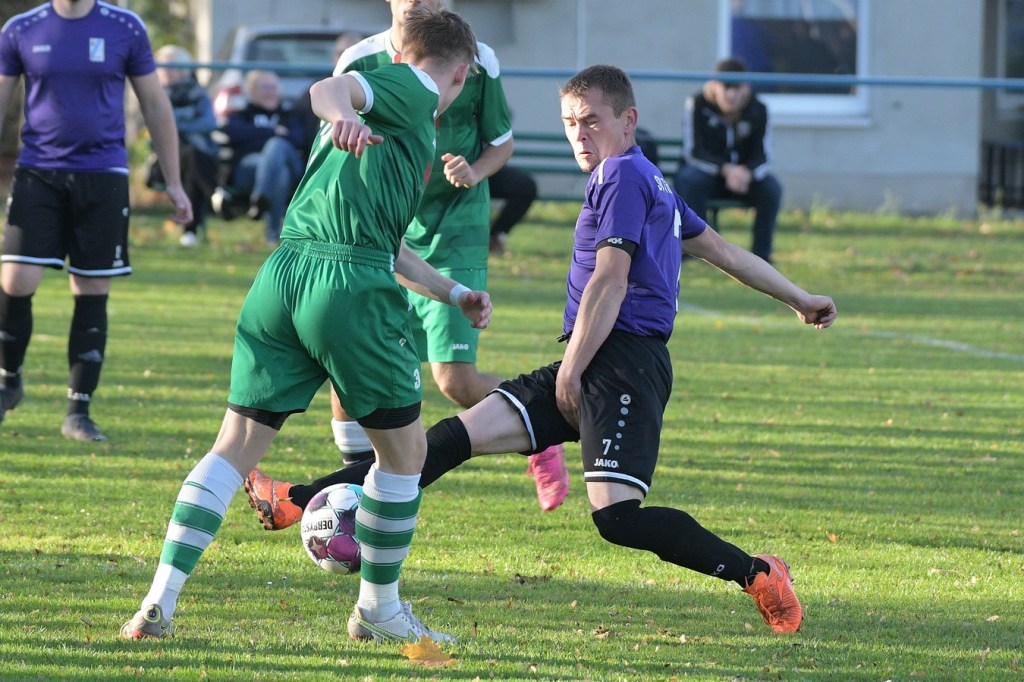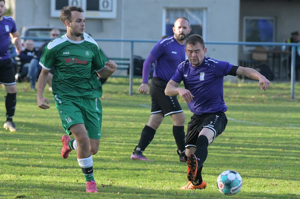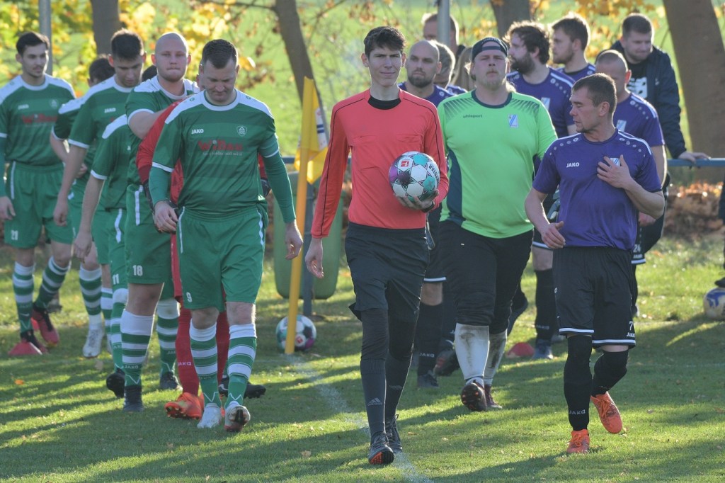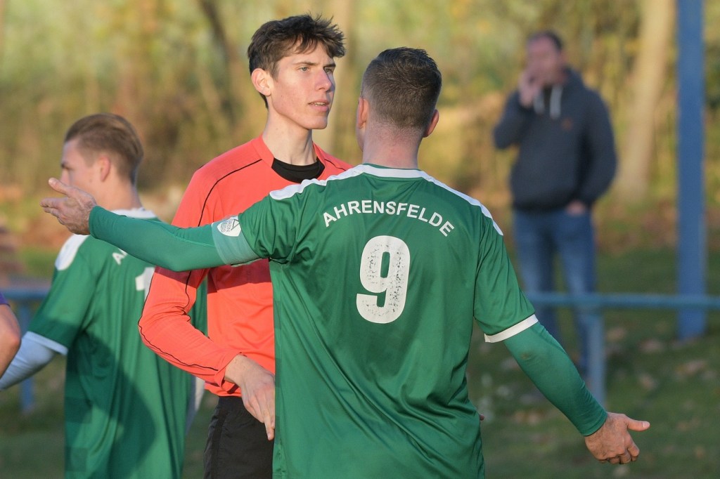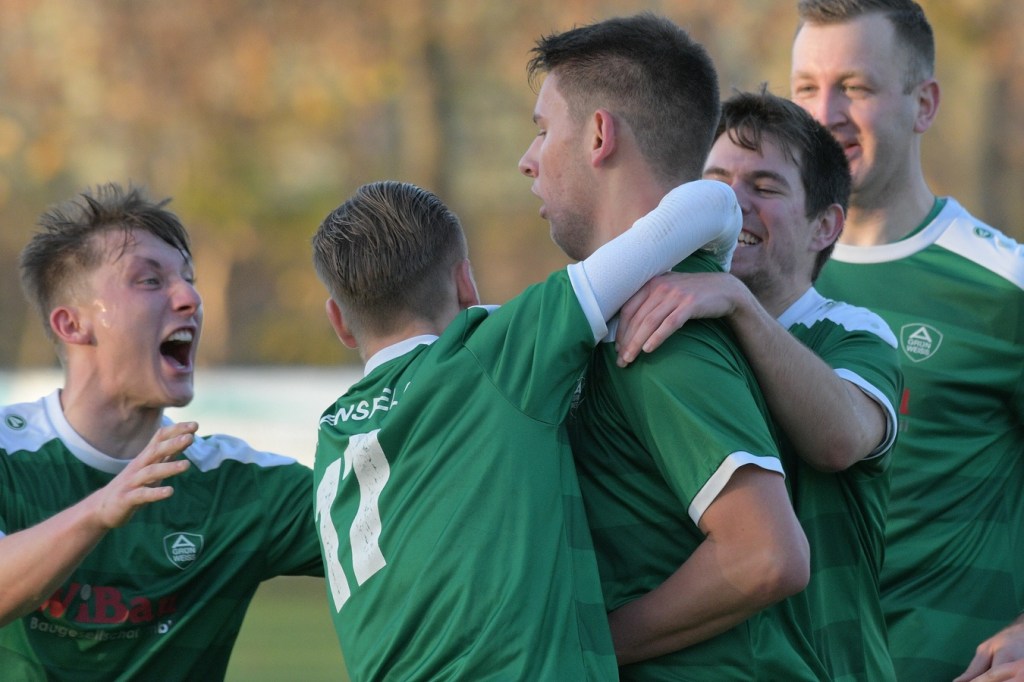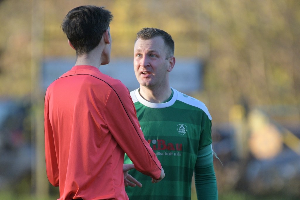 Die Gemengelage zum Wiederanpfiff änderte sich kaum. Kruge, weiterhin recht stabil in der Abwehrarbeit und eine GWA-Dritte, die immer noch nicht das sicherlich vorhandene Potential ausschöpfen konnte. Das Spiel war noch keine Minute am Laufen, da ertönte fast aus dem Nichts die Trillerpfeife von Schiedsrichter Lukas Weigel. Der hatte im Vorwärtsgang der Gäste nach einer Flanke ein Handspiel von Steven Miers gesehen und sehr zur Verwunderung aller, auch der Barnimer, auf den Punkt gezeigt. „Eigentlich schießt bei uns Pascal Klinkmann die Elfer“, hatte Henry Preuß die Einteilung des Schützen erklärt. „Wir wollten aber Marvin Menzel in die Belohnung bringen“, so die Begründung für das Umschwenken auf Menzel, der dann seinen Strafstoß halbhoch aufs Tor brachte und am liebsten im Boden versunken wäre, als Miguel Weinknecht die Kugel abwehrte. Die Befürchtungen auf Kruger Seite über Konditionsmängel in Rückstand zu geraten, blieben zunächst unbegründet. Grün-Weiss drückte weiter und kam auch immer wieder zu Möglichkeiten. „Hätte, wenn und aber“ zog sich weiter durch die Gäste-Offensiv-Aktionen. So hatte Dennis Mitschke das 0:1 auf dem Fuße, doch auch seinem Schuss fehlte die Präzision (61.). Keine sechzig Sekunden später war es dann doch passiert. Ein Eckball von der linken Seite führte in der Strafraummitte zu einem Spielerknäuel, in dem Ahrensfelde versuchte, die Kugel Richtung Tor zu bringen und Titania zu klären. Schlussendlich landete der Ball außerhalb der Ansammlung bei Niklas Hvalec, der den Ball dann abgefälscht im Netz der Hausherren einschlagen ließ. Grün-Weiss arbeitete in der Folge weiter intensiv an der Ergebnisverbesserung. So war es Pascal Klinkmann, der es mit einem Freistoßgeschoss aus gut zwanzig Metern versuchte und erfolglos blieb. Kruge kam kaum noch zur Entlastung, versuchte aber mit seltenen Kontern kleine Zeichen zu setzen. Oliver Rau kam in eine dieser Situationen und schloss unter Bedrängnis ab, mit dem Resultat, dass der Ball das Außennetz zappeln ließ (70.). Es war nun eine umkämpfte Partie, in der die Heimtruppe in der 78. Minute einen eignen ungeahnten Höhepunkt präsentierte. Ein langer Ball, bei dem die Gästeabwehr in der Abwehrkontrolle inklusive Torsteher fehlerhaft agierte, wurde durch Lukas Wieland viel umjubelt im Gästekasten untergebracht. Für Ahrensfelde war es schon ein Nackenschlag, der für die Schlussminuten das große Anrennen einläutete. Brechstangenbehaftet wurde viel probiert. Aber gegen aufopferungsvoll kämpfende Titanen gelang nicht mehr viel, sodass man Köpfe hängend und auch etwas frustbehaftet mit dem Punktverlust den Heimweg antreten musste. „Leider ist das heute auch ein wenig dem Abgeben der A-Jugendlichen, die morgen spielen, geschuldet. Dadurch haben wir schon ein wenig Kraft verloren. Wenn Du aber die Dinger vorne nicht reinmachst, dann kommt so etwas heraus. Ich denke, das Unentschieden geht so in Ordnung“, so das Statement des Ahrensfelder Verantwortlichen Henry Preuß. Sein Gegenüber, Hans Mühlenhaupt, der im Übrigen seine Jungs neunzig Minuten intensiv verbal antrieb, zeigte sich mit dem Remis mehr als zufrieden. „Sicherlich ist der Punktgewinn glücklich, aber bestimmt auch nicht unverdient. Ahrensfelde hatte mehr vom Spiel und auch die klareren Chancen. Aber meine Truppe hat gekämpft bis zum Letzten. Ich denke, wir haben uns den Punkt auch irgendwie verdient.“