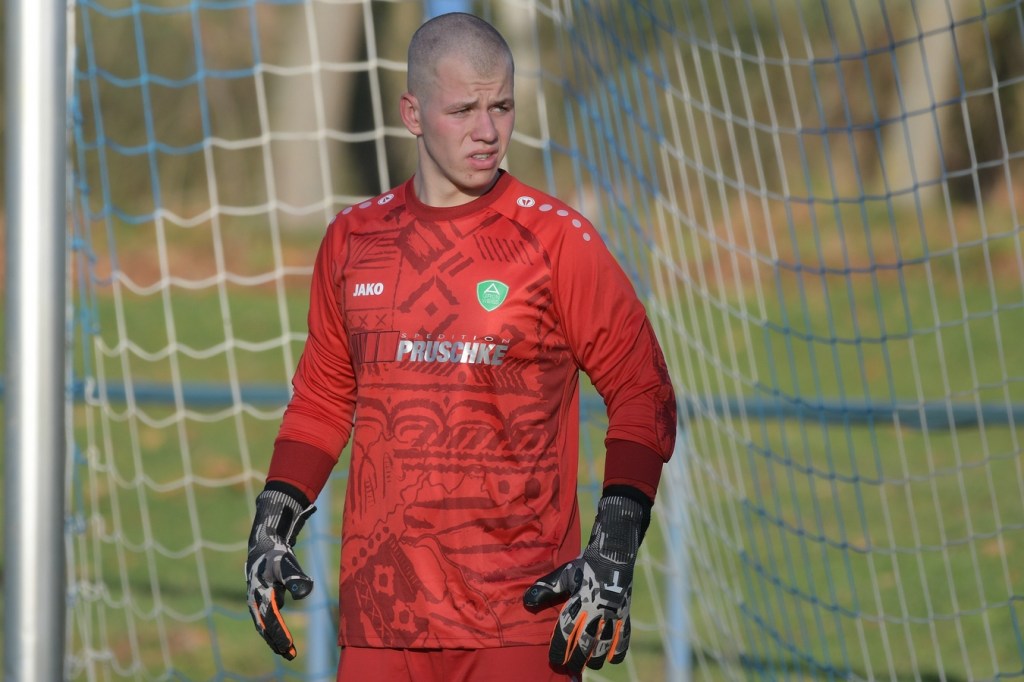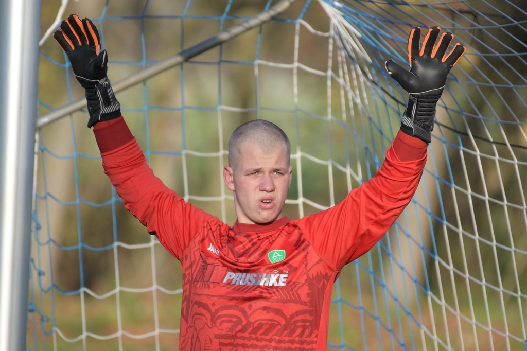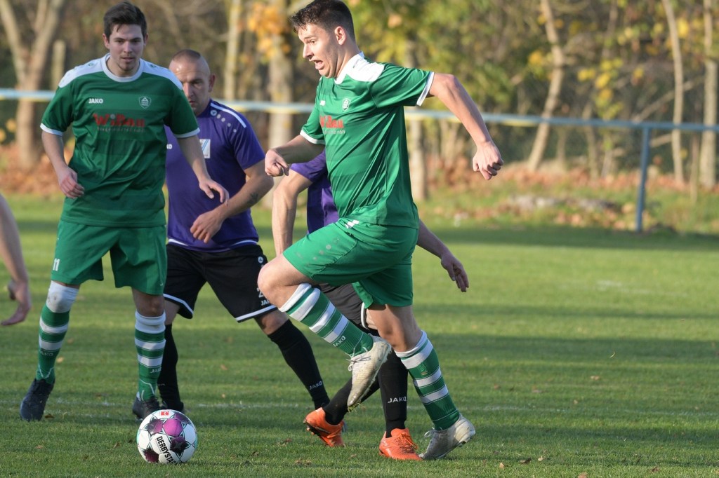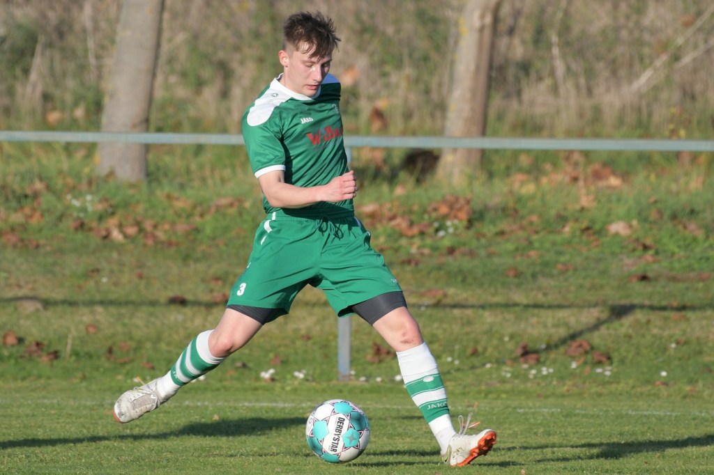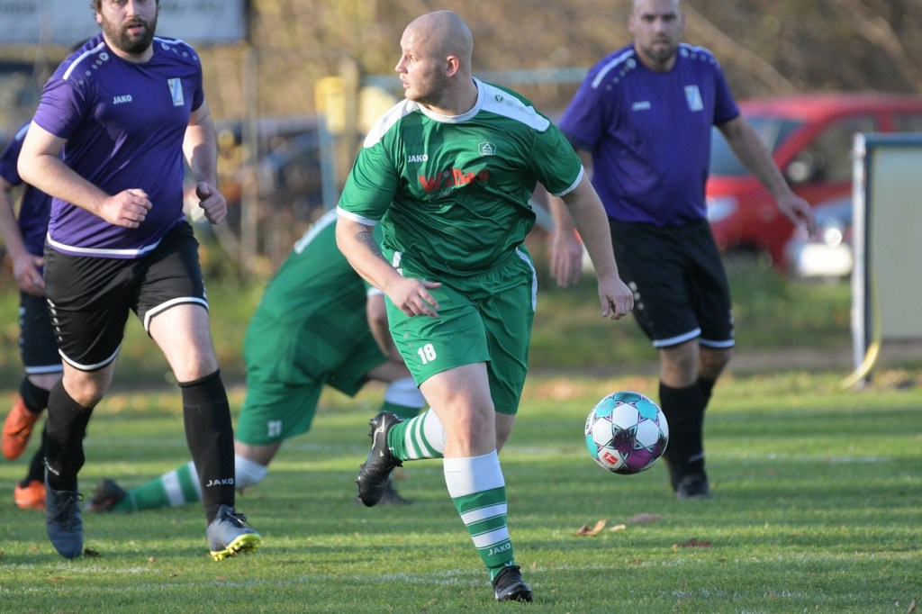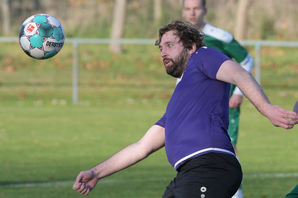 Die Begegnung brauchte eine spürbare Warmwerde-Phase. Während die Gäste lange nach der spielerischen Linie suchten, machte die Kruger Truppe in der Abwehr vieles richtig. Ebenfalls positiv war der Fakt, dass man sich nicht hinten reinstellte, sondern auch versuchte Rauchzeichen zu setzen. Die Nullnummer in den Torabschlüssen auf beiden Seiten beendete Ahrensfeldes Pascal Klinkmann mit einem Fernschuss, welcher weit neben dem Kasten ins Aus ging, in der 17. Minute. In der Folge trat Gäste-Kapitän Marvin Menzel in seiner Präsenz, seine Farben in Front zu schießen, stark in den Vordergrund. Einen langen Ball in den rechten Gäste-Strafraum verwertete er mit einem Schuss aus spitzem Winkel ans Außennetz (18.) und drei Minuten später versemmelte er eine Doppelchance. Beim ersten Versuch scheiterte er am gut aufgelegten Miguel Weinknecht. Den abgewehrten Ball, welcher genau vor seine Füße sprang, schoss er ohne Qualität in die Kruger Nachmittagssonne. Aber auch Menzels Kollegen haderten mit ihrem Schussglück. In der 25. Minute kam eine Flanke von der rechten Seite in den Strafraum, wo Jeremy Schröder vollkommen blank das fast leere Tor vor sich hatte. Schlussendlich fehlte ihm die Körperspannung und die Gier bei seinem Schuss, der an Lattenunterkante landete und im Spiel blieb. Trotz der guten Barnimer Möglichkeiten war Kruge nicht in der Dauerbelagerung. Ansätze von Offensivaktionen waren durchaus vorhanden, wurden aber viel zu schnell wieder hergegeben. Auf Ahrensfelder Seite stockte der Angriffsmotor immer wieder, weil man einfach nicht ins eigene Spiel fand. Statische Phasen, mit zum Teil hoher Fehlerquote in der Ballverteilung, brachten die eigenen Vorwärtsgänge oft zum Erliegen. Dieser Umstand machte es den Titanen aber auch leicht, defensiv kaum aus der Ordnung zu geraten. Sehr gute Möglichkeiten für Grün-Weiss ploppten immer wieder auf: Marvin Menzel, gut an der Strafraumgrenze positioniert, mit einem strammen Geschoß, knapp vorbei (28.). Dann Nico Salvatore Gliese, dessen Kopfball vollkommen verunglückte (34.). Auch der Kopfball von Pascal Knote nach einem Eckball blieb ohne Wirkung (36.). Der sehenswert angesetzte Fallrückzieher von Marcel Adamowicz war dann auch nur für die Galerie (41.). „Schwere Geburt“, hatte Ahrensfeldes Coach Henry Preuß in seinen Bart gebrubbelt und damit genau ins Schwarze getroffen. In der 44. Minute wäre dann der ganze Gäste-Aufwand fast in die Hose gegangen. Alexander Petzold war für seine Titania über rechts unterwegs. Sein Diagonalball in den Gäste-Strafraum flutschte an Keeper Marvin Mähnelt und Oliver Rau vorbei und landete unberührt im Aus. Ein etwas längeres Bein von Rau hätte dem Ball bestimmt die erfolgversprechende Richtung geben können. So ging es torlos in die Halbzeit, in der sich die Gäste mit ihrem Misserfolg an die eigene Nase fassen mussten.