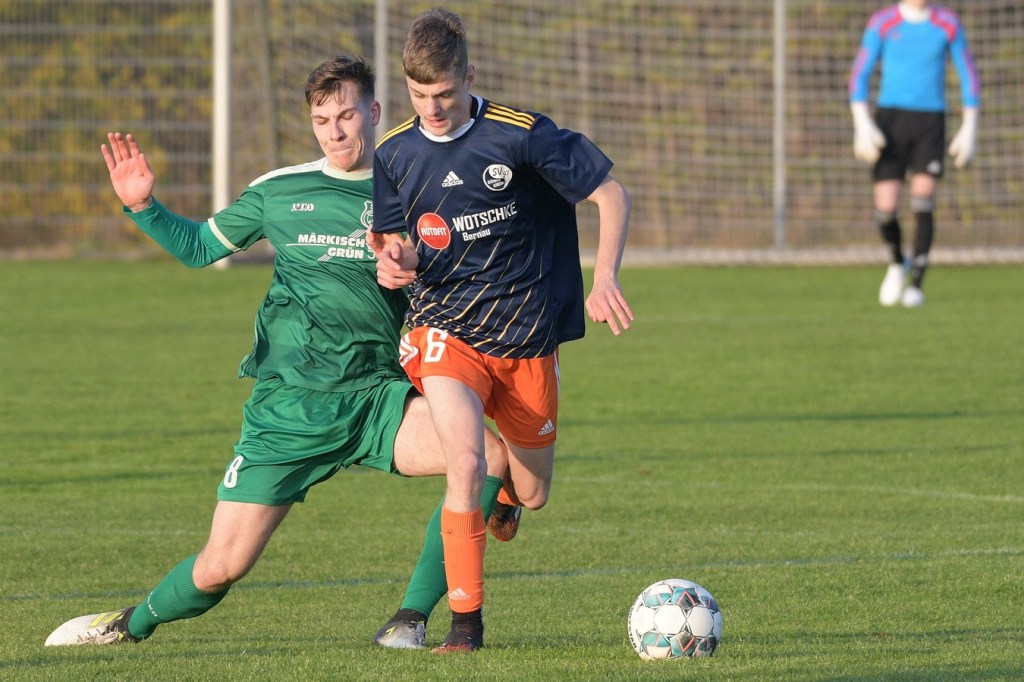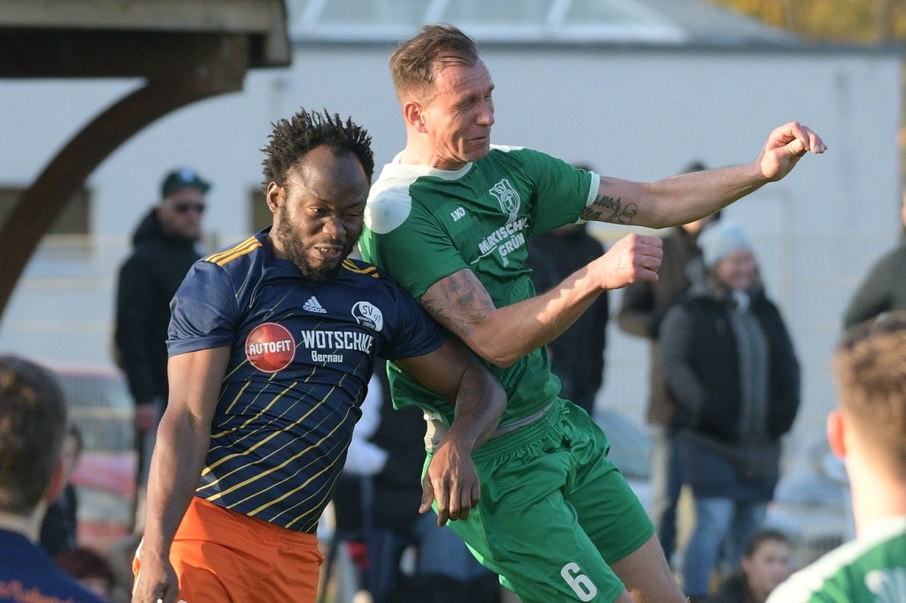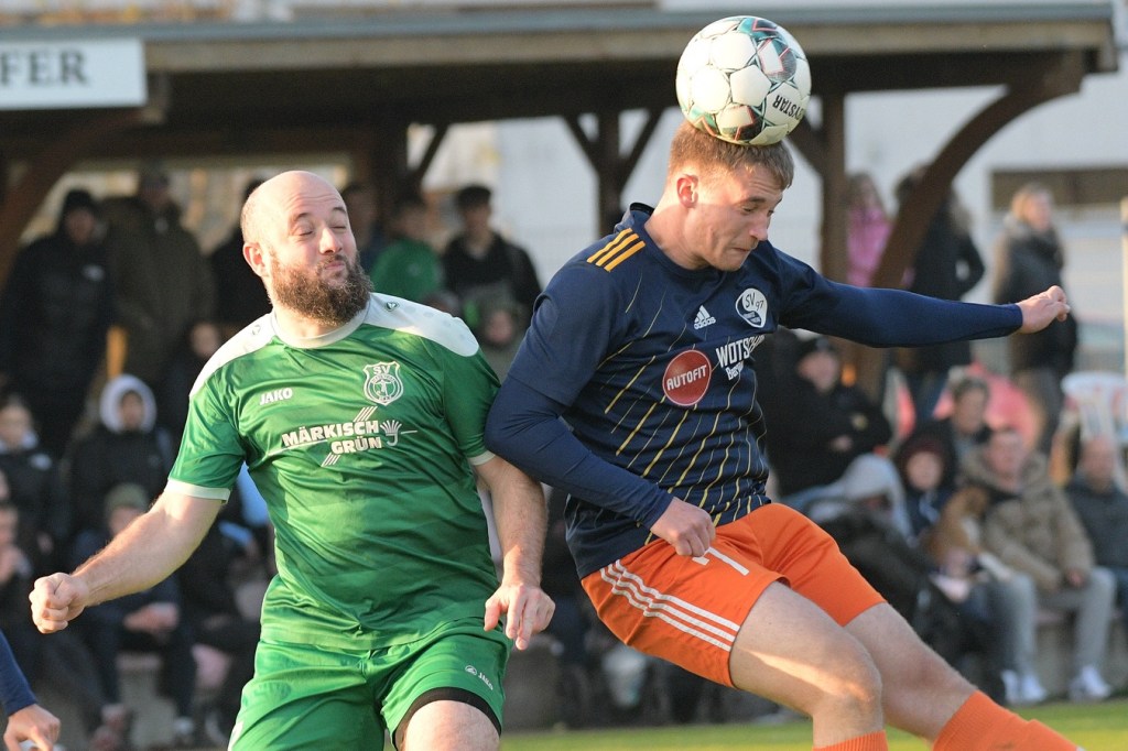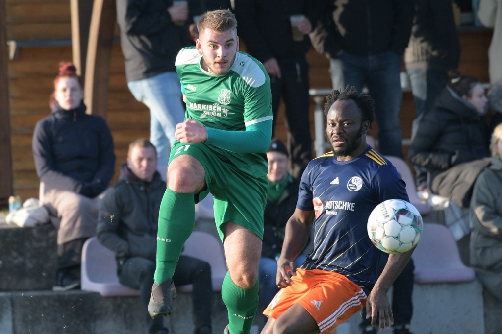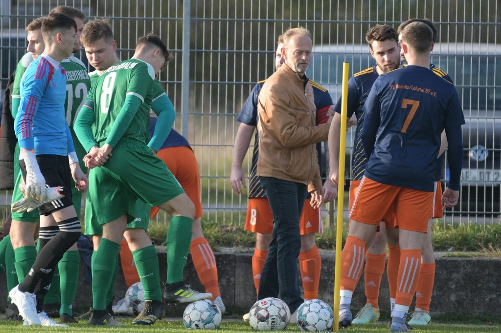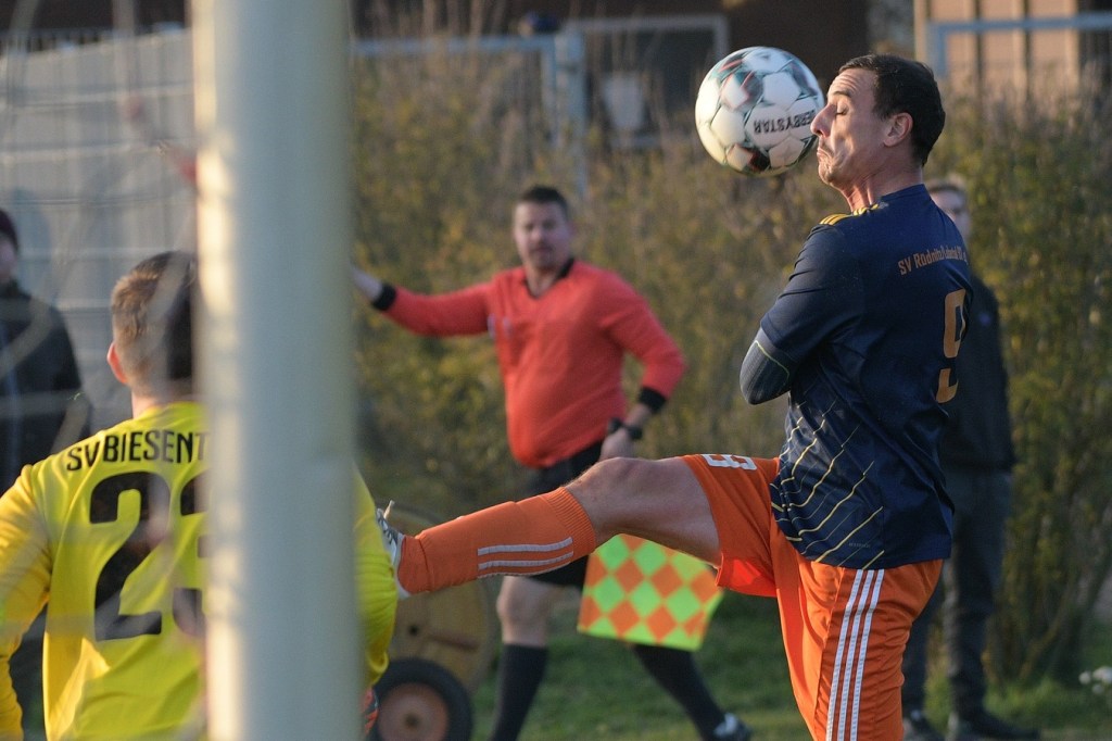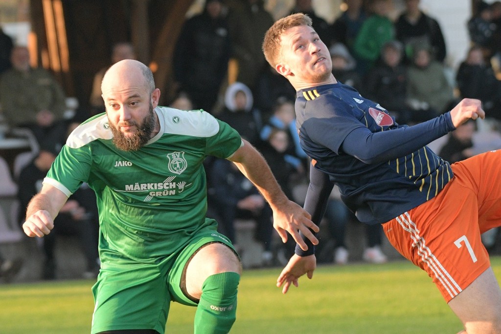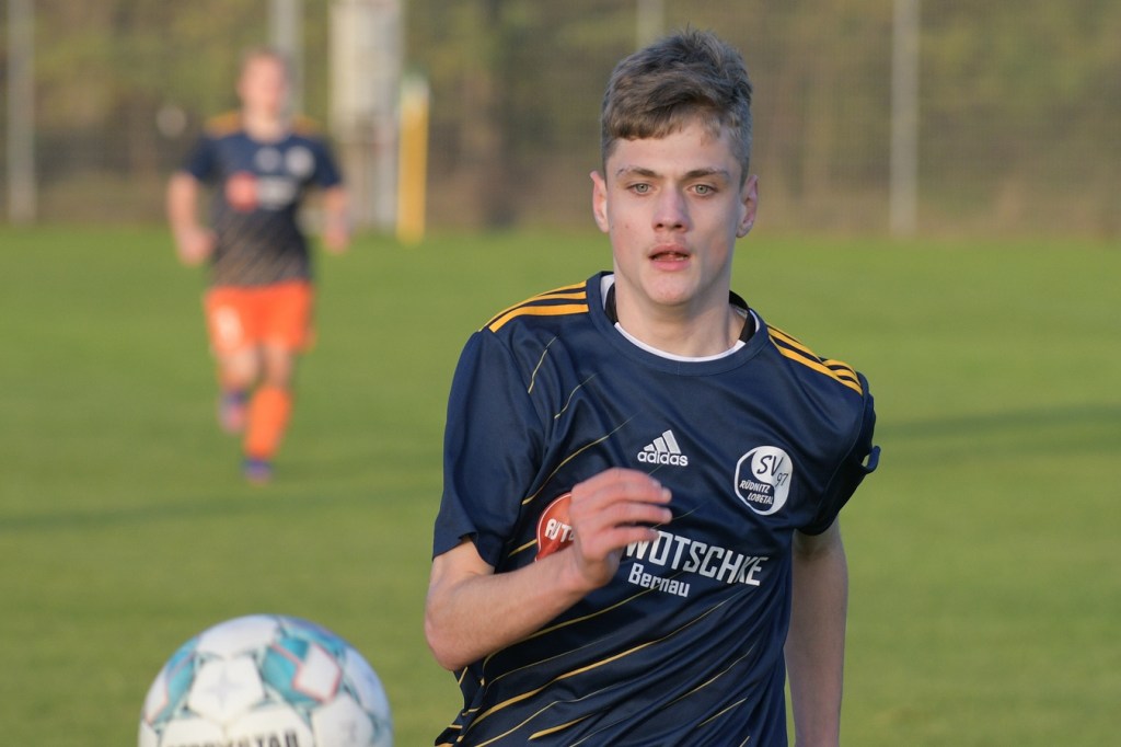 „Vier Dörfer, ein Spiel“, so hätte der Slogan auf dem Ankündigungsplakat zum Ortsderby lauten können. Denn der SV Rüdnitz/Lobetal empfing die Spielgemeinschaft Biesenthal/Marienwerder zum Verfolgerduell in der Kreisliga Ost, in der es in der oberen Tabellenhälfte auch nach dem Spieltag immer noch recht enge zu geht. 150 Zuschauer hatten den Weg ins Stadion an der einsamen Kiefer gefunden und konnten schon auf ein interessantes und vor allem intensives Match hoffen. Daraus wurde aber erst einmal nichts. Denn gerade im ersten Durchgang agierte vor allem die Heimtruppe weit unter den eigenen Erwartungen. Fünfundvierzig Minuten plus Nachspielzeit fand Rüdnitz/Lobetal eigentlich nicht statt. Dazu passte vielleicht auch die Kopfverletzung von Oliver Wetzel nach nicht einmal einhundertzwanzig Sekunden, der dann auch auswechselt werden musste. Eine einzige gefährliche Aktion, Benjamin Bauer hatte Daniel Kröll per Anspiel in Schussposition gebracht, der dann den Pfosten traf, schaffte es auf den Notizzettel. Die SpG mutierte aber auch nicht zum Spielantreiber, sodass die Begegnung kaum sehenswertes zu bieten hatte und sich extrem schleppte. Zwar hatte Rüdnitz/Lobetal die Kontrolle gebucht und auch im Ballbesitz mehr zu bieten, dies reichte aber wahrlich nicht aus, um irgendwie ins zielstrebige Spiel zu finden. Ein Standard und ausgerechnet die erste sich bietende Gästemöglichkeit fand den Weg ins Tor. Ein Freistoß aus dem linken Halbfeld ließ die Heimabwehr erstarren und jeglichen Zugriff vermissen. Schlussendlich war Nick Volkmer zur Stelle, der die Kugel aus Nahdistanz über die Linie drückte und auch SV-Keeper Nick Sebastian Maahs schlecht aussehen ließ (14.). Berichtstechnisch war die Halbzeit damit eigentlich beendet. Zwar kam die Michelson-Truppe noch zu einigen Halbchancen, dabei aber mit wenig Zug zum Tor. Doch den recht statischen und auch glücklosen Nimbus konnte man einfach nicht abschütteln. Dennis Ulbrich, Daniel Kröll und Tobias Bauer waren die Probanden, die in den eigenen Versuchen letztendlich stecken blieben. Auch der indirekte Freistoß am linken Fünferrand, der aus einem Rückpass in die Hände des Keppers resultierte, landete in der Tor-Mauer der Spielgemeinschaft (37.). Die Gäste machten aber auch nicht mehr als nötig, dies aber ganz ordentlich. Denn die Defensiv-Arbeit, das vorrangig selbst auferlegte Mittel, wurde mit aller Konsequenz durchgezogen.