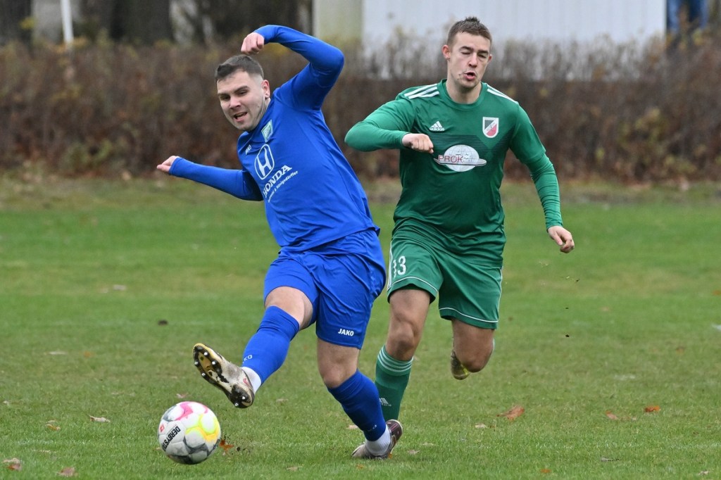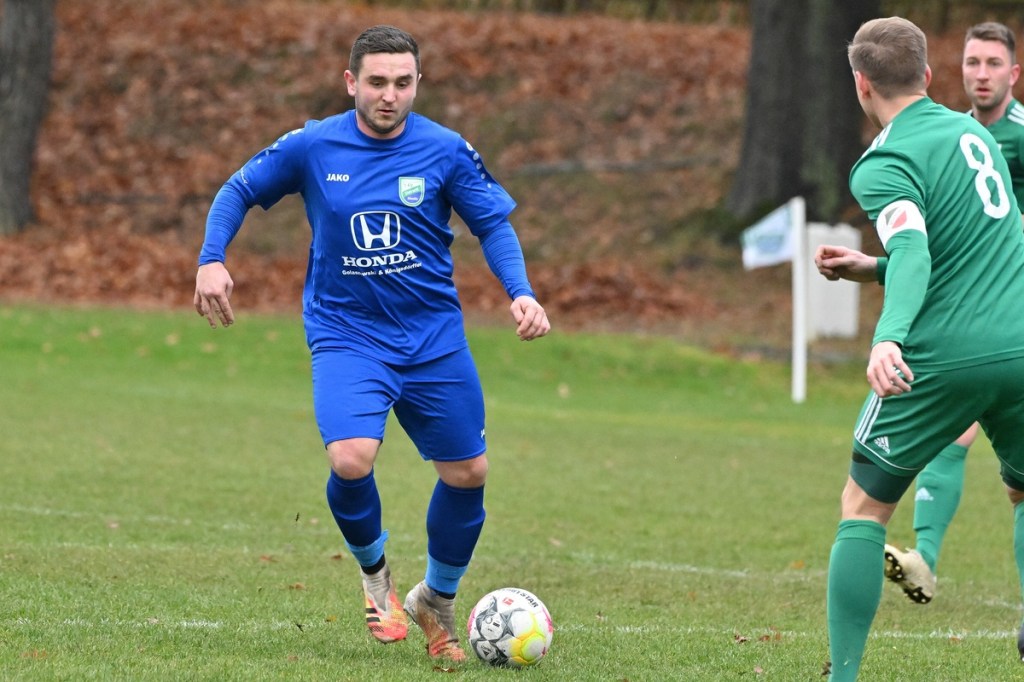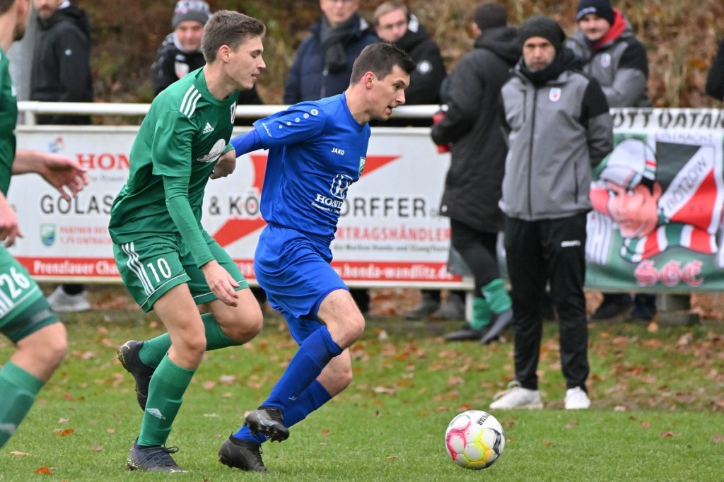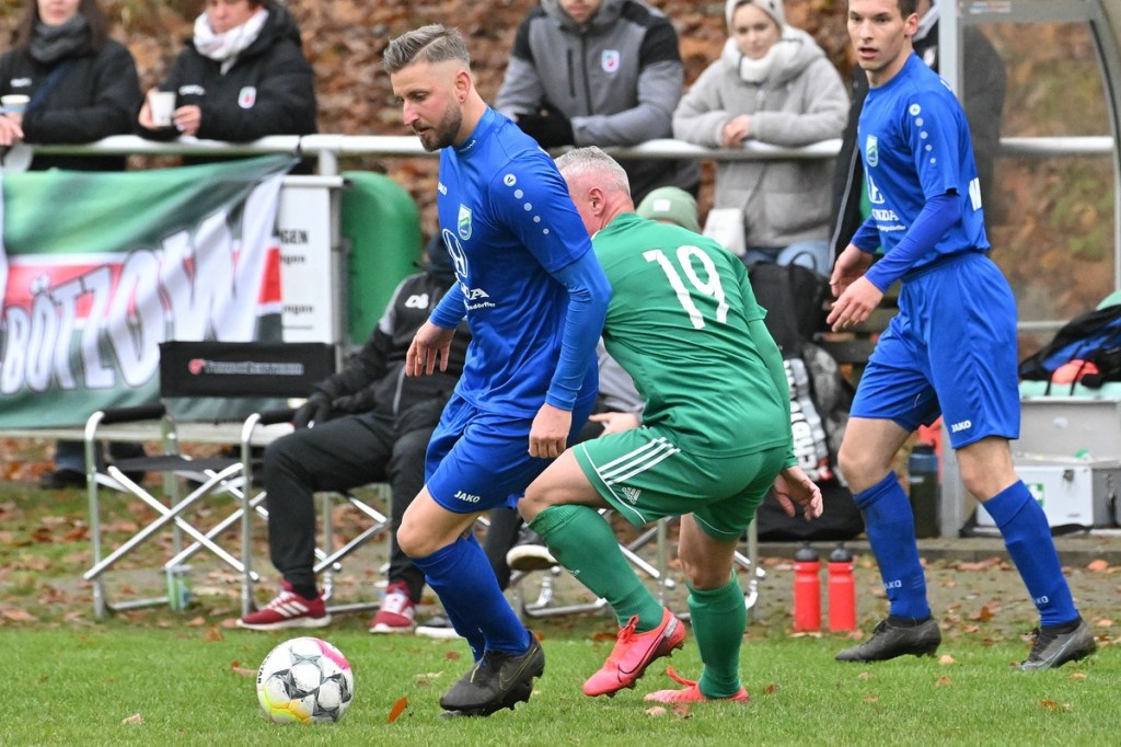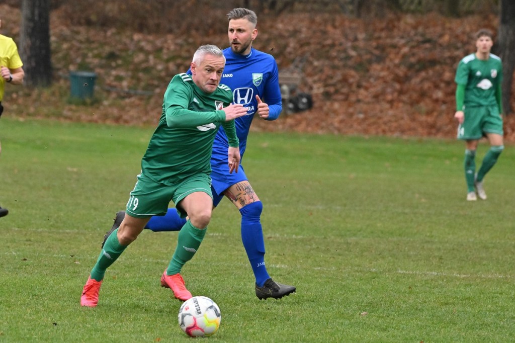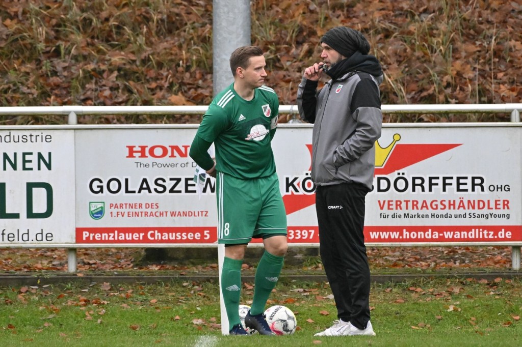 Die Begegnung begann bei tristem Herbstwetter den tabellarischen Gegebenheiten der Kontrahenten angepasst und auf mittlerer bis unterer Niveauschiene. „Weder Fisch noch Fleisch“, so hatte es Wandlitz Coach Matthias Händler ebenfalls gesehen, denn der torlose erste Durchgang konnte nur wenig erwärmen und auch selten Spannung erzeugen. „4-3-3“ war nach zwei Minuten aus dem Mund von Gäste-Übungsleiter Marco Meißner lautstark zu hören, was scheinbar an seine Jungs adressiert war und wohl die taktische Marschroute der Hausherren bedeutete. Wandlitz begann aus gut gestaffelter Abwehr die Partie offensiv mit spielerischen Akzenten in die Gänge zu bringen, was auch durchaus in Ansätzen gelang. Bötzow hingegen legte das Hauptaugenmerk in die Defensive, um dann förmlich mit langen Bällen zu explodieren und den pfeilschnellen Niklas Schulz auf der linken Seite mit Bällen zu füttern. Mit dem ersten Abschluss brauchte es bis zur fünften Minute, den Wandlitz Routinier Jan Großer aus der zweiten Reihe absetzte, nachdem ihm ein abgewehrter Eckball vor die Füße gesprungen war. Im Endeffekt hatte er etwas Pech, dass das gut angesetzte Geschoss in der vielbeinigen Gästeabwehr hängen blieb. Die Partie war zäh und nicht für Erinnerungen bestimmt, obwohl man schon wesentlich schlechtere Spiele in dieser Liga gesehen hatte. Es dauerte auch ein wenig bis zur nächsten Möglichkeit. Diese hätte die Bötzower Truppe, welche über die linke Seite kam und im Wandlitzer Strafraum ein Gestochere organisierte, weil kein richtiger Schuss zustande kam und abwehrtechnisch ebenfalls die klare Klärung fehlte. Nutznießer wurde schlussendlich Armando Görög per Fernschuss aus gut achtzehn Metern, der sein Ziel nur knapp verpasste (13.). In der Folgezeit bekamen die Barnimer immer mehr Oberwasser und schafften die eine oder andere Situation, in der man recht sehenswert vor die Gäste-Kiste kam. Pascal Böß zeichnete sich dabei als hervorzuhebender Schütze aus, dem aber auch irgendwie sein Schussglück abhandengekommen war (17., 19., 25.). Aber auch sein Kollege Marcel Petrahn zeigte Präsenz im Sechszehner der Bötzwer. Aber auch bei ihm passte noch nicht ganz so viel zusammen (18.). Ein gravierender Fehler im Spielaufbau der Hausherren, Adrian Fischer agierte recht schlampig, brachte Niklas Schulz auf den Plan. Der war durchgestartet und vielversprechend unterwegs. Schlussendlich fehlte beim Abschluss die Genauigkeit, als der Ball rechts neben dem Tor ins Aus ging (20.). Die Partie schleppte sich weiterhin auf magerem Niveau. Beide Teams waren „stets bemüht“ und wenn dann mal überhaupt etwas ging, dann fehlte Fortune und auch etwas aus dem qualitativen Regal. Als dann Pascal Böß, der sich schon einige Minuten quälte, in der 42. Minuten verletzungsbedingt passen musste, tat sich schon die Frage auf, wer den Aktivposten der Hausherren ersetzen sollte. Denn in der Schlussphase hatte Bötzow mehr Engagement in die Partie geworfen und zumindest eine Gleichwertigkeit erreicht. Trotzdem kratzte Wandlitz noch zweimal an der Halbzeitführung. Marcel Petrahn hatte zum Ersten einen Freistoß aus achtundzwanzig Metern an die Querlatte gesetzt (44.) und scheiterte zwei Minuten später aus Nahdistanz an Gäste-Torsteher Denis Brabetz.