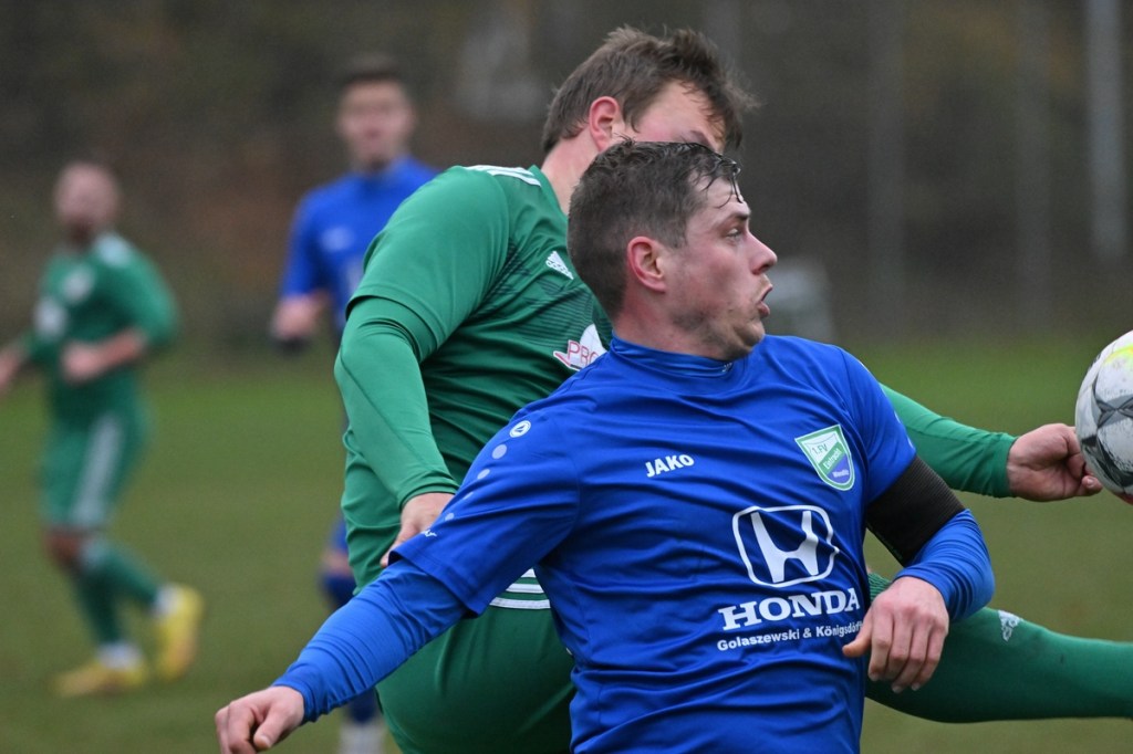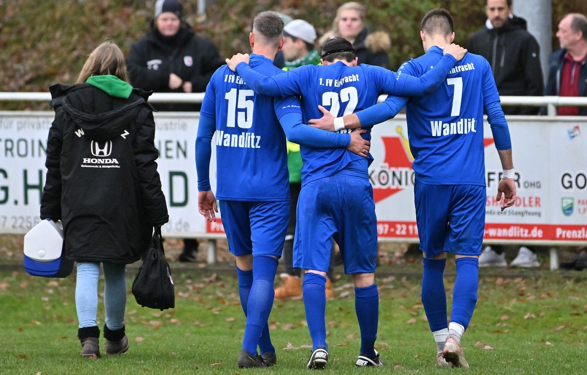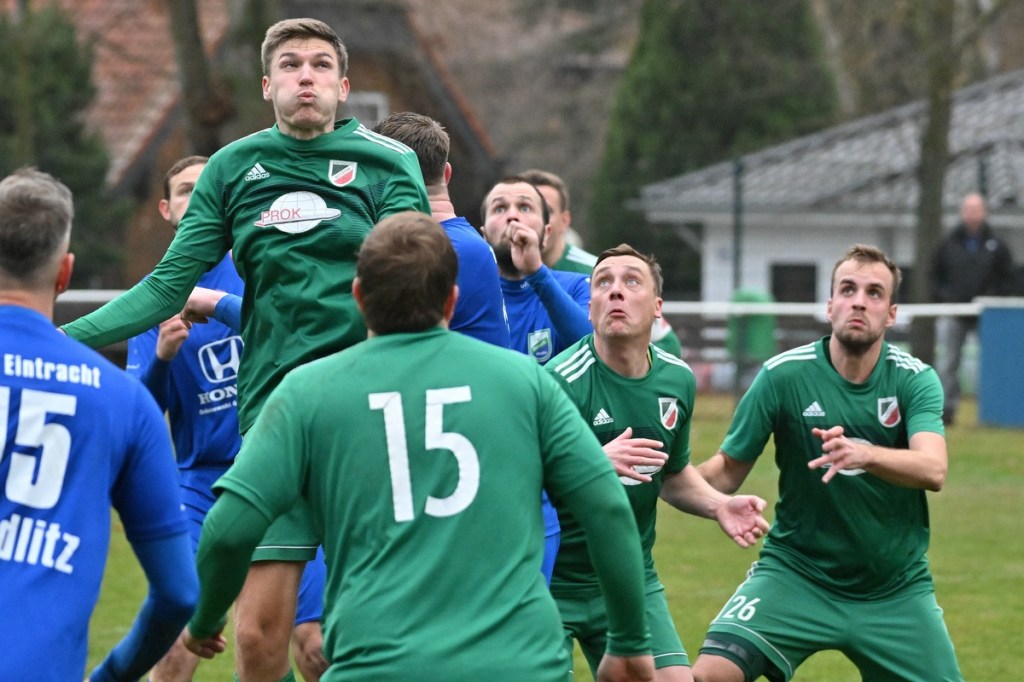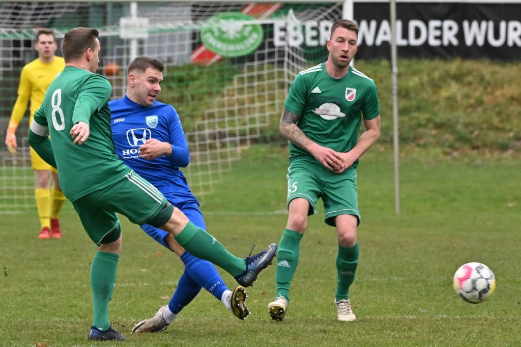 Paul Roller war für Böß gekommen und hatte damit die Bürde übernommen, aus der „Not gegen Elend-Partie“ eine ansprechendere Begegnung zu machen. Denn so hatten viele das vor der Halbzeit Gesehene bezeichnet und sich nur durch Heißgetränke erwärmen können. In einem war man sich aber absolut einig, nur ein Tor würde dem Spiel guttun. Und den Gefallen tat Youngster Felix Arndt seiner Wandlitzer Eintracht, als er in die 49. Minute einnetzte und eine sehr spannende Rest-Halbzeit einleitete. Denn sein Treffer war ein Tor des Willens. Dennis Plaumann flankte von rechts, Roman Schmidt haute dann in seinen Schuss alles rein und blieb im Bötzwer Körpergefüge hängen. Schlussendlich war Arndt zur Stelle, der mit seinem Tor schon sehr mental befreiende Jubelzüge auslöste. Die Hoffnung durch ein Tor der Partie mehr Schmackes zu verleihen, ging nun vollends in Erfüllung. Zwar stieg die Qualität nicht wirklich, aber Leidenschaft und Wille produzierten immense Spannung. Auch in den Zweikämpfen wurde es zusehends intensiver, bei denen schon das ein oder andere Mal mit dem Wort rustikal hantiert werden konnte. Ganze zehn Minuten nach dem 1:0 war wieder einmal Niklas Schulz auf der linken Seite unterwegs. Sein Marsch vorbei an zwei Wandlitzer Abwehrspielern endete mit einem unnötigen Foul an ihn, als er den Ball schon gespielt hatte und unsanft an Torauslinie von den Beinen geholt wurde. Schiedsrichter Krysztof Pawlisiak zögerte keine Sekunde und zeigte auf den Strafstoßpunkt. Armando Görög verlud seinen Gegenüber, Torsteher Florian Schweitzer und markierte den nicht gänzlich unverdienten Ausgleich. Die Folge präsentierte viel Hektik im spielerischen Auftritt beider Teams und auch viele Nicklichkeiten, die immer wieder zu Unterbrechungen führten. Augenscheinlich war aber auch, dass sich kein Aktiver mit dem Remis zufriedengeben wollte. Wandlitz bekam nun mehr Abwehrtätigkeit aufgebügelt und fing ebenso an, per Konter sein Heil im Angriff zu suchen. So war es Marcel Petrahn, der nach einem gescheiterten Schuss von Roman Schmidt mit dem Abpraller am kurzen Pfosten scheitere (64.) und in der 70. Minuten zur Stelle war und das 2:1 markierte. Wieder ist es eine abgewehrte Kugel, welche er dann, mit allen Freiheiten behaftet, unhaltbar im Gästekasten einschlagen ließ. Für Bötzow war aber keineswegs Schluss. Doch dem Bemühen fehlte das Glück. Wie in der 92. Minute, als Nico Schmidt noch einmal schusstechnisch hinlangte, der Ball aber in der körperlichen Präsenz der Hausherren hängen blieb. Wandlitz hingegen war einfach griffiger und ließ in der regulären Spielzeit noch ein, zwei sehr gute Möglichkeiten liegen. Das befreiende 3:1 erzielte der nimmermüde Manuel Thomas in der 93. Spielminute. Roman Schmidt, in Kontermanier, schüttelte seine Gegenspieler ab und passte quer auf Thomas. Der Rest war dann nur noch Jubelarie.