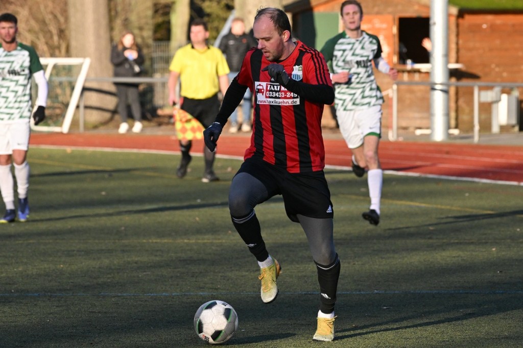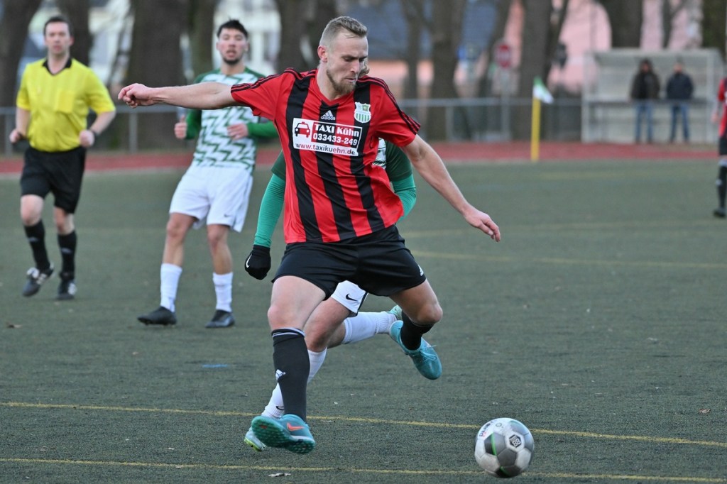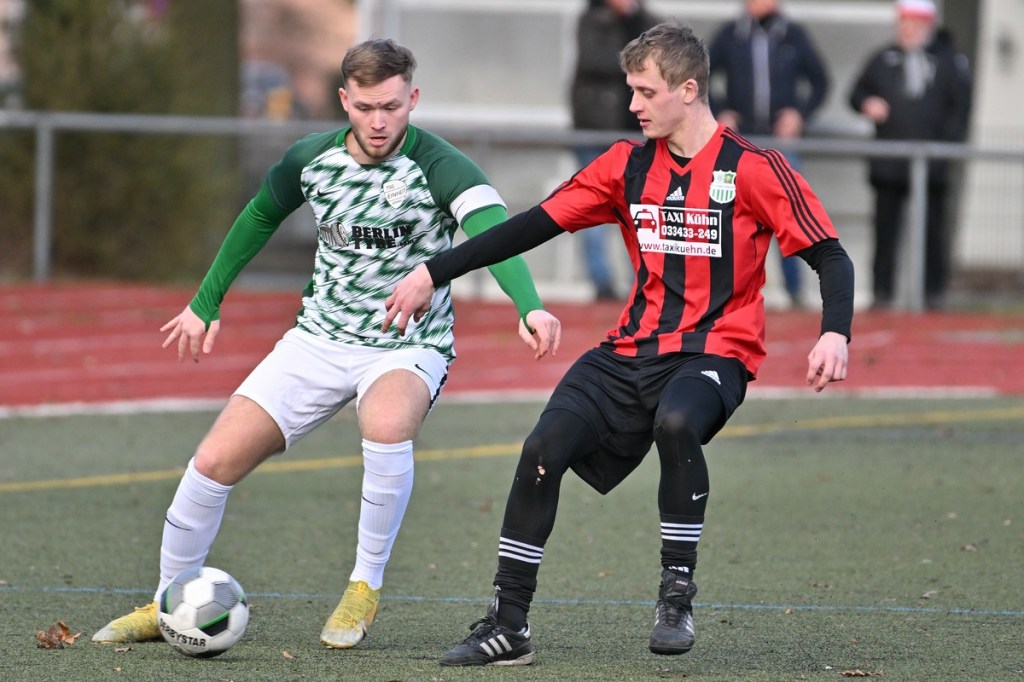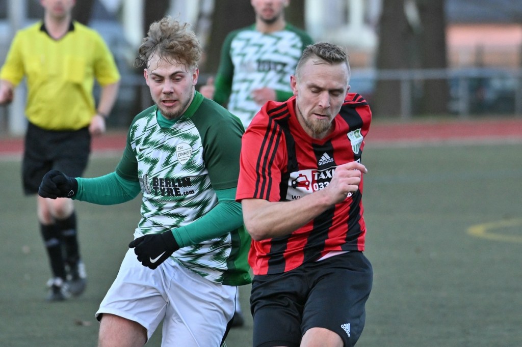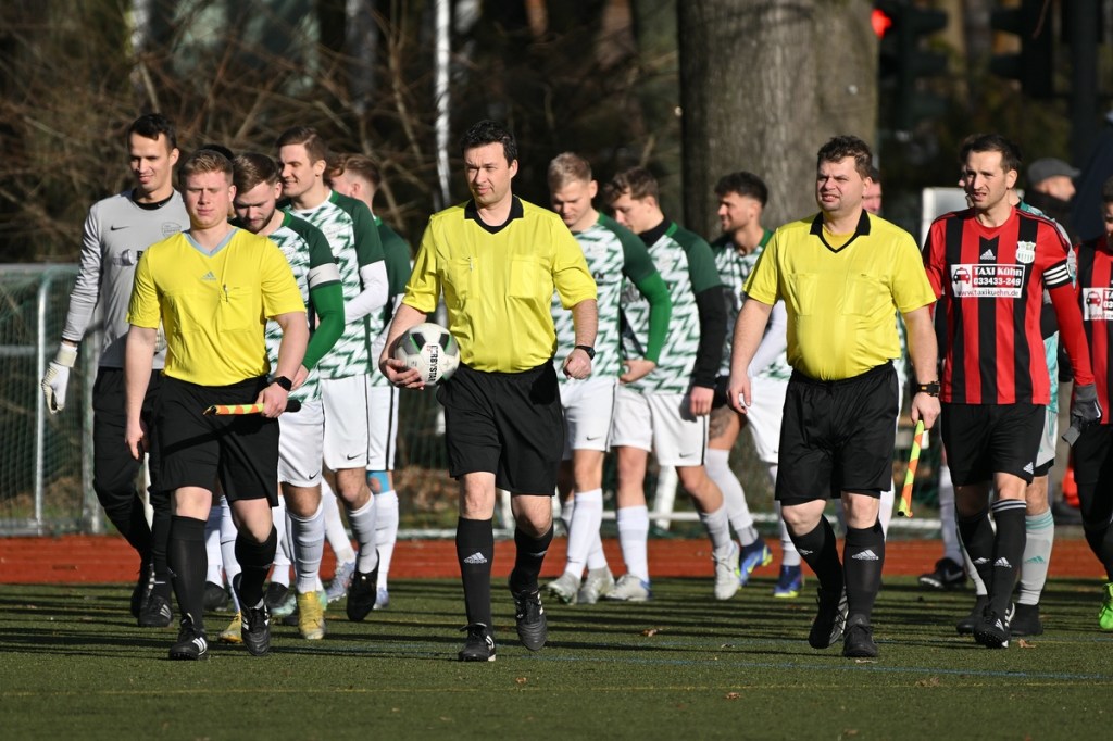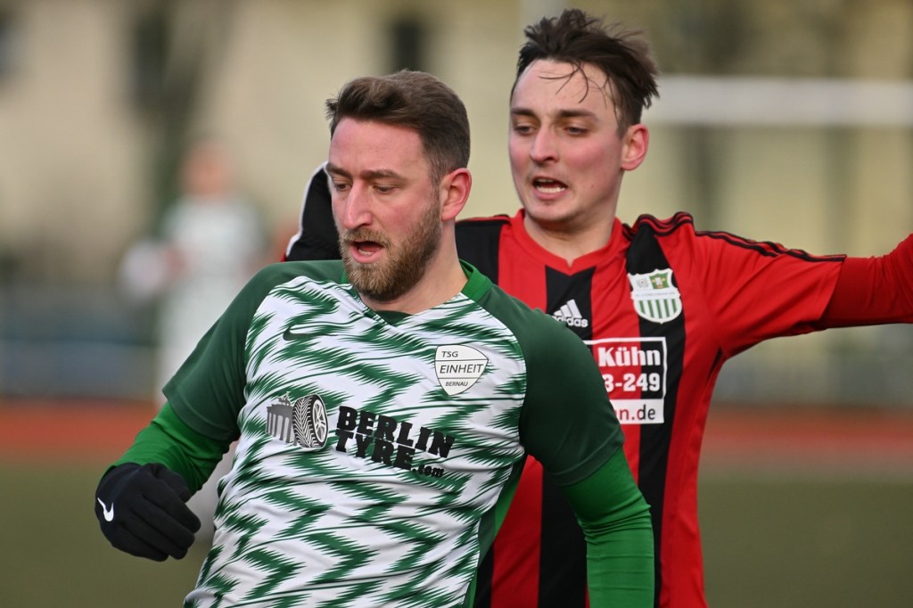Zum Wiederanpfiff änderte sich am positiven Intensitäts-Level rein gar nichts. Doch gerade die Gäste hatten nun den Weg in den Einheit-Strafraum gefunden. Steve Jarling wurde mehr gebraucht, als ihm lieb war. In der 48. Minute musste er nach dem 0:1 zum ersten Mal hinter sich greifen. Ein Gästeangriff über die linke Seite, den Barandowski mit einer flachen Eingabe in den Strafraum gefährlich machte, ließ die Einheit-Probanden nicht gut aussehen. Bernauer Statisten und One-Touch-Fußball der Gäste über drei, vier Stationen mit dem Torschützen Niklas Zulciak brachten die indessen nicht unverdiente Führung. Buckow/Waldsieversdorf hatte nicht genug und drängelte auf den zweiten Treffer. Den erzielte wiederum Zulciak, der eine mentale Auszeit der Heimabwehr ausnutzte und kompromisslos einnetzte. „Wo kam der denn her?“, war die Frage in der verblüfften letzten Reihe der Zuständigen, welche der Torschütze mit großer Aufmerksamkeit und dem 0:2 beantwortete (54.). Einheit hatte aber eine Antwort. Ein Befreiungsangriff mit folgendem Eckball breitete den Anschlusstreffer vor. Frederick Fiebig stieg am höchsten und nagelte per Kopfball die Kugel ins linke obere Eck (56.). Trotzdem blieben die Gäste weiter am Drücker. Ringo Kretzschmar markierte sehenswert den dritten Gästetreffer, als er sich im Laufduell durchsetzte und das Spielgerät knallhart im Kasten unterbrachte (67.). So ein wenig verflachte die Partie. Den Schlusspunkt setzte der Bernauer Gastspieler, der die gute Vorarbeit von Mario Farruku, der Vogt an der rechten Außenlinie umkurvte, zum 2:3 und daraus resultierenden Endstand verwertete (81.).