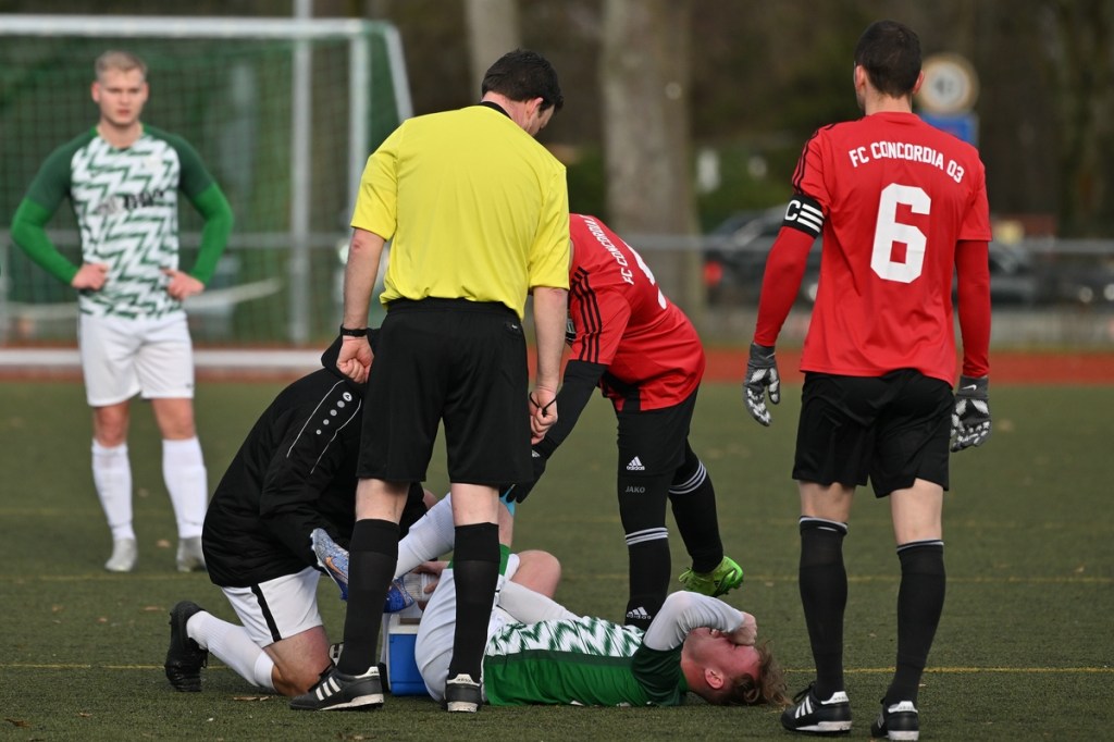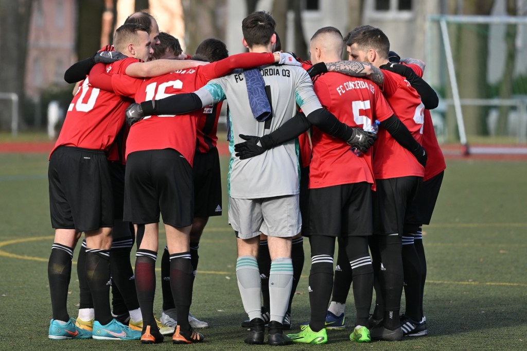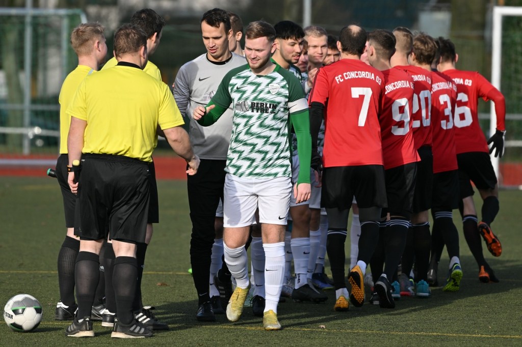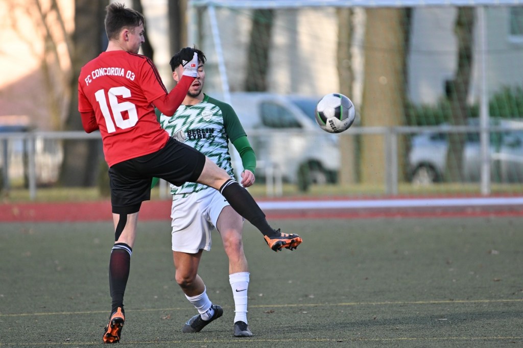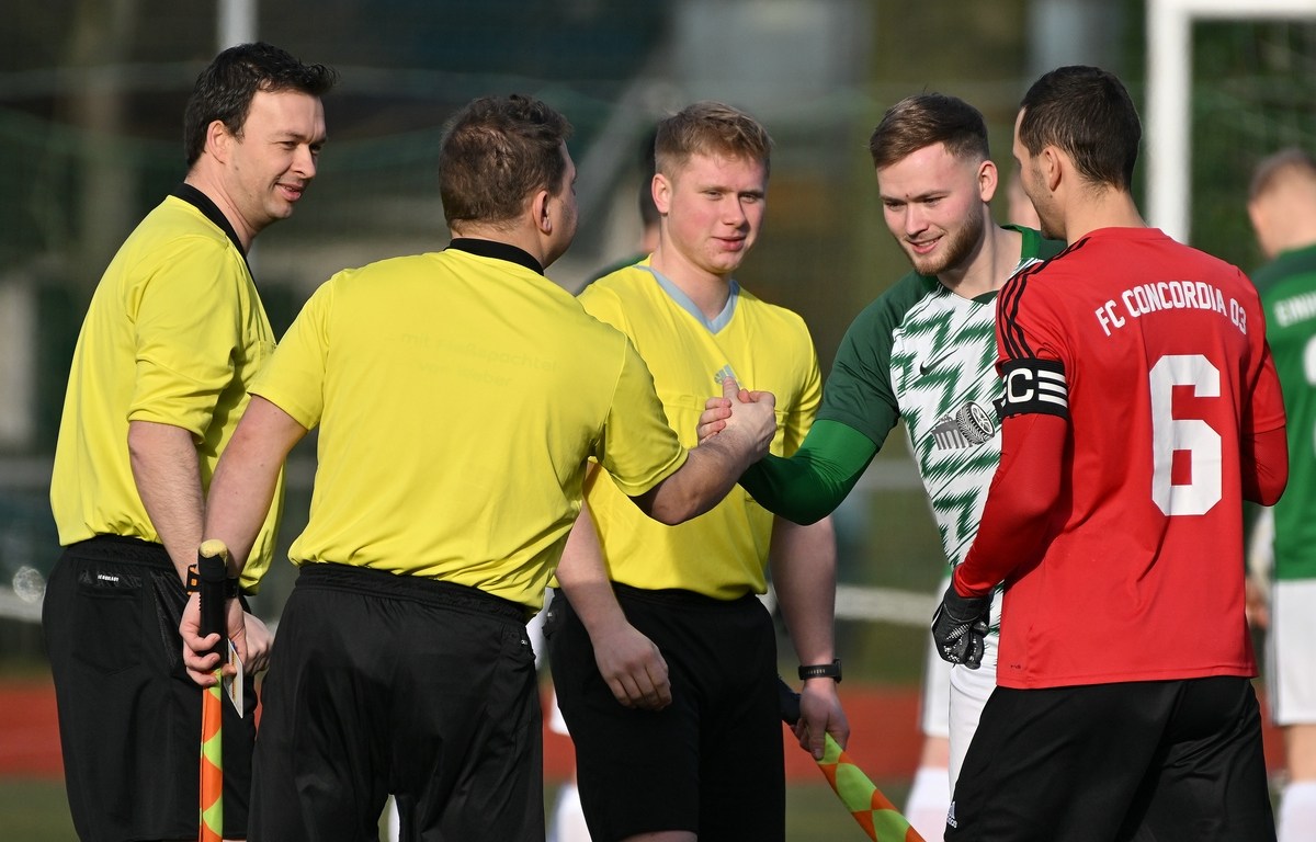 Wider erwartend begann die Partie sehr intensiv. Vor allem die Concorden machten mächtig Betrieb, gerade im Anlaufen und Pressing Richtung Aufbauversuche der Heimtruppe. Doch lahmte der ganze Aufwand am Ertrag, denn der blieb gänzlich aus. Einheit verteidigte sehr gut und probierte es in der Offensive mit langen Bällen, was ebenfalls nur in Ansätzen funktionierte. Trotzdem war die Begegnung nicht unansehnlich. Allein das „Gefighte“ im Mittelfeld hielt die Spannung am Laufen. Die erste nennenswerte Möglichkeit der Partie hatte Bernaus Lucas Steinert mit einem Freistoß, halb links vor dem Strafraum. Sein Schuss war gut platziert und rauschte knapp am linken Pfosten vorbei (23.). In der 31. Minute machte dann Bernau zum zweiten Mal in puncto Torgefährlichkeit von sich reden. Mario Farruku bekam an der Strafgrenze die Kugel aufgelegt, doch sein Abschluss war zu ungenau und landete in den Armen von Gästekeeper Dominik Vogt. Während sich die Doppeldörfler weiterhin vergebens mühten, etwas Positives im gegnerischen Strafraum zu erzeugen, war Einheit im Gegensatz gefährlicher unterwegs. Ein langer Abschlag kam bis in den Gästestrafraum durch, den Frederick Fiebig erlaufen auch konnte. Schlussendlich setzte er ein Geschoss ab, doch der spitze Winkel und der aufmerksame Vogt ließen die gute Möglichkeit verpuffen (35.). Für die Gäste dauerte es ganze zweiundvierzig Minuten, ehe man Zählbares auf die Platte bekam. Ein Freistoß von der linken Seite wurde abgewehrt. Christopher Fehrmann wurde zum Nutznießer, fackelte nicht lange und zog kurz vor Strafraumgrenze ab. „Zu unplatziert“, war das Resümee der Aktion, als der Ball in den Händen von Jarling landete (42.). Bartosz Barandowski beendete die torlose Halbzeit, als er ebenfalls glücklos abzog und wiederum der Einheit-Torsteher seine Hände abwehrend im Spiel hatte (42.).