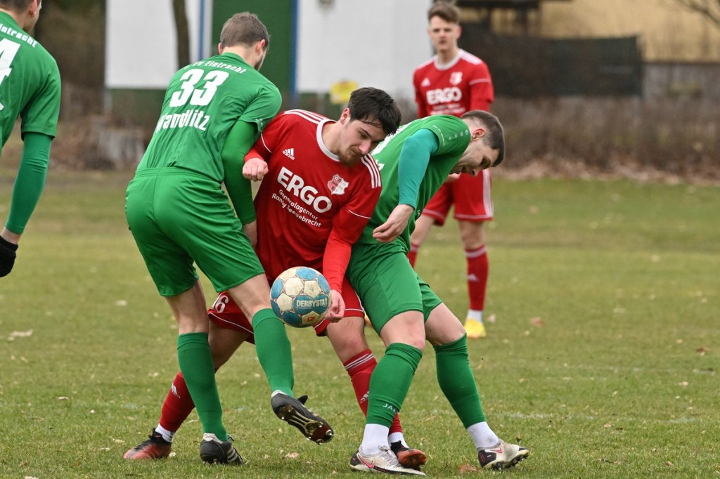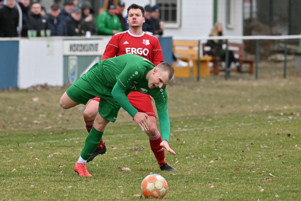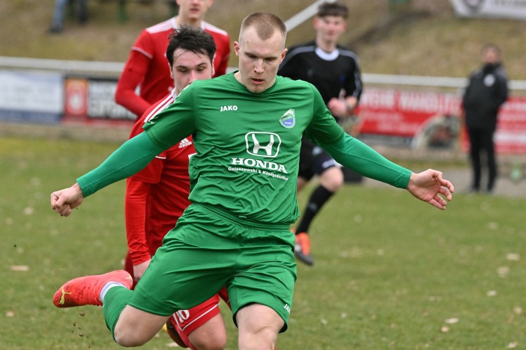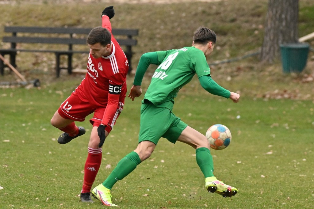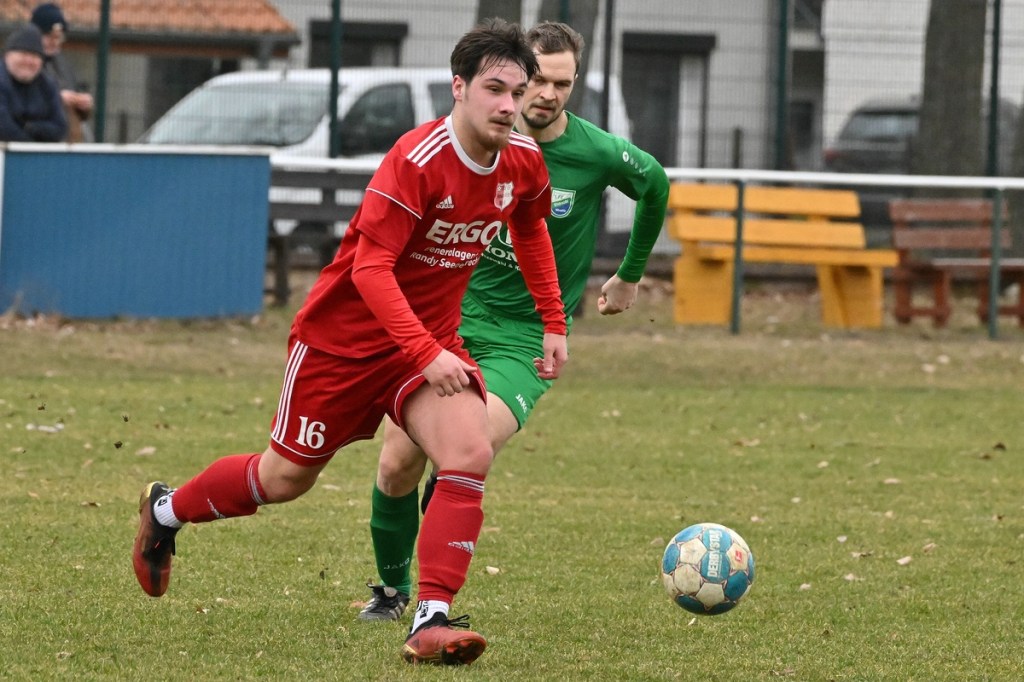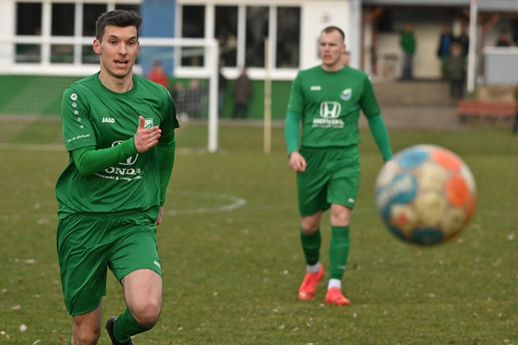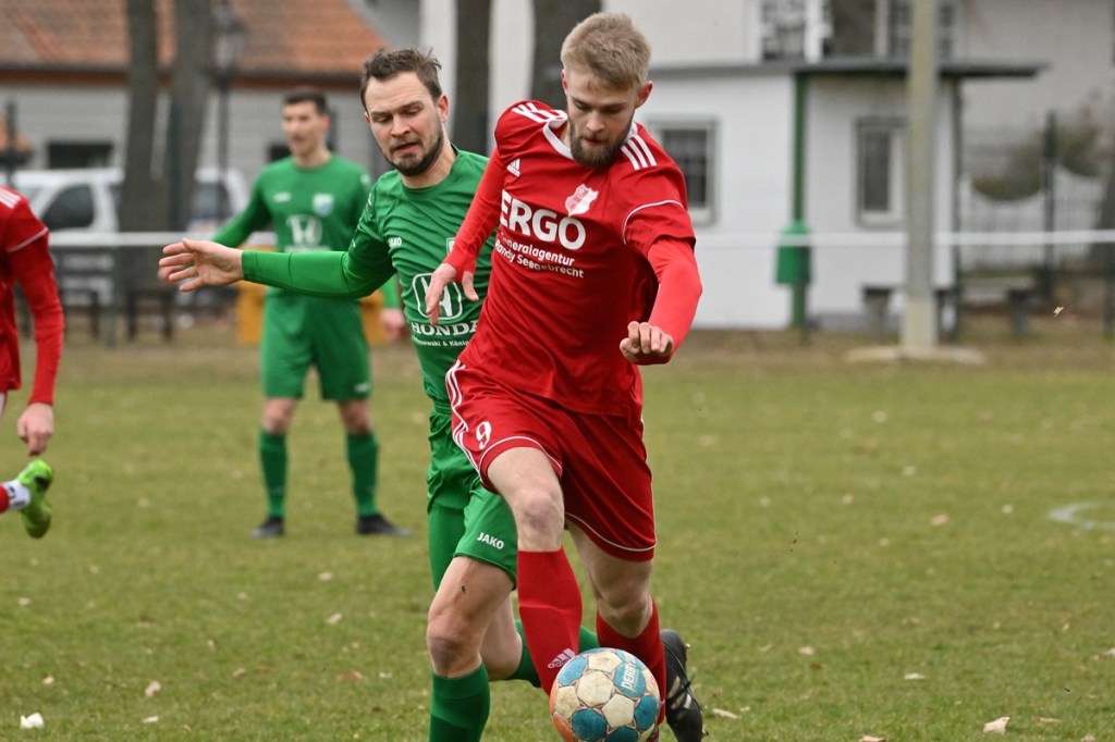 Trotzdem begann die Partie widererwartend mit spielerischen Nuancen, weil auch beide Parteien den Vorwärtsgang suchten und mit frühem Pressing Richtung „Schneid abkaufen“ unterwegs waren. Eintracht übernahm zusehends die Regie. „Im letzten Drittel sind wir einfach zu harmlos“, kritisierte Händler im Nachgespräch die inkonsequenten Offensivbemühungen seiner Jungs und traf damit genau in die Wandlitzer Wunde. Denn in der eigenen Chancen-Kreation und auch Verwertung blieb man unter den Erwartungen und durchaus vorhandenen Möglichkeiten. So war es Paul Roller mit einem Versuch in der siebten Minute, welcher weit über den Kasten ging (6.). Und auch sein Kollege Roman Schmidt machte es keine sechzig Sekunden später nicht besser, als er aussichtsreich die Kugel knapp neben den Kasten setzte. Britz, im Gegensatz, kam mit langen Bällen zu sporadischen Abschlüssen. Nennenswert waren dabei die beiden Möglichkeiten von Lukas Schneider, denen man schon getrost den Prozentsatz, der fast Hundertprozentigen, hätte verleihen können (11., 20.). Spielerisch flaute das Dargebotene immer mehr ab. Leidenschaft und Rasse schoben die Partie immer mehr in den Kampfmodus. Dabei waren die Kopfball-Duelle der beiden Routiniers Paul Roller und Manuel Müller schon eine Augenweide. Die Zweikämpfe wurden immer knackiger, was in der 24. Minute zu einer „hätte, wenn und aber“ Situation führte. Paul Roller wurde im Vorwärtsgang regelwidrig von den Beinen geholt, der fällige Pfiff blieb aus. Britz Nr. 7, David Whajah, war dann mit dem erkämpften Ball unterwegs. In der Gemeinschaftsaktion, Dennis Plaumann und Roman Schmidt, wurde Whajah recht rustikal abgeräumt, was ihn darauf regierend veranlasste Plaumann umzustoßen. Glatt Rot war die logische Konsequenz (24.). Ein Bärendienst, den auch der Britz-Übungsleiter so ein wenig zum Knackpunkt der Partie ausmachte. „Wir mussten umstellen, was uns nun so ein wenig am frühen Anlaufen hinderte“, erklärte Jürgens nach Spielende. Das Spiel zog nochmal an. Viele Nicklichkeiten, das ein oder andere unnötige Foulspiel und auch die vielen Fehler im Zusammenspiel machten die ganze Spielflüssigkeit noch zäher. Ein Schuss von Eintracht-Youngster Felix Arndt aus der zweiten Reihe, welcher lange unterwegs und vor allem haltbar war, bereitete dem Gäste-Keeper Kevin Wilkesmann doch einige Probleme. Bei Herunterfischen rutschte ihm das Spielgerät aus der Hand und prallte von linken Pfosten ins Aus (31.). In der 39. Minute war es dann so weit. Roman Schmidt hatte das Tor des Tages erzielt. Nachdem sich zwei seiner Kollegen mit Abschlüssen vergeblich versucht hatten und Fortuna nicht in der Lage war, klärend einzuwirken, war es ihm vorbehalten, mit dem Willen des Erzwingens unhaltbar per Gewaltschuss aus zehn Metern einzunetzen.