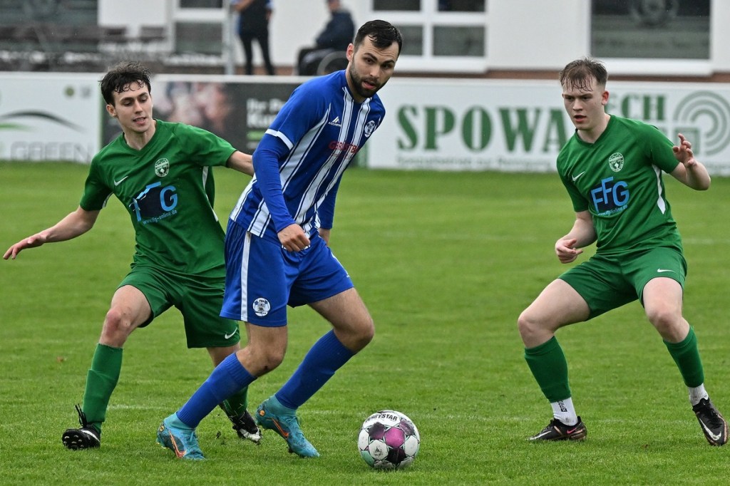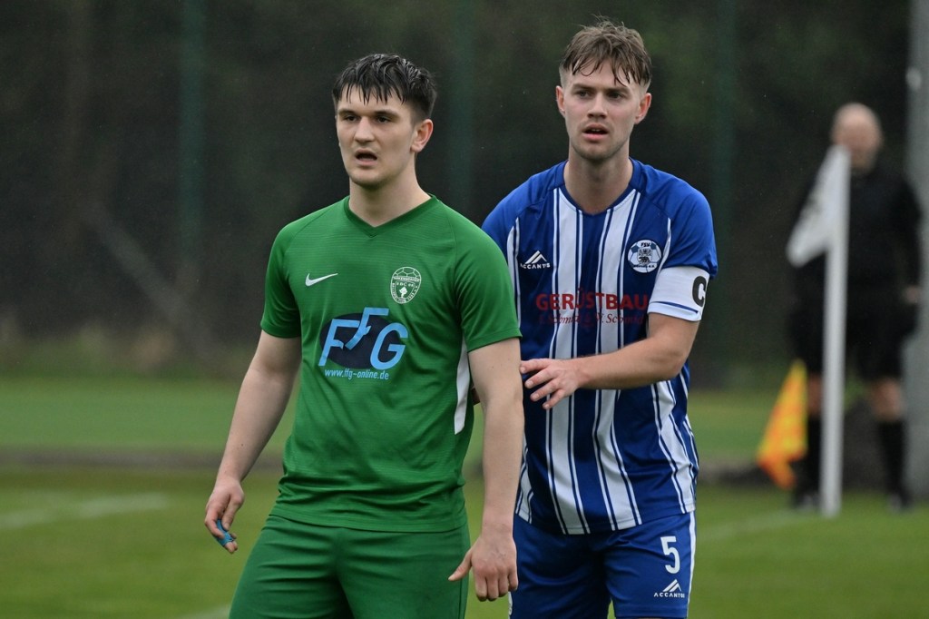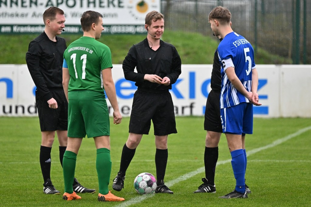 Dabei begann die Partie im Dauerregen auf tiefen Boden alles andere als vielversprechend für die Heimtruppe. Denn der BBC wirkte, auch ohne seinen Top-Torschützen Ron Hass, viel griffiger und war im Vorwärtsgang wesentlich gradliniger unterwegs. Ein Konter der Gäste über zwei Stationen, den Eric Stephan halbrechts am Strafraum per Flachschuss abschloss und dann klar neben den Kasten setzte, offenbarte schon ein paar Mängel in der Bernauer Defensivarbeit (2.). Ein Freistoß aus dem linken Halbfeld erreichte am langen Pfosten Gordon Strähnz, der gut postiert per Kopfball die nächste BBC-Möglichkeit hatte, aber ebenfalls das Tor verfehlte (12.). Die Konter der Gäste waren schon gefährlich, dies aber nur in der Entstehung und sehr zum Glück der Hausherren nicht im Resultat. Für das erste Bernauer Rauchzeichen benötigte das agierende Personal siebzehn Minuten. Ein schneller Angriff, den Philipp Pönisch mit strammem Schuss abschloss und dabei Gäste-Torsteher Max Kammann gleich mit in die Prüfung nahm, änderte so ein wenig die Kräfteverhältnisse (17.). Denn in der Folge nahm auch der FSV-Auftritt mehr und mehr Struktur an. In der 25. Minute lag die Heim-Führung in der Luft. Tassilo Mahnke machte sich auf der rechten Seite auf den Weg, um per Flanke seinen Kollegen Pönisch zu bedienen. Pönisch zog direkt ab und fand wiederum in Kammann, mit toller Parade, seinen Meister. Die nächste FSV-Chance war nicht minder von Gefährlichkeit geprägt. Miran Memishi zog einfach und ohne Ansatz aus der zweiten Reihe ab und bereitete Kammann leichte Unannehmlichkeiten, als der Ball an den linken Pfosten prallte und vom Keeper nicht so richtig kontrolliert werden konnte (27.). Obwohl die Partie vornehmlich umkämpft im Mittelfeld stattfand, kamen auch die Gäste sporadisch zu Kontermöglichkeiten. Matti-Maurice Herbst war derjenige, der zweimal auf die Reise geschickt wurde und damit immer wieder Feuerherde in den Abwehrreihen der Heimtruppe entflammte. In der ersten Situation überlupfte er den herauseilenden FSV-Schlussmann Hugo Paschen und kam nicht mehr ordentlich zum Abschluss. Nur wenige Sekunden später patzte Paschen wiederholt, als er sich beim Herauslaufen düpieren ließ und am Ball vorbeirutschte. Nutznießer dieses Fauxpas war BBC-Angreifer Dietrich Keller, der dann zu lange zögerte und somit Philipp Marcel Schmid die Möglichkeit gab, in letzter Not dazwischen zu grätschen (29.). Die Partie lebte nicht nur von der Spannung, sondern auch von der Qualität, die man getrost in die Kategorie „Gutes Landesligaspiel“ einordnen konnte. So schwappten die Spielanteile immer wieder hin und her. Christopher Prußok war der nächste Birkenwerderaner, der die Möglichkeit hatte, Zählbares auf die Anzeigetafel zu bringen. Schlussendlich war bei seinem Geschoss aus achtzehn Metern Huga Paschen im Wege, der glänzend reagierte (35.). Auch Pönisch war wieder mal dran. Er machte es auf der Gegenseite Prußok gleich, doch sein Schuss passierte knapp die Gehäuseoberkannte und wurde dadurch nur zum Gäste-Abstoß (37.).