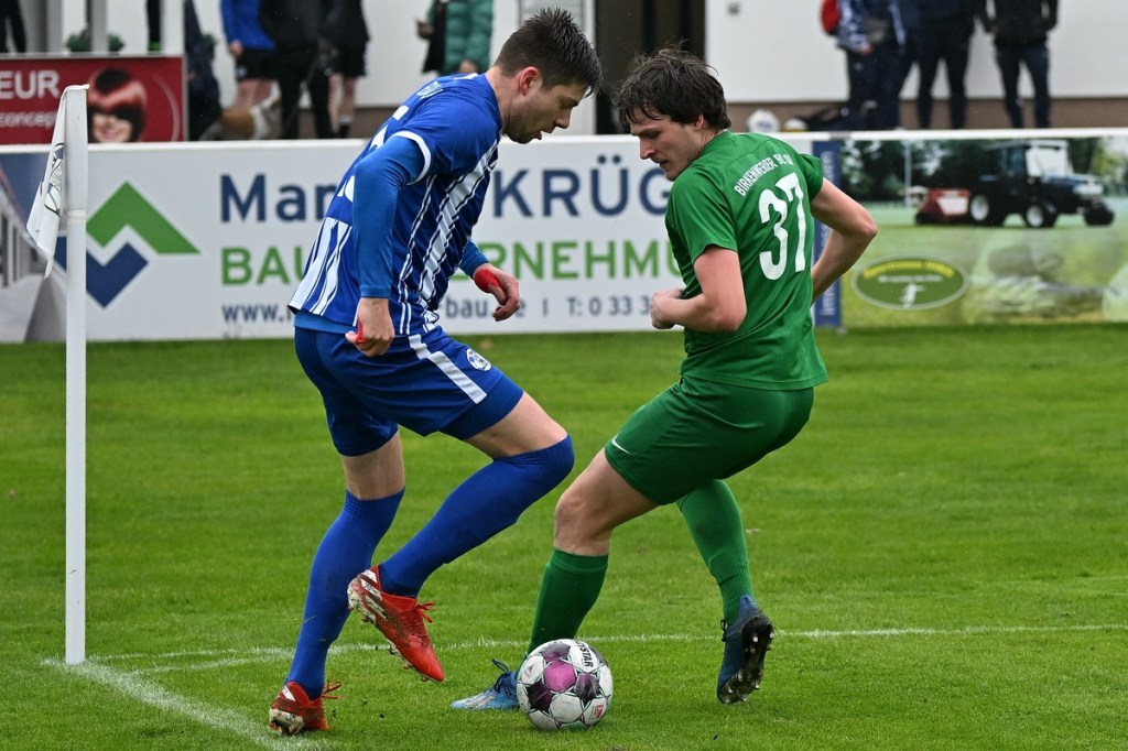 Der zweite Durchgang konnte nicht gänzlich an die Attraktivität von dem Pausenpfiff anknüpfen. Trotzdem blieb die Partie spannend und vor allem sehr umkämpft. Einen kurzen Atemstillstand erlebte die Bernauer Fraktion als Hugo Paschen sich in seiner Abwehraktion verschätze und der Gästekopfball in letzter Not durch Vincent Lipp von der Linie gekratzt werden konnte (54.). Vor den Toren regierte nun Flaute, die Miran Memishi viel umjubelt unterbrach. Sein Mitstreiter Jean-Pierre Dellerue hatte auf der rechten Seite einige Gästeabwehr-Strategen in seinen kämpferischen Bann gezogen und am Ende in den Rückraum gepasst. Memishi, als Adressat, zog ab und konnte sich glücklich schätzen, dass der von Kammann abgewehrte hohe Ball wie ein Stein herunterfiel und im Netz zappelte (63.). Bernau machte weiter Druck und wollte unbedingt nachlegen. Doch der Tore-Mangel, welcher so ein wenig auch ein Grund dafür ist, dass man immer noch in Abstiegsnöten ist, hatte weiter Bestand. Die Führung war in jeden Fall verdient, allein schon, weil die Gäste offensiv im zweiten Durchgang sehr spärlich unterwegs waren. Die Begegnung wurde immer mehr zum Kraftakt. Der Regen machte den Boden tief und ließ die Kräfte auch sichtbar schwinden. Ein langer Ball auf BBC-Akteur Moritz Reimann ließ im Endstadium die Gemüter noch einmal stark erhitzen. Der eingewechselte Paul Berger räumte Reimann sehr rustikal kurz vor der Strafraumgrenze ab und kassierte dafür nur den gelben Karton. Die Gäste hatte korrekterweise eine Notbremse gesehen und dies auch mit der Forderung nach einem Platzverweis energisch untermauert. Schlussendlich blieb der Freistoßschuss in der Mauer hängen, den Dennis Dombert im zweiten Versuch zum 1:1 in die Maschen setzte (80.). Die Begegnung zog jetzt noch einmal an. Ein wenig machte sich auch Hektik breit, weil Schiedsrichter Wiese es nicht verstand mit der ein oder anderen, auch zwingenden persönlichen Strafe, klare Grenzen zu setzen. Den endgültigen Nackenschlag für die Gäste versetzte dann der eingewechselte Maximilian Hecker. Tassilo Mahnke eroberte den Ball im linken Mittelfeld, passte in den Lauf zu Paul Berger, der dann flach eingab und sich am Ende mit Hecker freuen konnte, den Siegtreffer vorbereitet zu haben (88.). Birkenwerder versuchte nun alles und warf sich voller Energie in die Waagschale und sechsminütige Nachspielzeit. Gejubelt hat am Ende der FSV Bernau und ließ den Betrachter konstatieren, dass man in dieser Verfassung und mit ein wenig mehr Schussglück den Klassenerhalt wohl schaffen sollte.