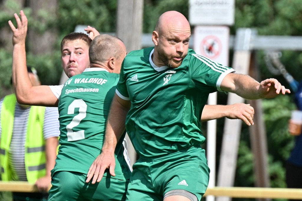 Der knappe Halbzeitstand hatte nach dem Wiederanpfiff nur ganze zehn Sekunden Bestand. Das kurze Anspiel vom Anstoßpunkt auf Spechthausens Sechser (k.A.) und dessen gute Schusstechnik mit der Landung des Balles im Friedrichswalder Kasten, ließ die eigenen Fans jubeln. Gästekepper Marcel Borges hatte zu weit vor seinem Kasten gestanden und schien schon etwas überrascht, als das Spielgerät in eigenen Netz zappelte. Die Waldhöfer hatten den Braten gerochen und legten nun mit dem Doppelschlag durch Robert Kreuzer den endgültigen Grundstein zum Weiterkommen im Kreispokal. Dem 4:1 ging ein klares Foulspiel voraus, als Daryl Vogler per Trikot-Zupfer am Abschluss gehindert wurde. Die Konfusion der Situation nutzte Kreuzer aus und nagelte den Ball unhaltbar aus dem Rückraum in die Maschen (49.). Beim folgenden fünften Treffer hatte Kreuzer großes Glück, dass sich Oliver Lange und der eigene Keeper über den Haufen rannten und der Ball an beiden vorbei seinen Weg ins Tor fand. Das Spiel war entschieden, obwohl die Gäste nicht aufgaben. Paul Bertram blieb weiterhin der auffälligste Akteur, doch sein etwas übertriebener Eigennutz verwehrte den Gästen noch den ein oder anderen Treffer. Dem nächsten Aufreger hätte zwingend einen Elfmeterpfiff folgen müssen. Maurice Haubrecht hatte im eigenen Strafraum Waldhofs Mairbek Timirbulatov klar von den Beinen geholt, doch eine Reaktion des Schiedsrichters blieb auch diesmal aus (64.). Die Folgezeit war geprägt von Behandlungspausen, sporadisch getretenen langen Bällen auf Robert Kreuzer, zwei Aluminiumtreffern der Hausherren und dem lupenreinen Hattrick von Kreuzer, der einen dieser Konter in der 82. Minute zur Vollendung und zum Endstand brachte. „Ich bin zufrieden, spielerisch haben wir das sehr gut gemacht. Für uns war klar, dass es gegen Friedrichswalde schwer werden könnte, am Ende haben wir aber verdient gewonnen. Nicht ganz zufrieden war ich mit der Schiedsrichterleistung und dass sich einige unserer Spieler anstecken lassen haben und in die etwas unsportliche Schiene gerutscht sind. Sicherlich spielen wir immer auf Kante, aber dieses Verhalten brauchen wir nicht“, so die Analyse von Waldhof-Trainer Andy Jahnke kurz nach dem Abpfiff.