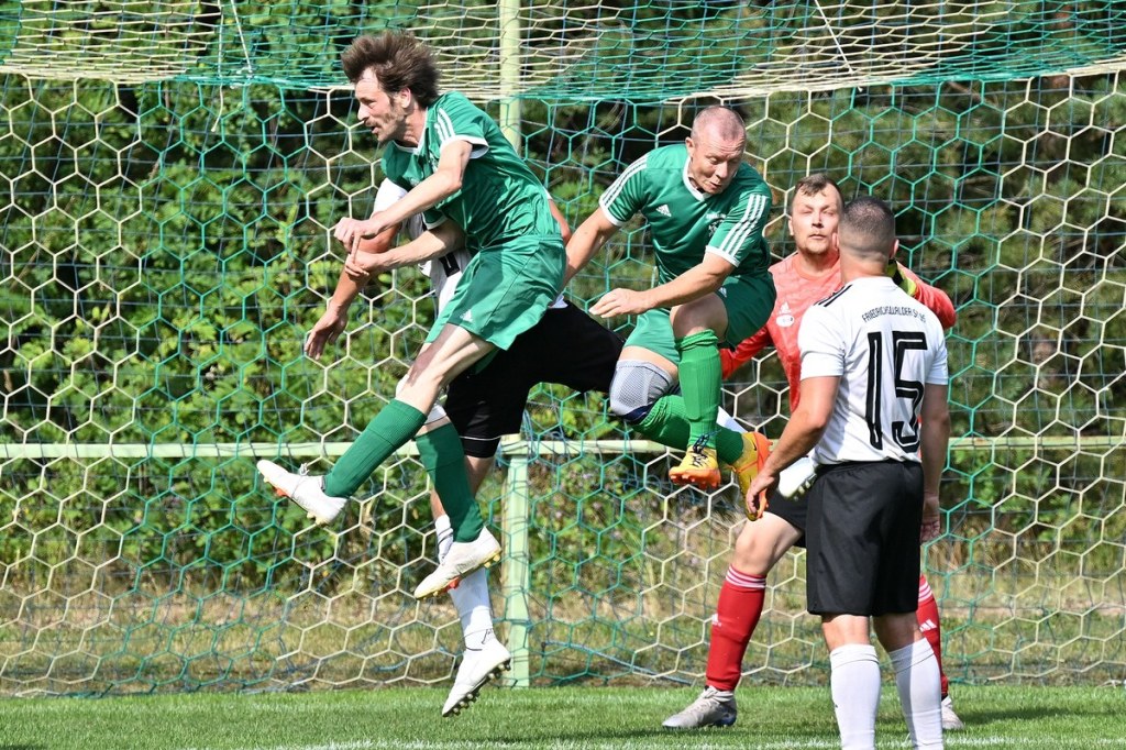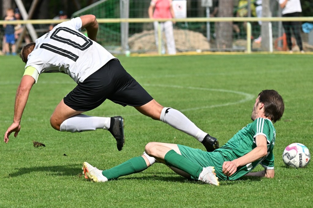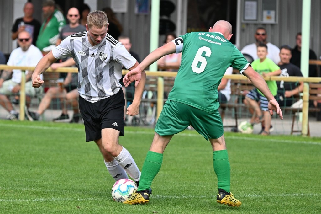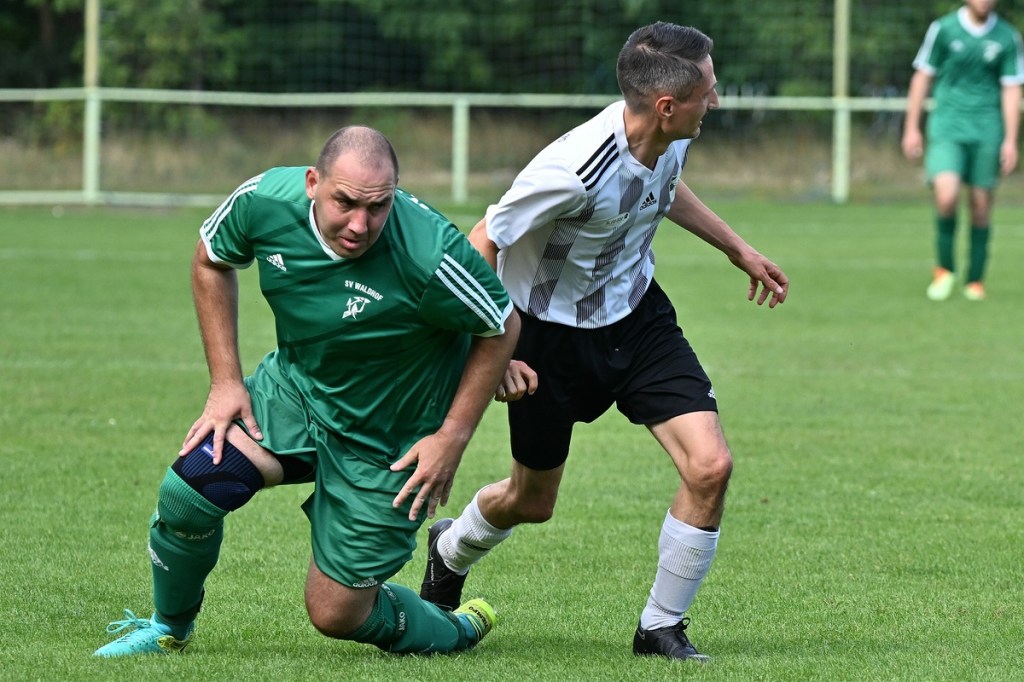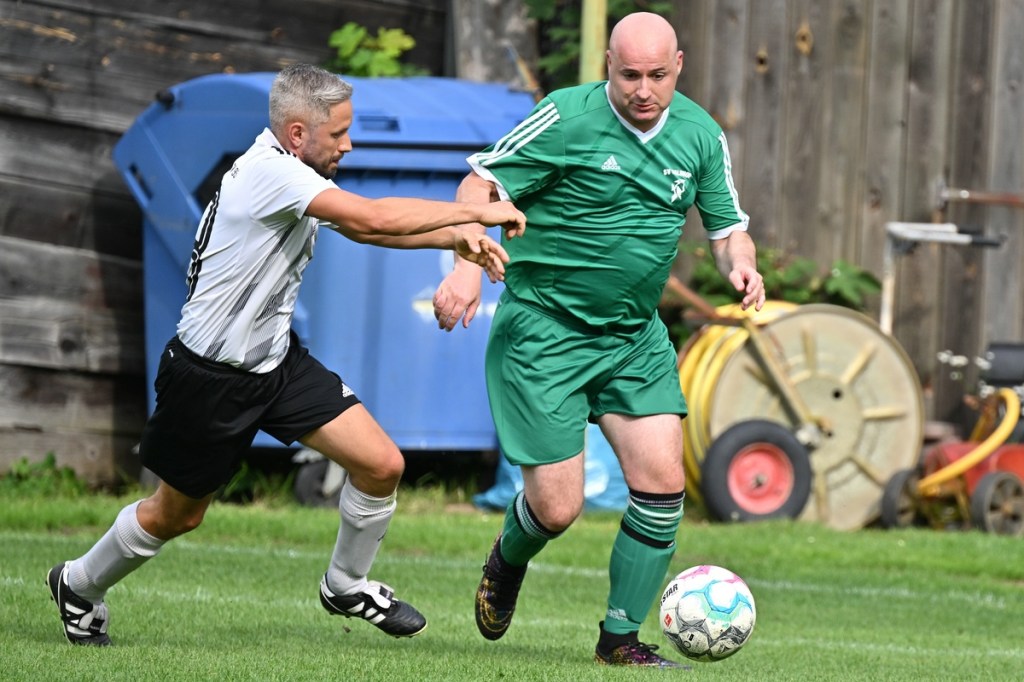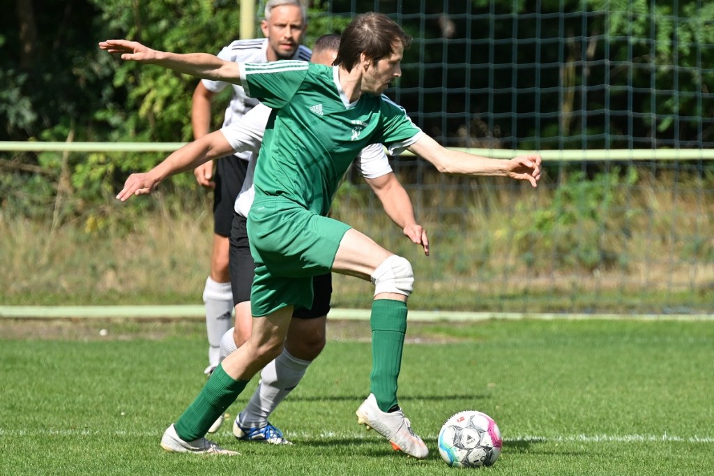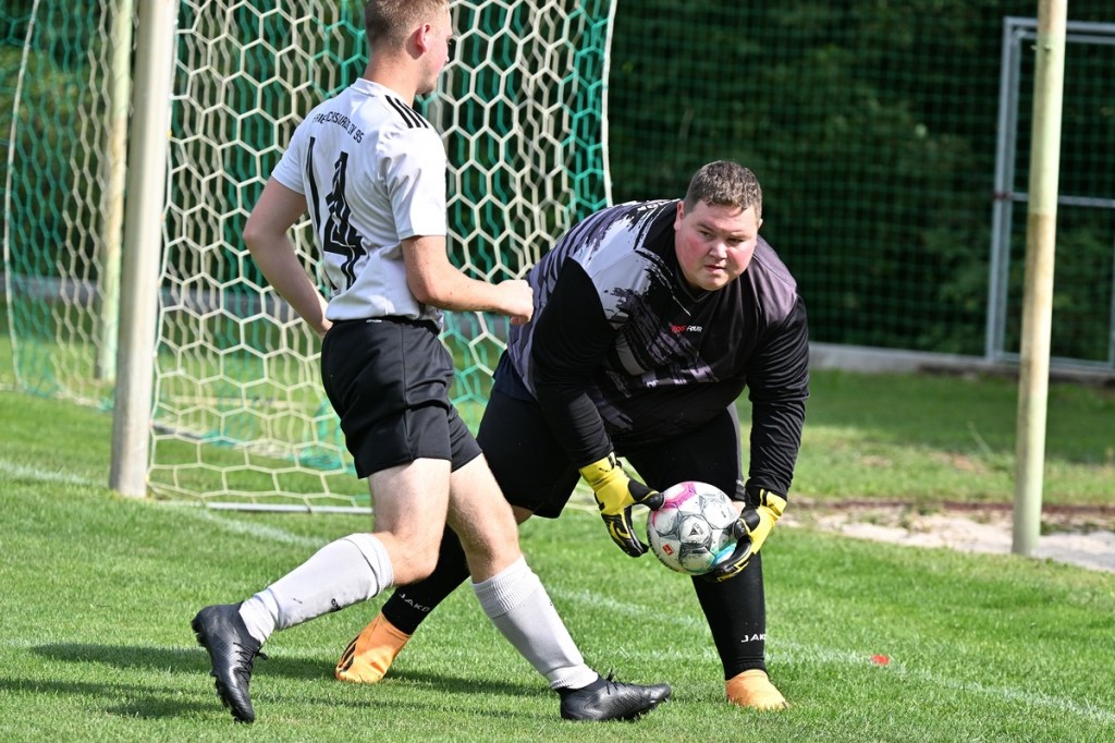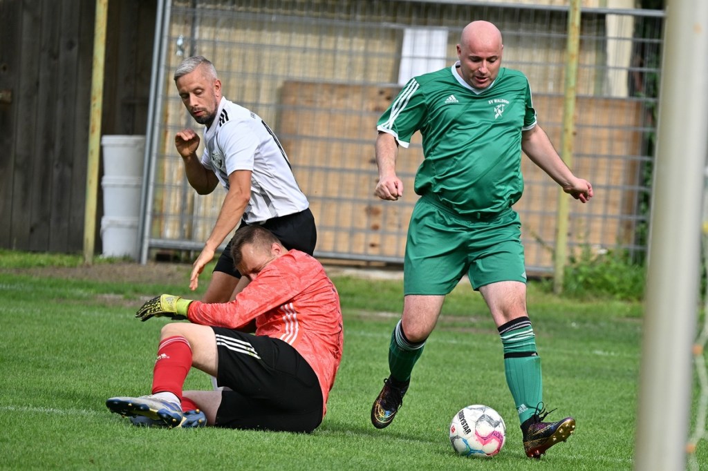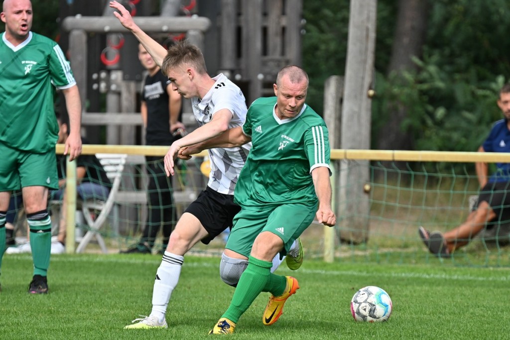 Die Partie begann mit einer sechsminütigen Belagerung der Hausherren rund um den Friedrichswalder Strafraum. Dabei zeigten die Waldhöfer, dass sie nicht nur ein tolles Geläuf haben, sondern dass auch Struktur gepaart mit Erfahrung in der Angriffsbemühungen zu qualitativ gutem Fußball führen kann. Eine Kette von Eckbällen ließ die Gäste kaum Luft holen. So war es Spechthausens Mannschaftskapitän mit der Nummer 6 (k.A.) der mit einem Lattentreffer in der 3. Minute die klare Ansage der Hausherren untermauerte. Friedrichswalde konnte von Glück reden, in den Anfangsminuten nicht mindestens die erste Bude kassiert zu haben. Zum ersten Mal zuckte die Gästeoffensive nach sechs Minuten, als Paul Bertram stramm aus der zweiten Reihe abzog und dabei Waldhof-Keeper Tom Freund in eine erfolgreiche Prüfung schickte. Trotzdem blieben die Spechthausener weiter im Vorwärtsgang und kamen durch Robert Kreuzer zur frühen Führung. Eine softe Eingabe in den Strafraum verwertete Kreuzer sehenswert in Seitfallzieher-Manier und ließ sich dafür berechtigterweise feiern (9.). Waldhof knabberte weiter an der Ergebnis-Erhöhung, doch mehr als ein paar Halbchancen sprangen dabei nicht mehr heraus. Was den Angriffsbemühungen an Überzeugung fehlte, war die Konsequenz und Kaltschnäuzigkeit. Dazu gesellte sich viel Hektik im Aufbau und eine gewisse Schludrigkeit in der Zielfindung. Friedsrichwalde hingegen kam nun besser in die Partie, blieb aber weiterhin hinter den Erwartungen zurück. Als dann Mairbek Timirbulatov in der 18. Minute für die Heimtruppe nach einer Ecke per Kopfball auf 2:0 stellte, keimten für die Gäste keinen positiven Vorahnungen. Die Partie tauchte in der Folge immer mehr in die Rustikalität ab. Dabei lag der Grad des Überschreitens schon mehr bei der Heimmannschaft. Die Gäste waren zwar etwas besser im Spiel, agierten aber viel zu fehlerbehaftet in der Spieleröffnung. Spechthausen nahm die Einladungen an, blieb aber in der Konsequenz viel zu gastfreundlich. Letztendlich kam es so wie es kommen musste. Der auffälligste Gäste-Akteur, Paul Bertram, belohnte sich nach einigen Versuchen und erzielte in der 38. Minute den Anschlusstreffer. In der Entstehung des Treffers übersah aber Referee Niklas Peter Martitz eine klare Abseitsstellung, aus dessen der Pass zum Torschützen kam und dann das Tor erzielt wurde. Nur einhundertzwanzig Sekunden später lag der mögliche Zwei-Tore-Abstand förmlich in der Luft. Ein langer Ball auf Mairbek Timirbulatov brachte eine Eins-gegen-Eins-Situation, bei der dem Waldhöfer die Nerven versagten und den Ball schon recht kläglich neben den Kasten seinen Weg ins Aus fand. Den Schlusspunkt des ersten Durchganges setzte Paul Bertram. Doch er hatte doppelt Pech. Zum Ersten blieb sein Schuss mit händischer Unterstützung am liegenden Waldhöfer Jan-Ole Boness hängen und zum Zweiten blieb der fällige Hand-Strafstoßpfiff aus (44.).