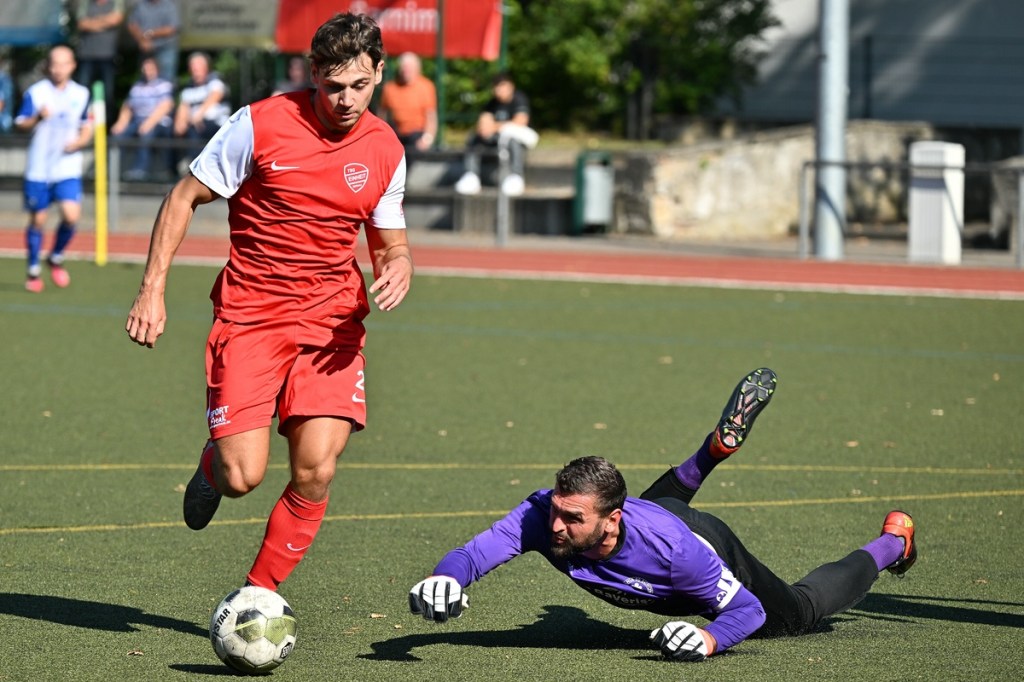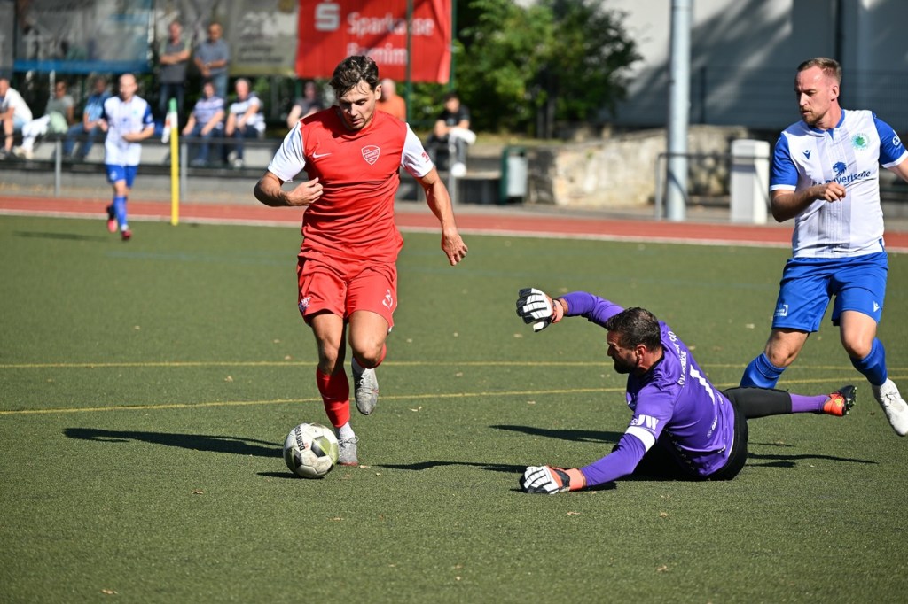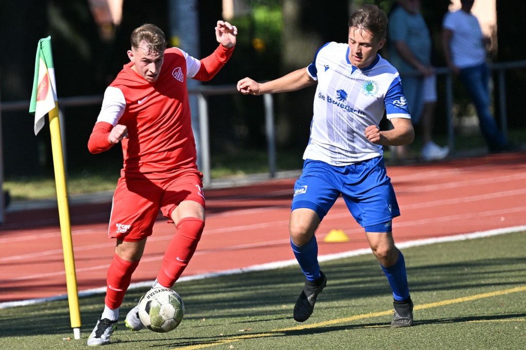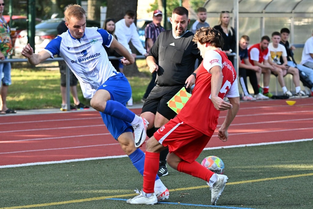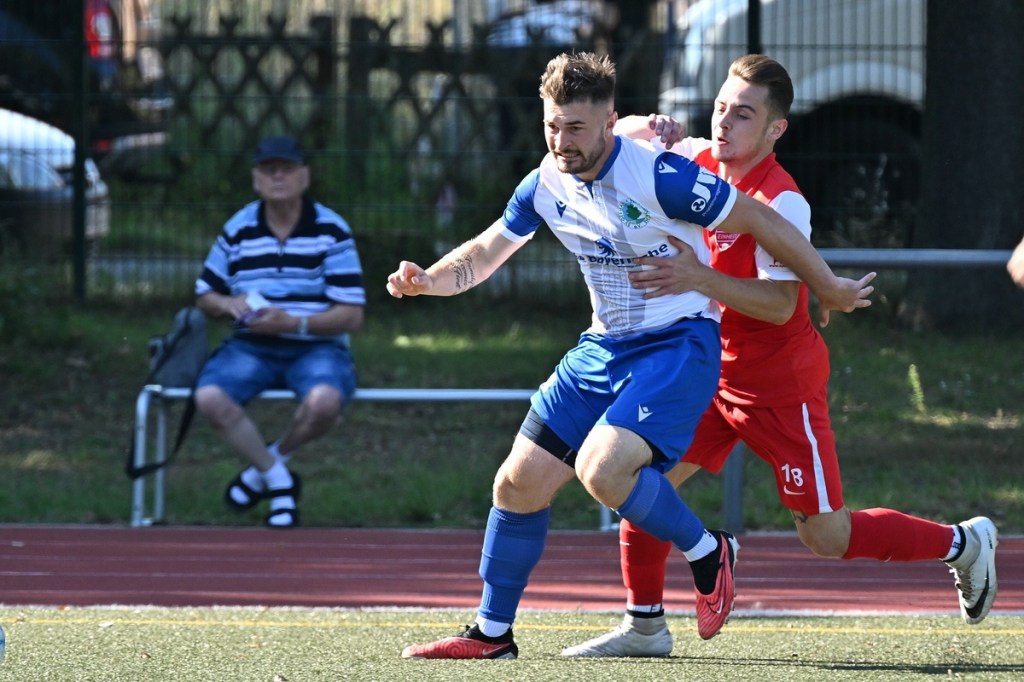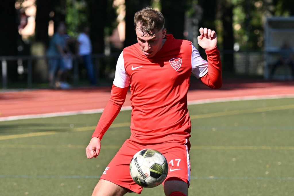Der Wiederanpfiff war kaum verhallt, da hatte Wiedenhöft wiederum maßgenommen. Aus gut zwanzig Metern, mit Schmackes draufgehalten, ging der Ball knapp über das Tor (46.). Die Begegnung zog nun merklich an. Germania erhöhte den Druck und kam verstärkt zu Möglichkeiten. Erst war es Max Hühne, der das Lattenkreuz aus Nahdistanz auf Festigkeit testete (47.), dann tat ihm Richard Bergmann gleich und nagelte ebenfalls das Spielgerät ans gekreuzte Gebälk (52.). „Das hatten wir schon Match-Glück“, brachte es Tomaschewski auf den Punkt und musste in der Folge seine Jungs verbal mit Anweisungen stärker unterstützen. Aber auch Schiedsrichter Andy Schmidt war gefordert, den aufkommenden, negativ anhauchten Spielcharakter etwas mehr Ordnung zu verschaffen. Chancen technisch blieben die Gäste weiter in der Oberhand und kratzen intensiv am Anschlusstreffer. Den hatte der agile Max Hühne wiederholt auf den Schlappen, doch die Ungenauigkeit zog weiterhin ihre Kreise (61.). Der Ball, den Felix Wiedenhöft aus der Ferne in den Strafraum jagte und der im nachsetzenden Gewühl an die Hand des sich am Boden abstützenden Fritz Söllner prallte, sollte aus Gästesicht einen Strafstoß nach sich ziehen. Doch Referee Schmidt hatte gute Sicht und ließ der Regel folgend das Spiel weiterlaufen (64.). Den dritten Alu-Treffer markierte Max Mulack für seine Germanen aus achtzehn Metern, als das Spielgerät leicht abgefälscht den rechten Außenpfosten touchierte (76.). Die Zeit agierte jetzt gegen die Gäste. Bernau brauchte bis zur 78. Minute für die erste eine nennenswerte Chance in Halbzeit zwei. Diese hatte Lucas Müller per Kopfball mit dem Resultat der knappen Torverfehlung (78.). Dass Einheit auch Aluminium konnte, bewies Tom Schneider mit seinem präzisen Freistoßschlenzer in der 87. Minute. Den Schlusspunkt der Partie und auch ein Sinnbild des Gästeauftrittes war der Abschluss von Tom Ney, der aus Nahdistanz mit allen Möglichkeiten behaftet die Kugel neben den Kasten setzte (90.+2). „Ich denke, unverdient war der Erfolg heute nicht. Wir waren halt sehr effizient, was uns in der Vergangenheit nicht immer gelungen ist. Momentan kommen wir halt mehr über den Kampf und die mannschaftliche Geschlossenheit, und das macht mich schon sehr froh, dass dies so gut funktioniert“, analysierte Tomaschewski im Nachgang und resümierte weiter über den Saisonstart. „Von den Ergebnissen her bin ich sehr zufrieden. Ich würde mir halt wünschen, dass der Fokus wieder mehr auf den Fußball an sich läge. Eine Vorbereitungsphase, in der die Spieler aus den verschiedensten Gründen nicht anwesend sein können, ist nicht optimal. Aber das ist heute so und damit muss man sich halt arrangieren.“
