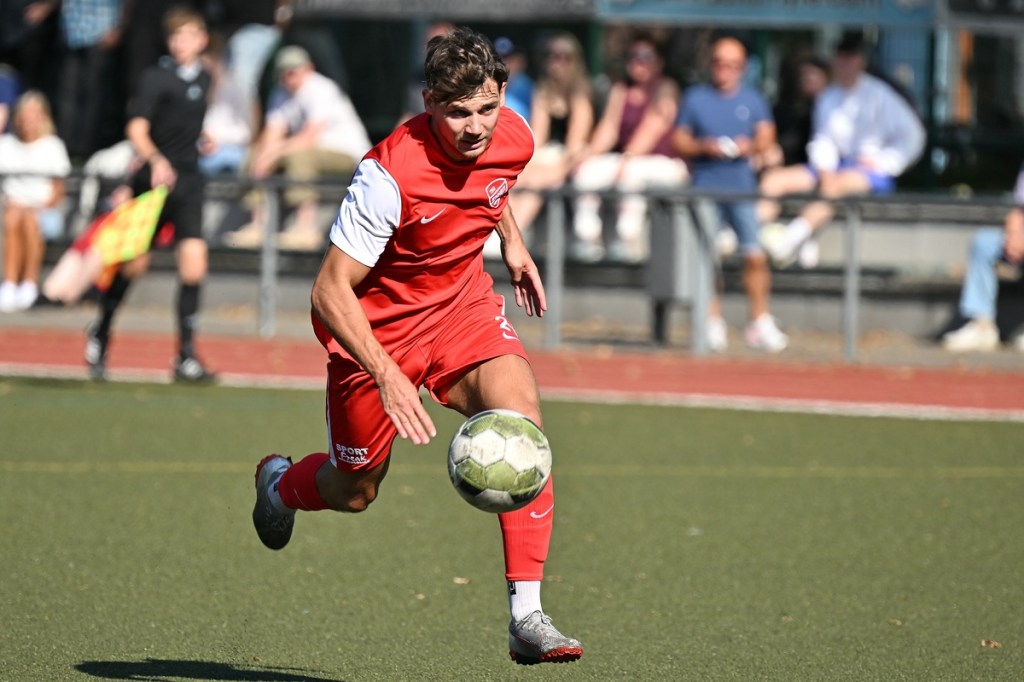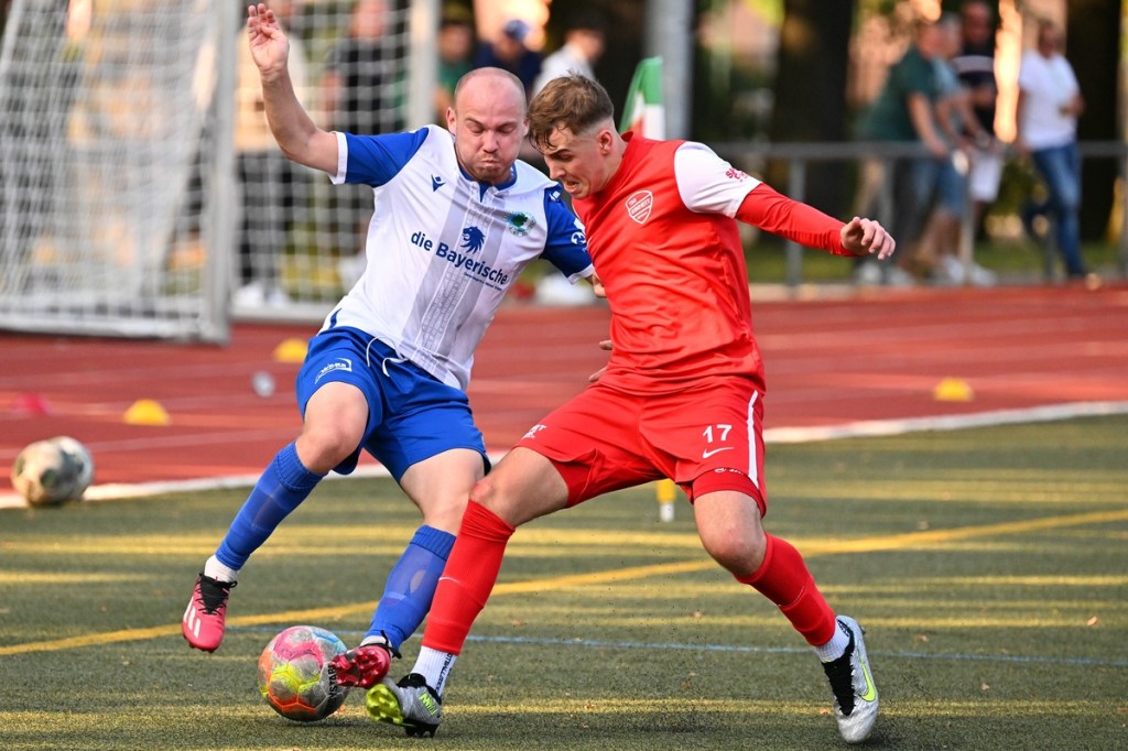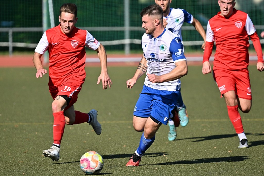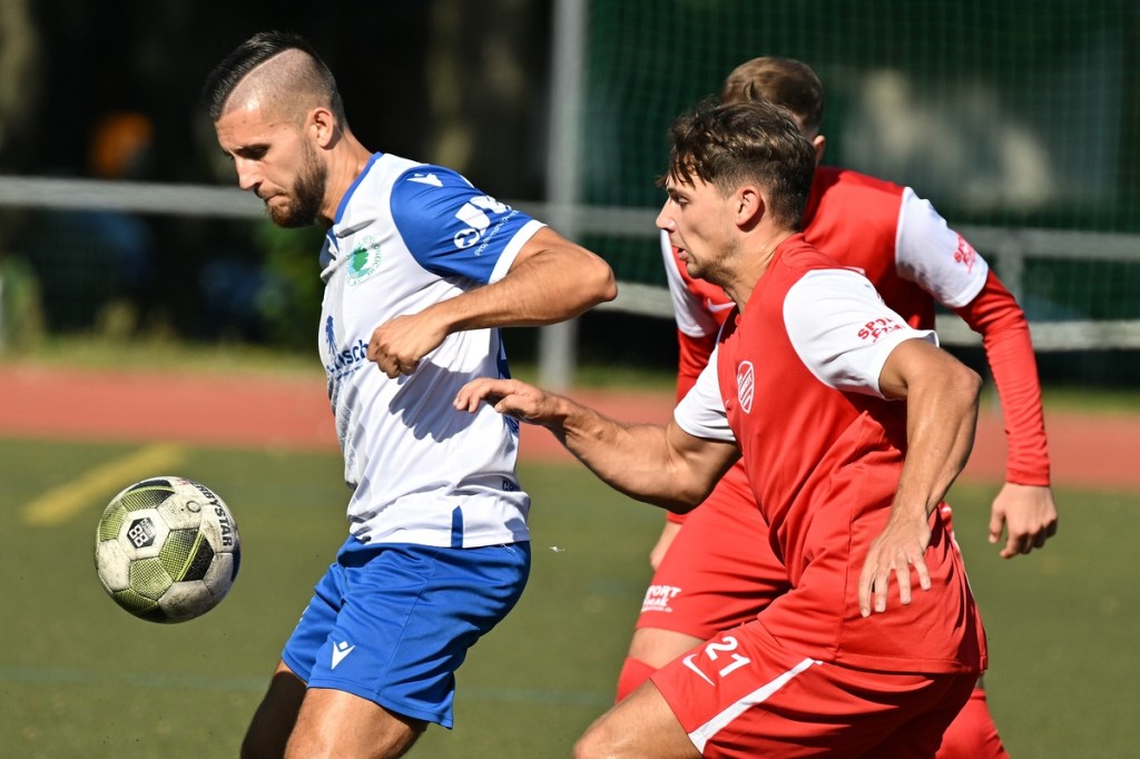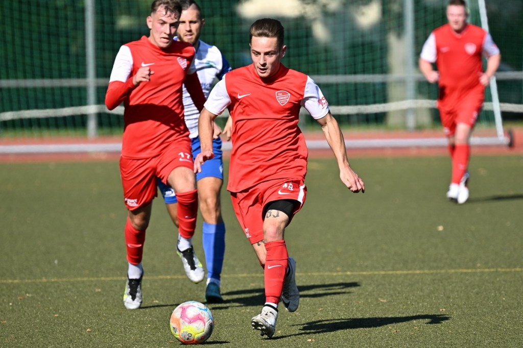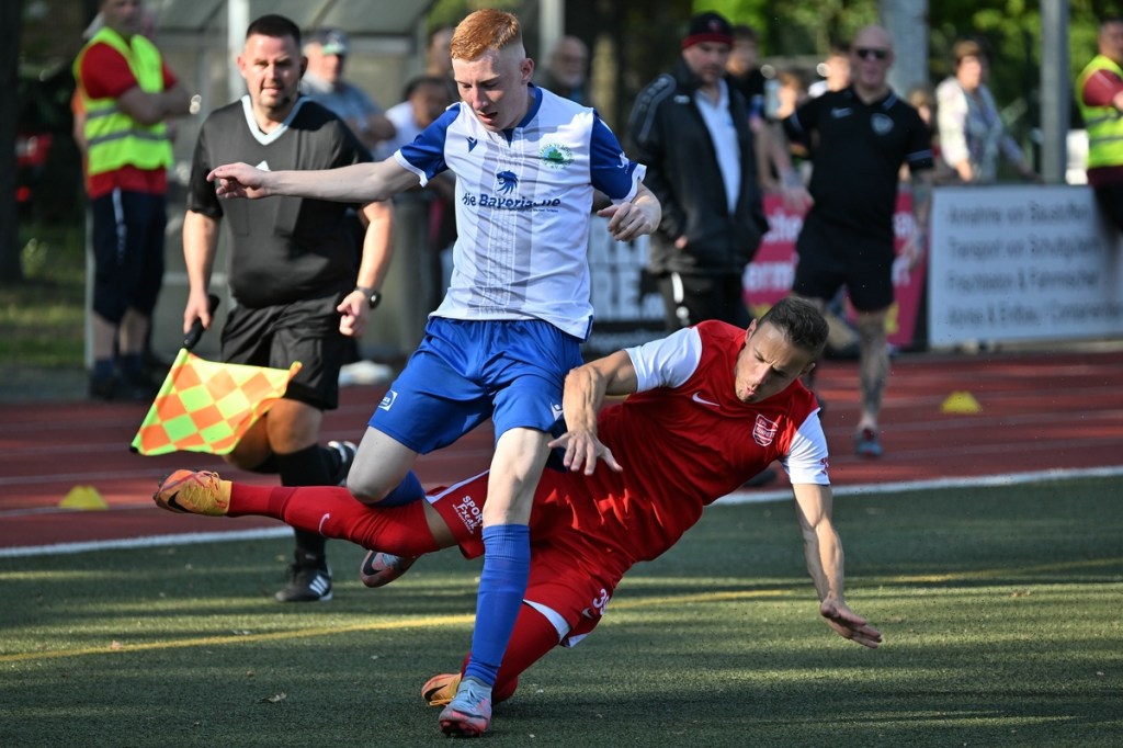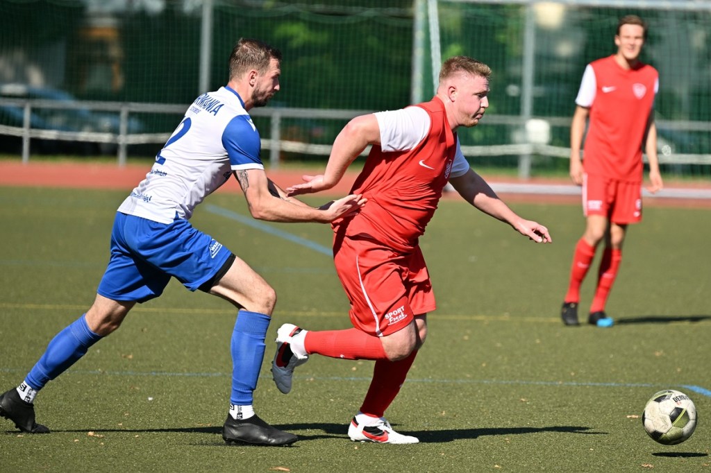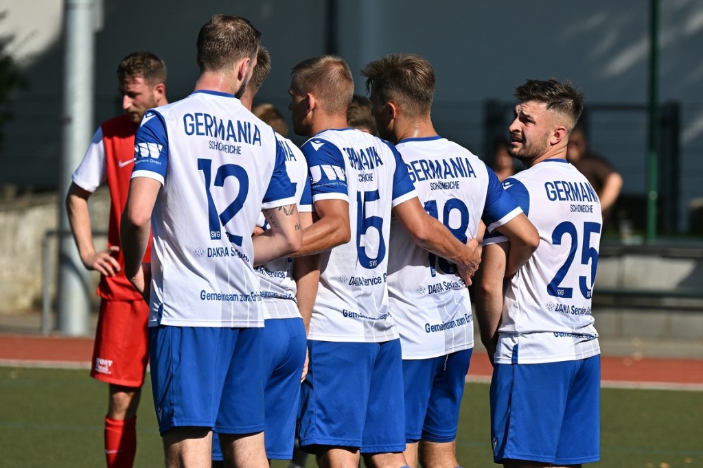 Dass die Begegnungen auf dem kleinen Kunstrasen am Bernauer Wasserturm generell keinen verhaltenen Aufgalopp benötigen, ist hinlänglich bekannt. Und dass die TSG in der Anfangsphase sehr oft die aktivere Mannschaft ist, eigentlich auch. Doch diesmal schnappten sich die Gäste die Anfangsminuten und bereiteten den Bernauern schon etwas Kopfzerbrechen für die Lösungswegfindung, um das frühe Gegenpressing abzustellen. Zehn Minuten passierte in beiden Strafräumen rein gar nichts. Als dann Paul Federlechner im Mittelfeld springend einen hohen Ball abfing und damit die aufgerückte Germanen-Abwehr düpierte und seinen eigenen Treffer einleitete, war es um die bis dato besser aufspielenden Gäste geschehen. Federlechner war nun gradlinig und zielstrebig unterwegs, umkurvte den heraus geeilten SV-Torsteher Danny Kempter und ließ das Netz im nun leeren Tor viel umjubelnd zappeln (11.). Das Tor hatte Wirkung gezeigt. Zwar war Schöneiche weiter gut in der Begegnung, doch fehlte dem gesamten Auftritt die Überzeugung. Ein wenig Leerlauf bestimmte indessen die Folgeminuten, ohne dass das intensive Mittelfeld-Geplänkel darunter litt. In der 24. Minute roch es dann stark nach dem zweiten Heimtreffer. Ein langer Einwurf wurde im Kopfball-Duell verlängert. Paul Peschke genoss am langen Pfosten als Nutznießer volle Freiheit, kam auch zum Schuss, doch fehlte dem die Präzision, sodass Kugel mit reichlich Abstand die Querlatte passierte. „In dieser Phase, auch in der gesamten ersten Halbzeit, war ich sehr zufrieden mit dem Auftritt meiner Jungs“, frohlockte TSG-Trainer Nico Tomaschewski in seiner Analyse und untermauerte damit die Berechtigung des positiven Ergebnisstandes. Germania hingegen suchte weiter nach Ideen aus dem Spiel heraus. Eine nennenswerte Gästechance resultierte aus einem Eckball, den Tom Ney mit der Stirn verwertete, aber nicht präzise Richtung Tor brachte (27.). Auch der Kopfball durch Robert Szczegula, welcher aus einem langen Einwurf entsprang, war nicht von Erfolg gekrönt, weil TSG-Torhüter Steve Jarling diesen sehenswert entschärfte (30.). Die Schlussphase, Richtung Halbzeitpfiff, brachte die Gäste wieder besser ins Gespräch. Robert Szczegula tankte sich an der Strafraumgrenze entlang, legte auf seinen Kollegen Max Hühne ab, der dann ebenfalls in Jarling seinen Meister fand (41.). Der Gegenangriff, noch in gleicher Minute, brachte dann das 2:0. Dabei hinterließ die Gäste-Abwehr einen überforderten Eindruck. Frederick Fiebig kam über die rechte Seite, drang ohne große Gegenwehr bis zur Grundlinie vor und passte in den Rückraum. Dort war Adrian Evers mitgelaufen und konnte alleingelassen die Kugel Richtung Tor bringen. Sein Schuss war qualitativ nicht sehr hochwertig und am Ende noch Glück behaftet, als der Ball unter Kempters Beinen durchrutschte und letztendlich schleichend die Torlinie überquerte. Den Halbzeit-Schlusspunkt setzte Schöneiches Felix Wiedenhöft mit einem Geschoss aus der zweiten Reihe und einem Touchieren der Lattenoberkante (43.).