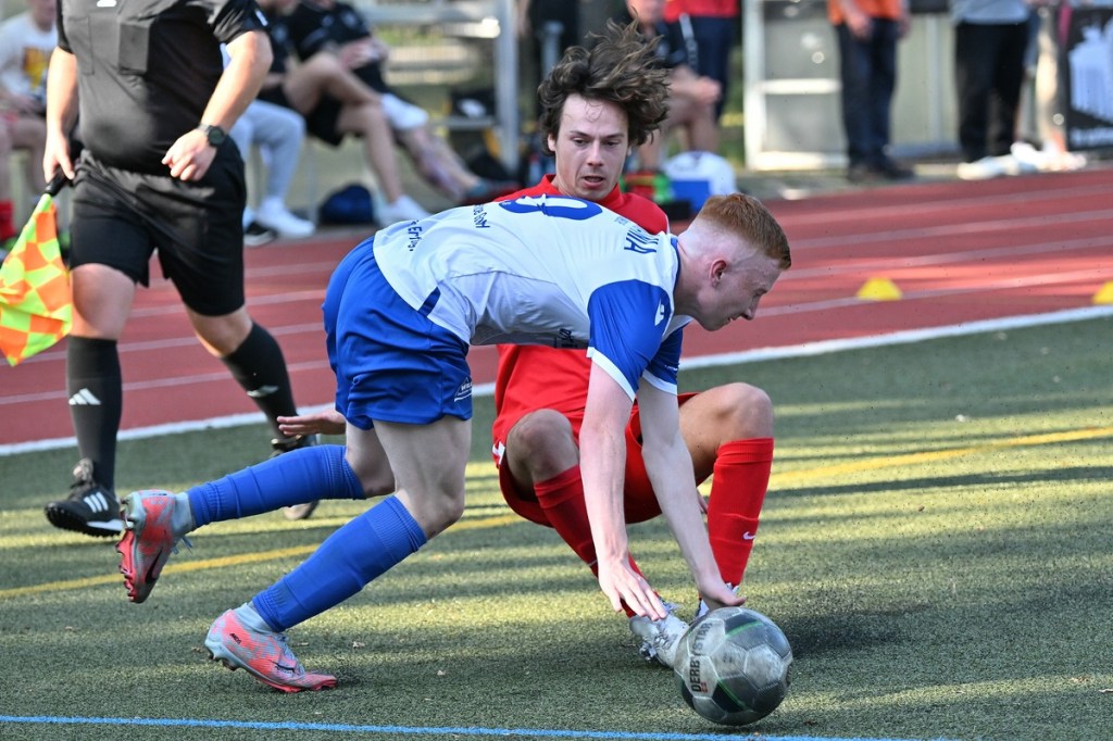 Schiedsrichter: Andy Schmidt (In einer engen, aber doch recht fairen Partie war der Referee gut und souverän unterwegs. Reagierte auf die wechselnden, unterschiedlich intensiven Spielphasen mit „Zucker & Peitsche“. Gerade in der Anfangsphase des zweiten Durchganges, als etwas mehr Rustikalität ins Spielgeschehen hineinfloss, brachten zwei Verwarnungen die Stoppschilder zum Vorschein, die es brauchten, um die Partie wieder in normale Bahnen zu lenken.)
