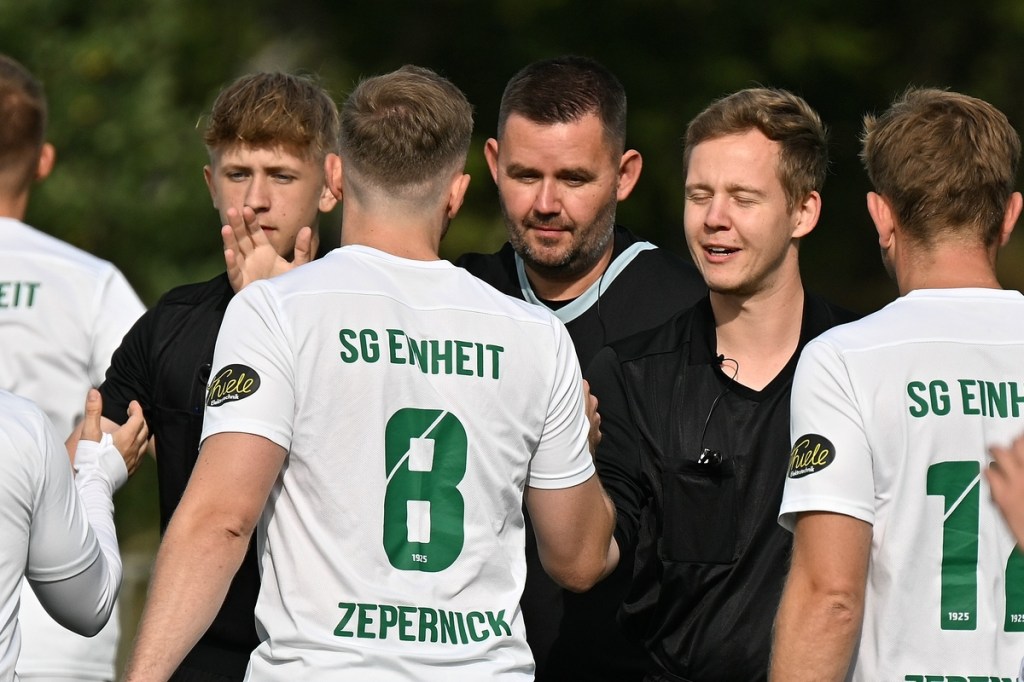Die Anzeigetafel hatten die Zepernicker schon beräumt, ehe Gäste-Trainer Christian Städing, der ein intensives Gespräch mit seinem Mannschaftskapitän Daniel Bittner geführt hatte, zur Spielanalyse antrat. „Wir waren mindestens eine Klasse schlechter oder der Gegner eine Klasse besser. Wir waren in allen Belangen unterlegen. Punkt. Dann kommt halt so ein Ergebnis raus“, waren die ersten Worte eines sichtbar enttäuschten Übungsleiters. „Jetzt unmittelbar nach dem Spiel habe ich keine Antwort auf die Frage nach der Ligatauglichkeit. Fakt ist, dass wir Absteiger sind und für die Landesliga unsere Klasse noch nicht unter Beweis gestellt haben. Es wird momentan vieles hinterfragt, das tue ich ebenfalls für mich und meine Arbeit. Es gib auch einen Austausch auf allen Ebenen. So wie es jetzt läuft, kann es nicht weitergehen. Wie es letztendlich weitergeht, entscheidet sich in der kommenden Woche und dann muss man halt mal schauen, welche Konsequenzen daraus gezogen werden“, ließ Städing tief blicken und in der Nachbetrachtung viel Raum für Spekulationen und „Zwischen-den-Zeilen-Leserei“. Genau das Gegenteil erlebte der Einheit-Coach Markus Haase. Punktuell im vollen Soll zeigte er sich schon stolz auf seine Jungs. „Wir brauchten fünf Minuten, um in die Partie zukommen und haben dann vieles richtig gut gemacht. Es hat wieder Spaß gemacht und das Ergebnis ist dann auch die Belohnung für die gute Trainingswoche. Wir bleiben weiterhin als Aufsteiger demütig und blicken nicht zurück auf das, was eventuell an Torchancen im ersten Durchgang liegengelassen wurde. Wir haben immer wieder mal Phasen, wo es nicht so läuft. Aber daran arbeiten wir, dass wir darin stabiler werden. Ich hoffe, die positive Reise geht weiter. Mir macht es wirklich Freude, mit den Jungs zu arbeiten.“