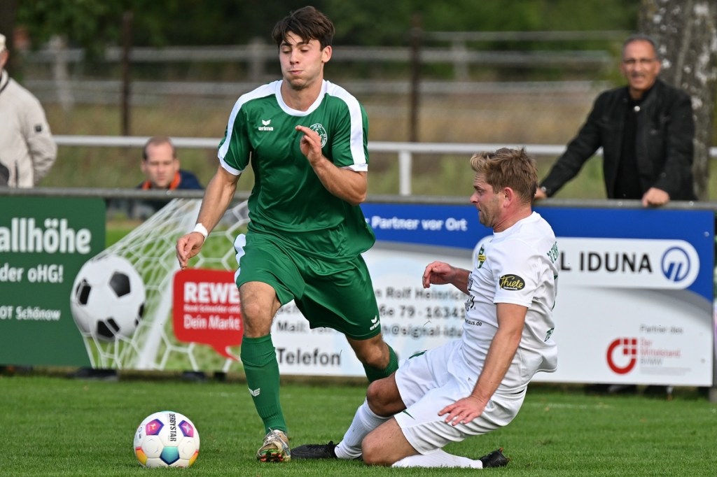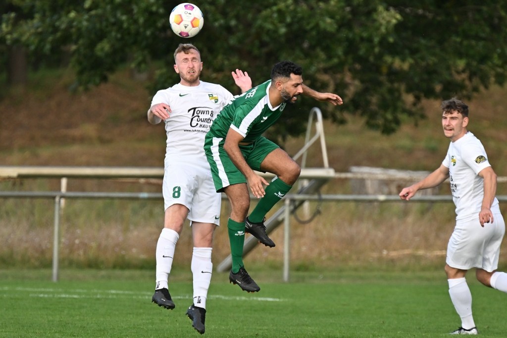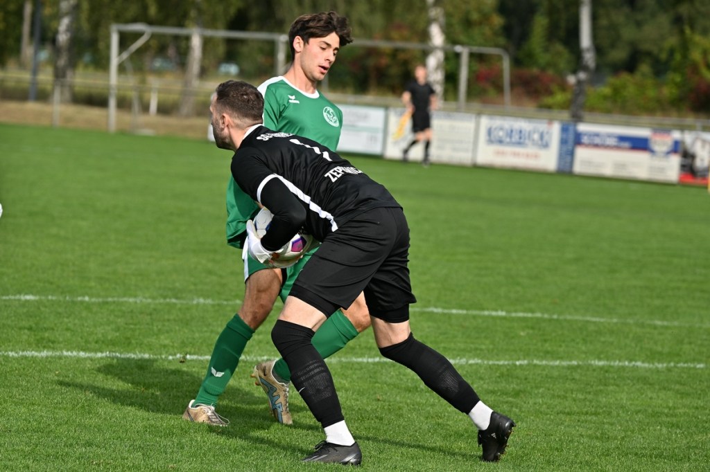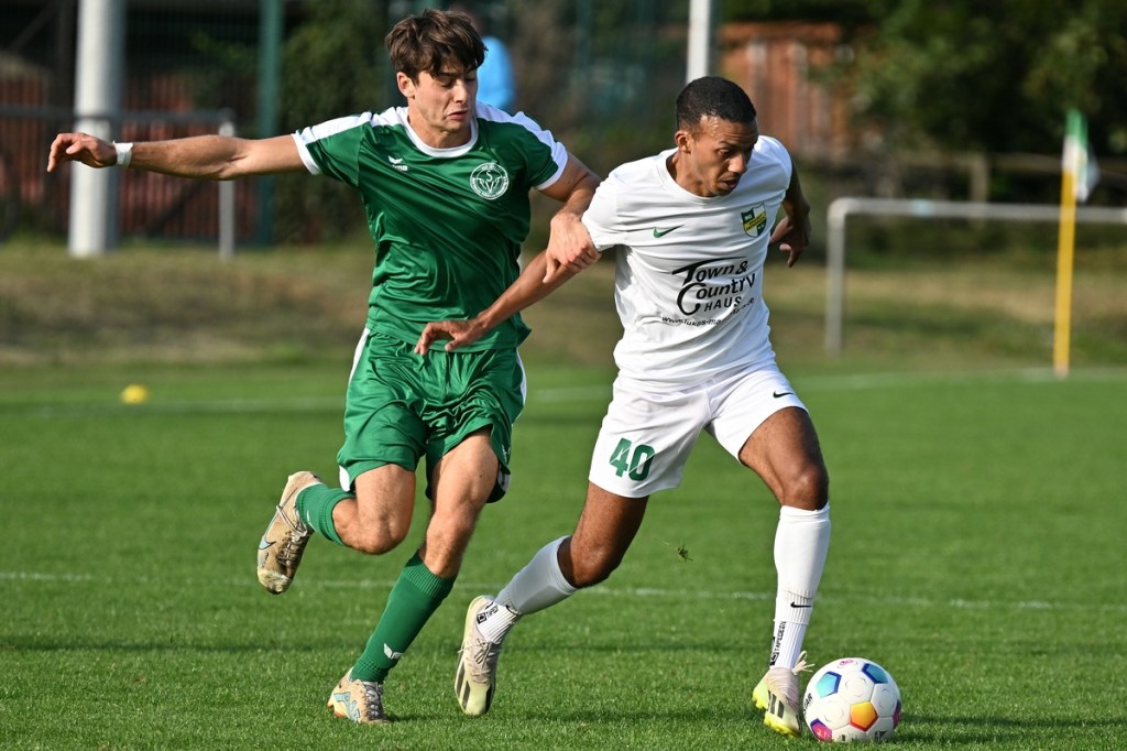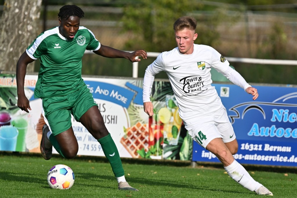 Dabei begann die Partie bei bestem Wetter auf einem Rasen, dem ein kürzerer Schnitt sichtbar gutgetan hätte, mit einer Gästemöglichkeit. Ein Freistoß, der lang in den Strafraum geschlagen und per Kopf verlängert wurde, brachte Cedric Burchardi in die Situation aus Nahdistanz einzuschieben. Doch Burchardi kam nicht richtig zum Ball, sodass die Kugel knapp am rechten Pfosten vorbei ins Aus ging (1.). Die Anfangsperiode zeigte schon an, mit welchen taktischen Marschrouten beide Teams ihre Agenda abarbeiteten. Während die Gäste vornehmlich mit langen Bällen operierten, zeigte sich die Einheit mit geduldiger und spielerischer Aufbauqualität. Fünf Minuten dauerte es, bis sich Tom Bittner als erster Zepernicker auf Strichliste der Abschlussmöglichkeiten eintragen ließ. Doch für eine klare Chance war der Winkel dann doch zu spitz, sodass die Spielfortsetzung „Abstoß“ lautete. Luca Grabarek versuchte es in der 10. Minute recht frei von der Strafraumgrenze. Sein strammes Geschoss wurde aber weggeblockt. Das 1:0 durch Phillip Opitz war in der Entstehung schon zum Zunge schnalzen. Ümit Ejder hatte die Kugel hinter die Abwehrreihe der Gäste gelupft und damit den durchgelaufenen Opitz bedient. Der zeigte sich im Abschluss kaltschnäuzig und ließ FF-Keeper Daniel Bittner nicht den Hauch einer Abwehrmöglichkeit (14.). Für Städing wurde die Folgezeit immer mehr zur Leidenszeit. Seine Jungs entfernten sich zunehmend von der Ligatauglichkeit und konnten eigentlich von Glück reden, dass die Heimtruppe erst einmal keine weiteren, aber durchaus möglichen Kapitalerträge auf die Habenseite bringen konnte. Für Zepernick war gegen tief stehende Gäste weiterhin Geduld gefragt. Doch die Gegenwehr für die Hausherren war so harmlos, dass es genug Alternativen gegeben hätte, um für mehr Torgefahr zu sorgen. Geschwindigkeit wäre ein probates Mittel gewesen, doch der Nichtgebrauch läutete eine elfminütige Leerlauf-Etappe ein. Beim 2:0 ließ Lesley Park den geschossenen Ball von der Strafraumgrenze flattern und Gäste-Torsteher Bittner nicht wirklich gut aussehen. Park kam frei zum Abschluss, nach dem er Nutznießer einer sehenswerten Ballstafette wurde (24.). Falkensee-Finkenkrug zuckte sporadisch im Vorwärtsgang, musste aber auch in diesem Bereich qualitative Abstriche in Kauf nehmen. Philip Opitz trug sich in der 32. Minute wiederholt in die Torschützenliste ein. Ein Larifari-Spielaufbau der Falkenseer wurde zum positiven Bumerang für Opitz, der nicht lange fackelte und unhaltbar einnetzte. Sechzig Sekunden später herrschte dann mal leichtes Chaos im Einheit-Strafraum. Doch auch daraus war kein Gäste-Guthaben zu erzielen, denn der Schuss von Hassan Oumari verkümmerte förmlich auf dem Weg zum Tor. Auch der Versuch aus der Ferne von Ole Oppermann brachte keine Gefahr für Heim-Torsteher Dennis Tietz (44.).