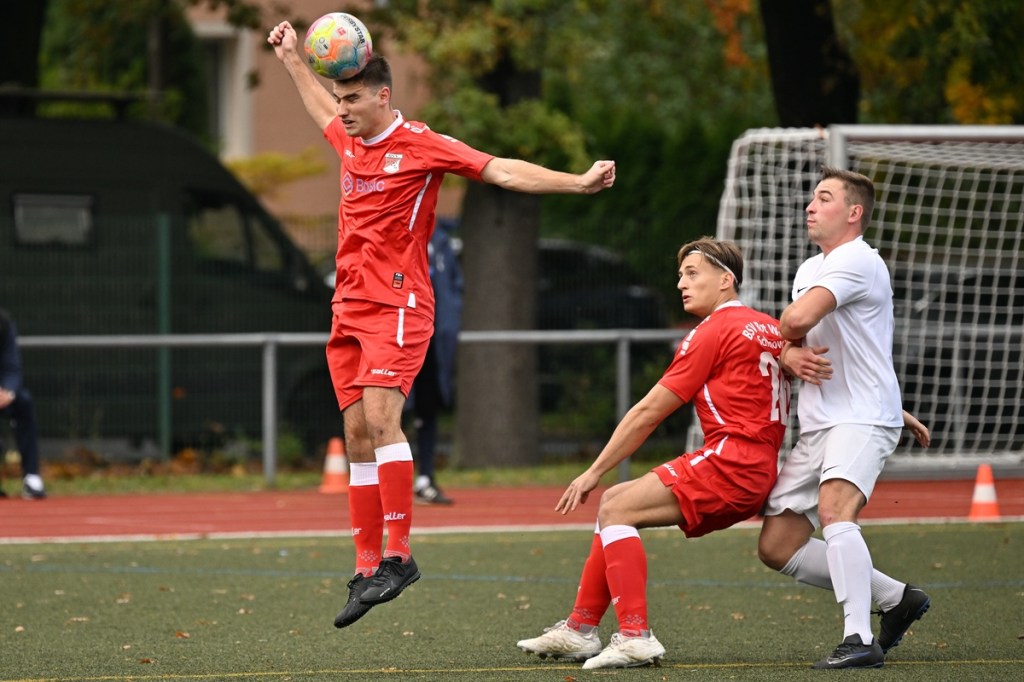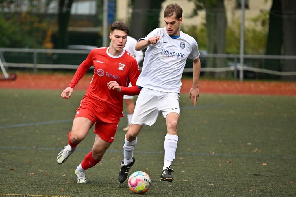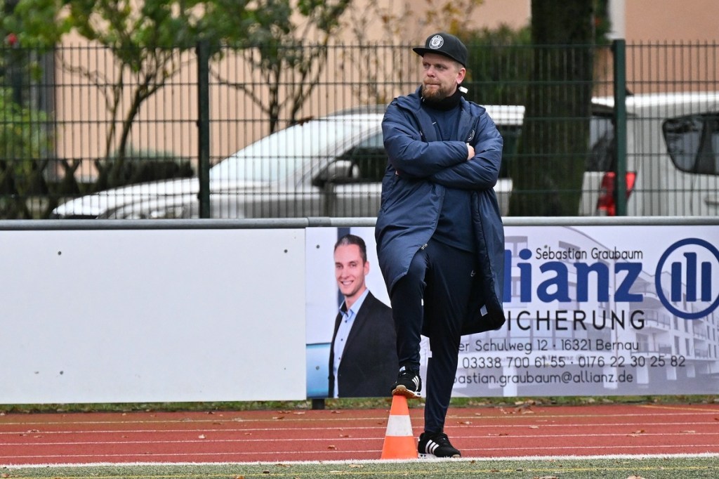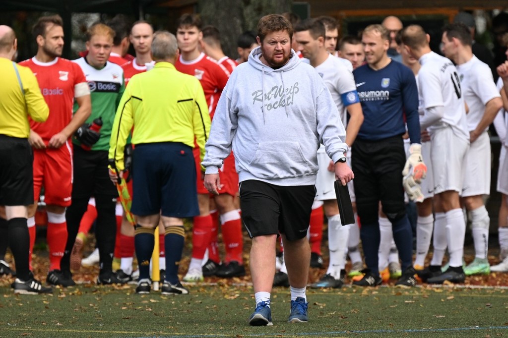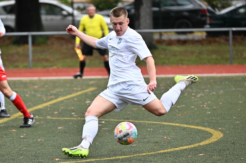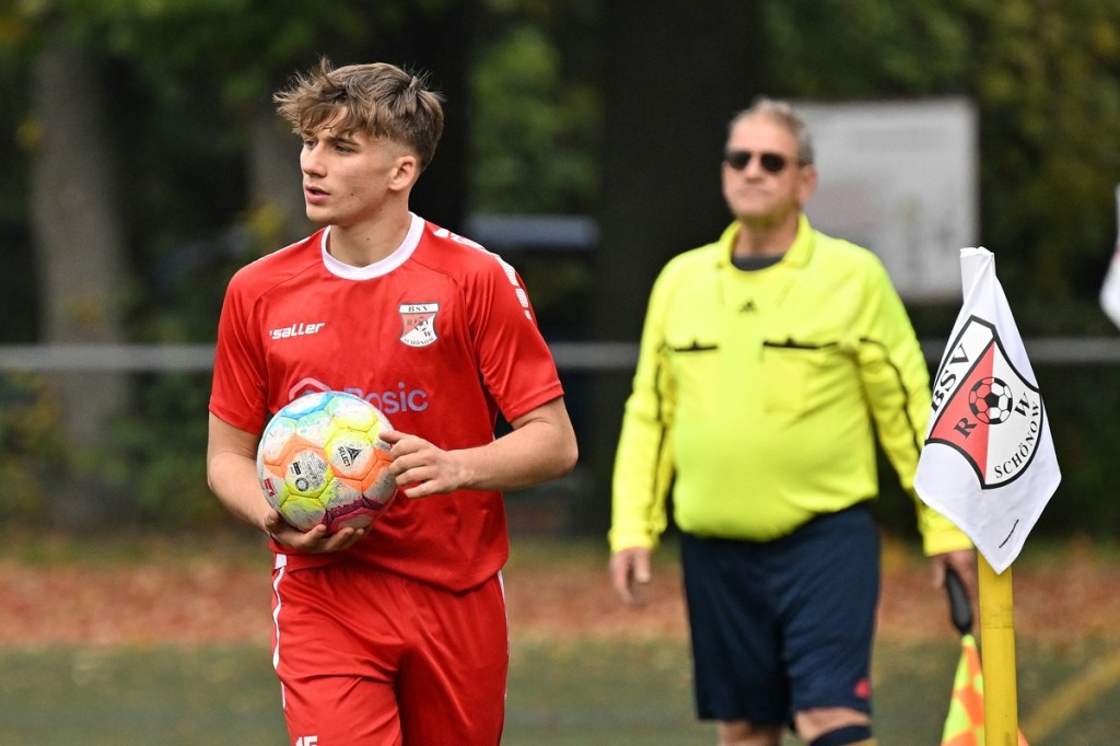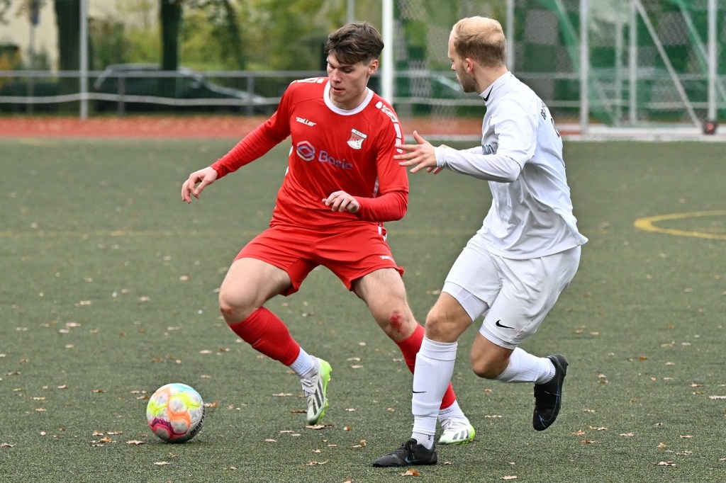 Von Beginn an wurde jeder Meter zwischen den Strafräumen bearbeitet und dies auch in positiver spielerischer Qualität. Gerade die ersten zehn Minuten war das Level auf Augenhöhe mit je einer Möglichkeit ein Rauchzeichen zu setzen. Erst war es der Schönower Youngster Iven Eckardt, der Gäste-Keeper Robin Joseph Reschke aus achtzehn Metern prüfte (3.). Auf der anderen Seite probierte es Paul Haase ebenfalls mit einem Schuss aus der zweiten Reihe, bei dem sich Johannes Weinrich als RW-Torhüter schon etwas mehr strecken musste (4.). Das 1:0, erzielt durch Maximilian Bachnick, untermauerte schon die nun vorherrschenden Machtverhältnisse. Leegebruch konnte einen Tempovorstoß der Hausherren nicht unterbinden, genau wie das Anspiel auf Bachnick, der sein Laufduell ungehindert gewann und souverän einnetzte (12.). Die Partie blieb intensiv, mit Vorteilen auf der Heimseite. Gerade im Gegenpressing und in den Zweikämpfen war Schönow oft doppelt unterwegs und dabei auch recht erfolgreich. Leegebruch war in der Offensive mit Diagonalpass-Versuchen unterwegs, welche doch recht einfach zu verteidigen waren. Die Möglichkeit durch Christoph Spitze, der an der Gästestrafraumkante den Ball mit dem Rücken zum Tor annahm und dann per Seitfallzieher aufs Tor brachte, war dann doch nur für die Galerie, weil schlussendlich die große Gefahr fehlte (18.). Genau in die Rot-Weiße Druckphase wurde das erste Geschenk an die Gäste verteilt. Stümperhaft wurde eine Abwehrsituation genau vor die Füße von Paul Haase geklärt, der die Bestrafung folgen ließ und aus zehn Metern unhaltbar ins Netz traf (23.). Das Spiel fesselte weiterhin, obwohl in den Strafräumen nicht allzu viel passierte. Als dann Schönows Nico Brauer in der 32. Minute Bennet Müller an der Außenlinie im Niemandsland abräumte, weil er einfach zu spät kam, wurde es das erste Mal emotional etwas knackiger. Schiedsrichter Christopher Witte bestrafte die Aktion nachvollziehbar mit dem gelben Karton und setzte verbal noch ein Zeichen an den Täter, knapp am Platzverweis vorbeigeschrammt zu sein. Für Bennet Müller ging es nicht mehr weiter, für ihn kam Mats Wenzke. Ein Konter der Hausherren und ein Dribbling von Iven Eckardt, der einige seiner Gegenspieler schlecht aussehen ließ, endete mit einem Zufall bringen im Gästestrafraum und der Referee-Entscheidung einen Strafstoß zu verhängen. „Für mich war das kein Elfer“, hatte Gäste-Coach Kevin Schulz den Situationsbeschluss moniert und dabei schon etwas frustriert gewirkt. Nico Brauer, der im Übrigen wegen seiner Platzverweisgefahr in der 41. Minute ausgetauscht wurde, übernahm die Verantwortung und ließ Reschke mit sehr platziertem Einschlag keine Abwehrchance (36.). Einhundertachtzig Sekunden später riss das lapidare Abwehrverhaltensmuster der Hausherren das gerade aufgebaute stabile Kartenhaus wieder ein. Es war im Endeffekt eine Blaupause des ersten Gegentreffers, bei der Paul Haase wiederholt zum Nutznießer wurde und frei einschießen konnte. Praktisch mit dem Halbzeitpfiff lag die erneute Führung der Hausherren in der Luft. Ein Diagonalpass aus dem Lehrbruch auf den eingelaufenen Iven Eckardt wurde zur hochprozentigen Möglichkeit. Doch Eckardts Stirn setzte den Ball knapp neben den Kasten, was dem Unterfangen schon ein wenig Kläglichkeit einhauchte.