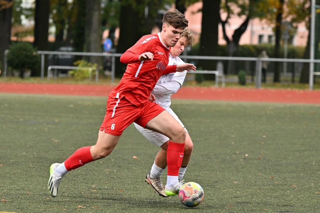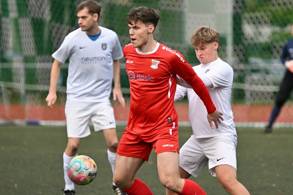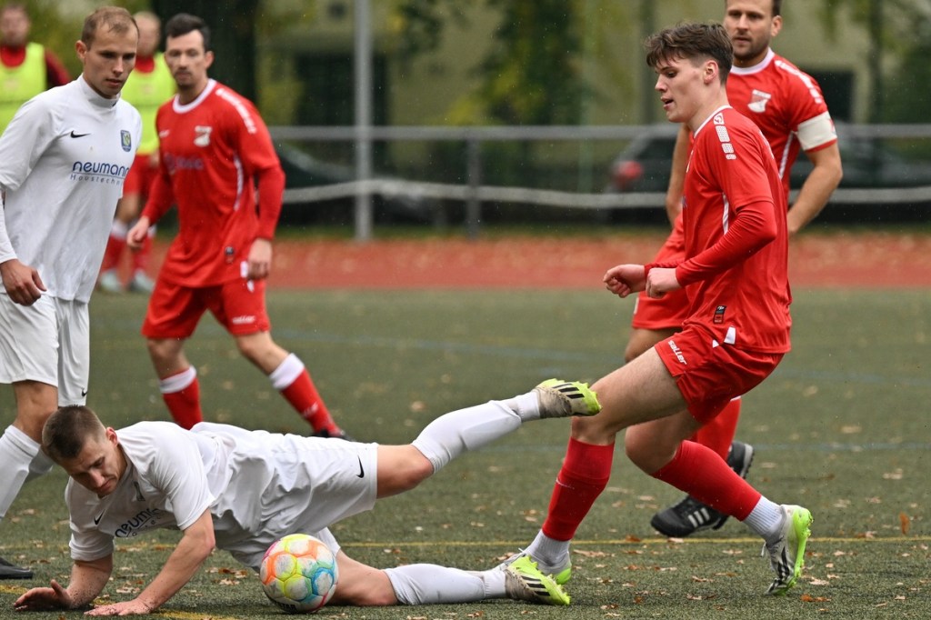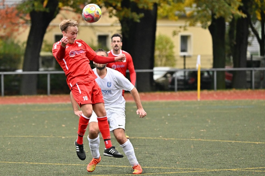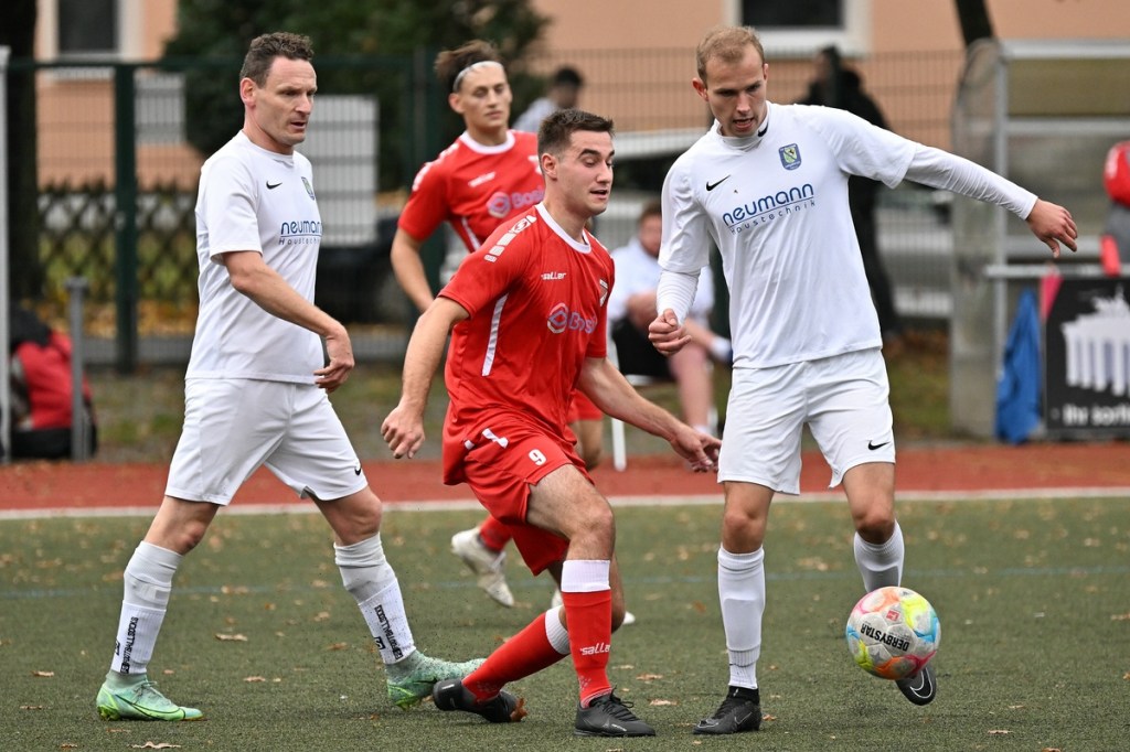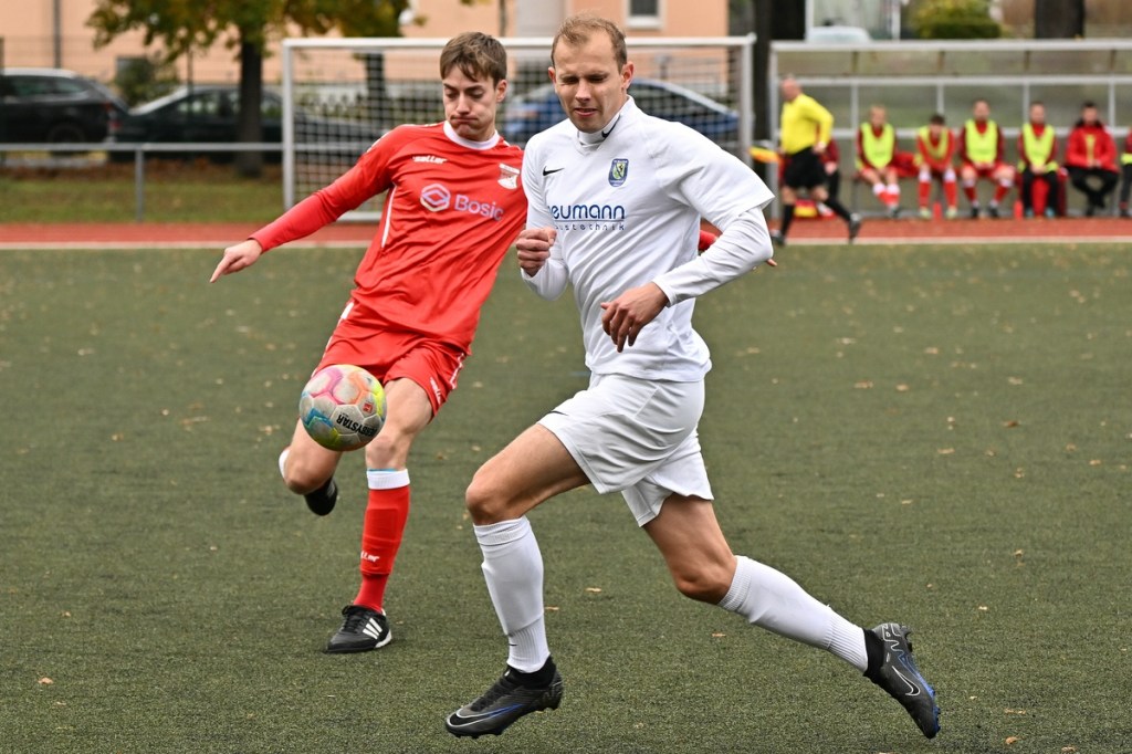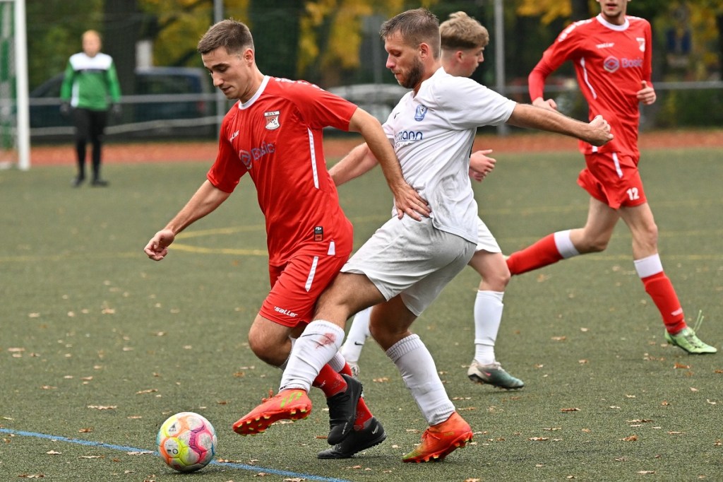 Von Beginn an wurde jeder Meter zwischen den Strafräumen bearbeitet und dies auch in positiver spielerischer Qualität. Gerade die ersten zehn Minuten war das Level auf Augenhöhe mit je einer Möglichkeit ein Rauchzeichen zu setzen. Erst war es der Schönower Youngster Iven Eckardt, der Gäste-Keeper Robin Joseph Reschke aus achtzehn Metern prüfte (3.). Auf der anderen Seite probierte es Paul Haase ebenfalls mit einem Schuss aus der zweiten Reihe, bei dem sich Johannes Weinrich als RW-Torhüter schon etwas mehr strecken musste (4.). Das 1:0, erzielt durch Maximilian Bachnick, untermauerte schon die nun vorherrschenden Machtverhältnisse. Leegebruch konnte einen Tempovorstoß der Hausherren nicht unterbinden, genau wie das Anspiel auf Bachnick, der sein Laufduell ungehindert gewann und souverän einnetzte (12.). Die Partie blieb intensiv, mit Vorteilen auf der Heimseite. Gerade im Gegenpressing und in den Zweikämpfen war Schönow oft doppelt unterwegs und dabei auch recht erfolgreich. Leegebruch war in der Offensive mit Diagonalpass-Versuchen unterwegs, welche doch recht einfach zu verteidigen waren. Die Möglichkeit durch Christoph Spitze, der an der Gästestrafraumkante den Ball mit dem Rücken zum Tor annahm und dann per Seitfallzieher aufs Tor brachte, war dann doch nur für die Galerie, weil schlussendlich die große Gefahr fehlte (18.). Genau in die Rot-Weiße Druckphase wurde das erste Geschenk an die Gäste verteilt. Stümperhaft wurde eine Abwehrsituation genau vor die Füße von Paul Haase geklärt, der die Bestrafung folgen ließ und aus zehn Metern unhaltbar ins Netz traf (23.). Das Spiel fesselte weiterhin, obwohl in den Strafräumen nicht allzu viel passierte. Als dann Schönows Nico Brauer in der 32. Minute Bennet Müller an der Außenlinie im Niemandsland abräumte, weil er einfach zu spät kam, wurde es das erste Mal emotional etwas knackiger. Schiedsrichter Christopher Witte bestrafte die Aktion nachvollziehbar mit dem gelben Karton und setzte verbal noch ein Zeichen an den Täter, knapp am Platzverweis vorbeigeschrammt zu sein. Für Bennet Müller ging es nicht mehr weiter, für ihn kam Mats Wenzke. Ein Konter der Hausherren und ein Dribbling von Iven Eckardt, der einige seiner Gegenspieler schlecht aussehen ließ, endete mit einem Zufall bringen im Gästestrafraum und der Referee-Entscheidung einen Strafstoß zu verhängen. „Für mich war das kein Elfer“, hatte Gäste-Coach Kevin Schulz den Situationsbeschluss moniert und dabei schon etwas frustriert gewirkt. Nico Brauer, der im Übrigen wegen seiner Platzverweisgefahr in der 41. Minute ausgetauscht wurde, übernahm die Verantwortung und ließ Reschke mit sehr platziertem Einschlag keine Abwehrchance (36.). Einhundertachtzig Sekunden später riss das lapidare Abwehrverhaltensmuster der Hausherren das gerade aufgebaute stabile Kartenhaus wieder ein. Es war im Endeffekt eine Blaupause des ersten Gegentreffers, bei der Paul Haase wiederholt zum Nutznießer wurde und frei einschießen konnte. Praktisch mit dem Halbzeitpfiff lag die erneute Führung der Hausherren in der Luft. Ein Diagonalpass aus dem Lehrbruch auf den eingelaufenen Iven Eckardt wurde zur hochprozentigen Möglichkeit. Doch Eckardts Stirn setzte den Ball knapp neben den Kasten, was dem Unterfangen schon ein wenig Kläglichkeit einhauchte.