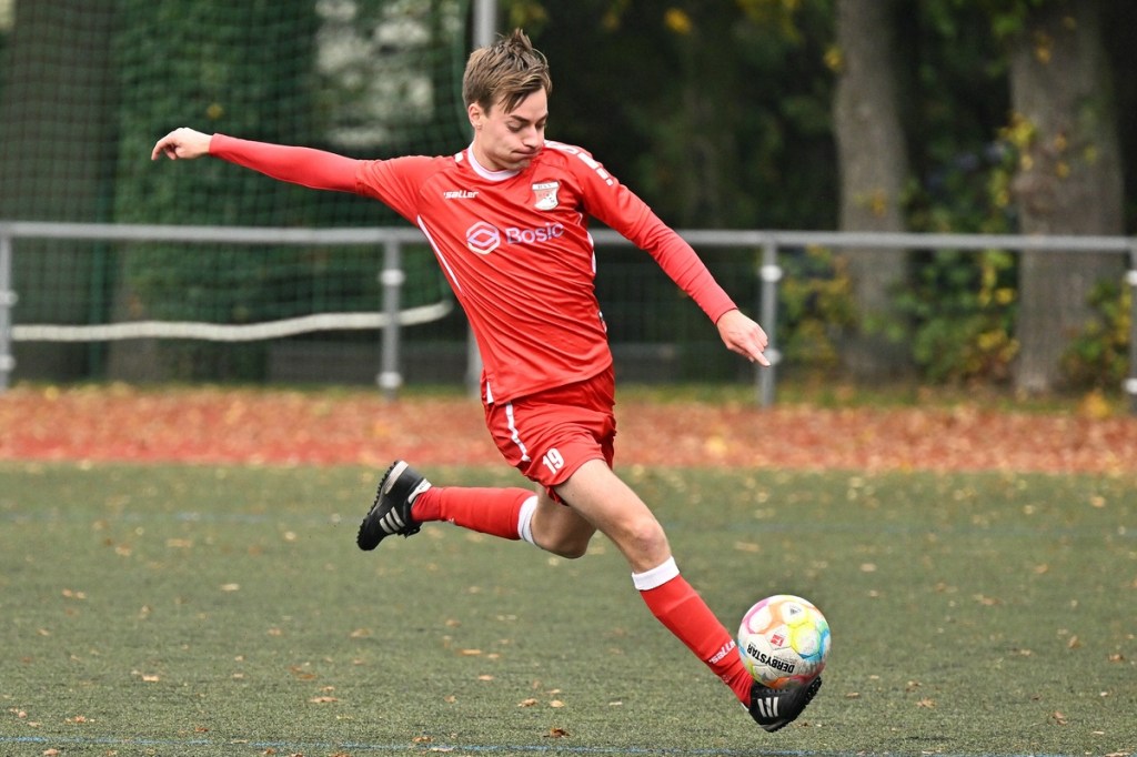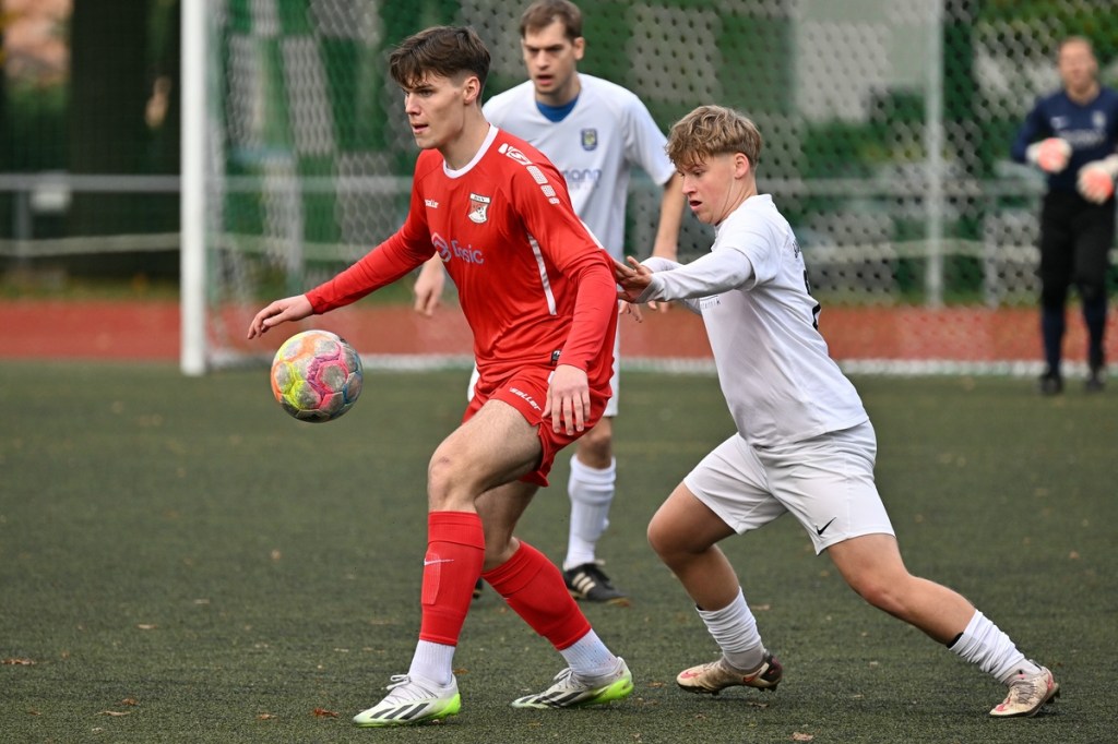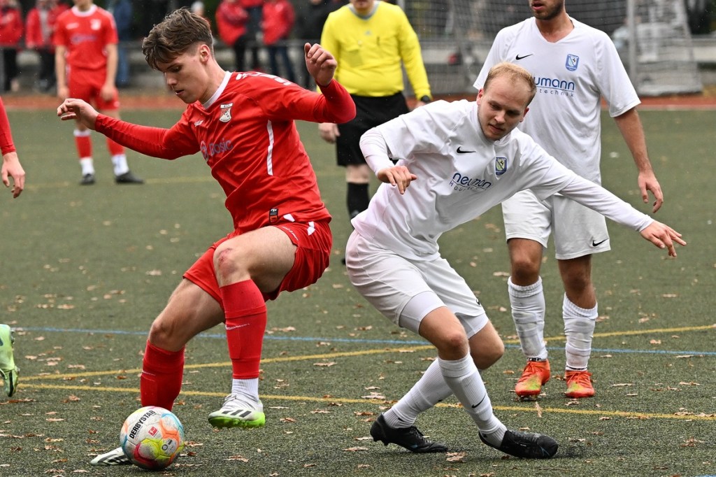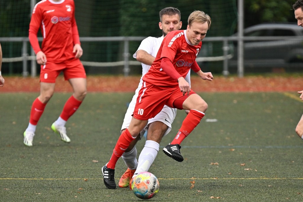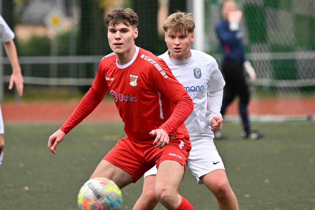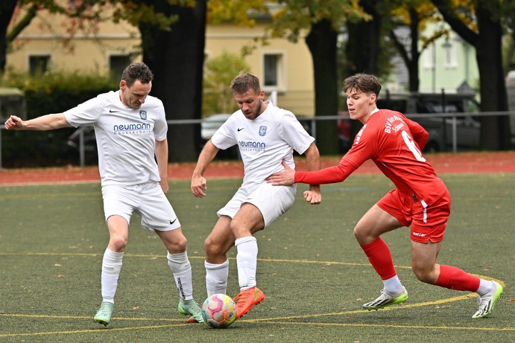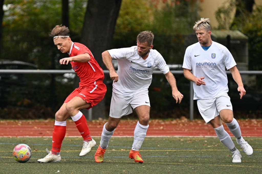 Von Beginn an wurde jeder Meter zwischen den Strafräumen bearbeitet und dies auch in positiver spielerischer Qualität. Gerade die ersten zehn Minuten war das Level auf Augenhöhe mit je einer Möglichkeit ein Rauchzeichen zu setzen. Erst war es der Schönower Youngster Iven Eckardt, der Gäste-Keeper Robin Joseph Reschke aus achtzehn Metern prüfte (3.). Auf der anderen Seite probierte es Paul Haase ebenfalls mit einem Schuss aus der zweiten Reihe, bei dem sich Johannes Weinrich als RW-Torhüter schon etwas mehr strecken musste (4.). Das 1:0, erzielt durch Maximilian Bachnick, untermauerte schon die nun vorherrschenden Machtverhältnisse. Leegebruch konnte einen Tempovorstoß der Hausherren nicht unterbinden, genau wie das Anspiel auf Bachnick, der sein Laufduell ungehindert gewann und souverän einnetzte (12.). Die Partie blieb intensiv, mit Vorteilen auf der Heimseite. Gerade im Gegenpressing und in den Zweikämpfen war Schönow oft doppelt unterwegs und dabei auch recht erfolgreich. Leegebruch war in der Offensive mit Diagonalpass-Versuchen unterwegs, welche doch recht einfach zu verteidigen waren. Die Möglichkeit durch Christoph Spitze, der an der Gästestrafraumkante den Ball mit dem Rücken zum Tor annahm und dann per Seitfallzieher aufs Tor brachte, war dann doch nur für die Galerie, weil schlussendlich die große Gefahr fehlte (18.). Genau in die Rot-Weiße Druckphase wurde das erste Geschenk an die Gäste verteilt. Stümperhaft wurde eine Abwehrsituation genau vor die Füße von Paul Haase geklärt, der die Bestrafung folgen ließ und aus zehn Metern unhaltbar ins Netz traf (23.). Das Spiel fesselte weiterhin, obwohl in den Strafräumen nicht allzu viel passierte. Als dann Schönows Nico Brauer in der 32. Minute Bennet Müller an der Außenlinie im Niemandsland abräumte, weil er einfach zu spät kam, wurde es das erste Mal emotional etwas knackiger. Schiedsrichter Christopher Witte bestrafte die Aktion nachvollziehbar mit dem gelben Karton und setzte verbal noch ein Zeichen an den Täter, knapp am Platzverweis vorbeigeschrammt zu sein. Für Bennet Müller ging es nicht mehr weiter, für ihn kam Mats Wenzke. Ein Konter der Hausherren und ein Dribbling von Iven Eckardt, der einige seiner Gegenspieler schlecht aussehen ließ, endete mit einem Zufall bringen im Gästestrafraum und der Referee-Entscheidung einen Strafstoß zu verhängen. „Für mich war das kein Elfer“, hatte Gäste-Coach Kevin Schulz den Situationsbeschluss moniert und dabei schon etwas frustriert gewirkt. Nico Brauer, der im Übrigen wegen seiner Platzverweisgefahr in der 41. Minute ausgetauscht wurde, übernahm die Verantwortung und ließ Reschke mit sehr platziertem Einschlag keine Abwehrchance (36.). Einhundertachtzig Sekunden später riss das lapidare Abwehrverhaltensmuster der Hausherren das gerade aufgebaute stabile Kartenhaus wieder ein. Es war im Endeffekt eine Blaupause des ersten Gegentreffers, bei der Paul Haase wiederholt zum Nutznießer wurde und frei einschießen konnte. Praktisch mit dem Halbzeitpfiff lag die erneute Führung der Hausherren in der Luft. Ein Diagonalpass aus dem Lehrbruch auf den eingelaufenen Iven Eckardt wurde zur hochprozentigen Möglichkeit. Doch Eckardts Stirn setzte den Ball knapp neben den Kasten, was dem Unterfangen schon ein wenig Kläglichkeit einhauchte.