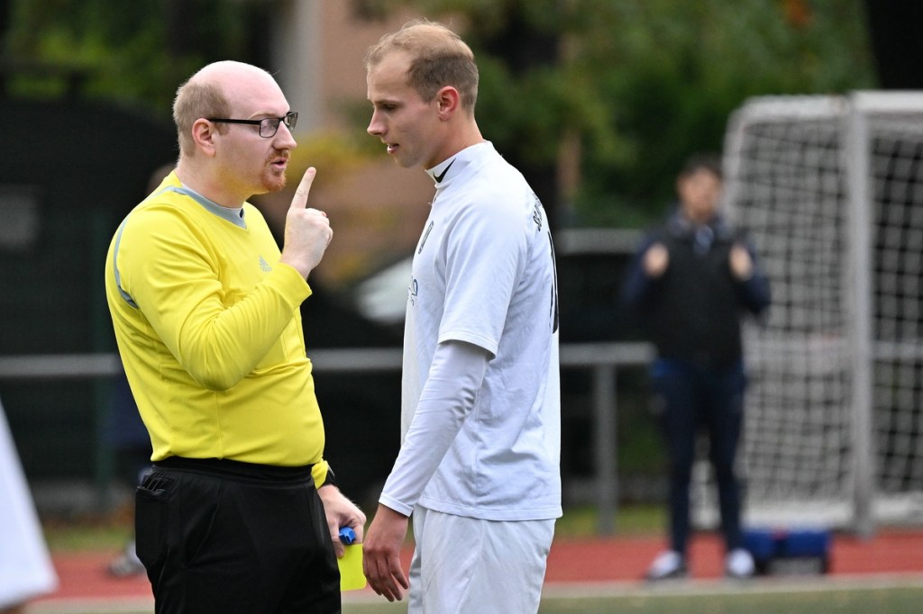 Schiedsrichter: Christopher Witte (Die Leistung des Referees war bei weitem nicht so schlecht, wie es von beiden Teams gesehen wurde. Die etwas kleinlich angesetzte Linie in der Vergabe persönlicher Strafen zog er konsequent durch und dies erkennbar von Anfang an. Somit hätte jeder Beteiligte wissen müssen, worauf er sich bei der eigenen Gratwanderung einlässt. Positiv muss man bewerten, dass er immer präsent war und somit das ein oder andere emotionale Köcheln im Ansatz erstickte. Trotzdem muss sich der Schiedsrichter die Kritik gefallen lassen, in seinem Handlungsraum, auch in der Zweikampfbewertung, zu enge Grenzen gesetzt zu haben. Für eine Partie mit zu erwartender Qualität und Mannschaften, die mehr Fußball spielen wollen, als zu kämpfen, wäre eine etwas längere Leine von Vorteil gewesen, welche man im Bedarfsfall wieder hätte einrollen können.