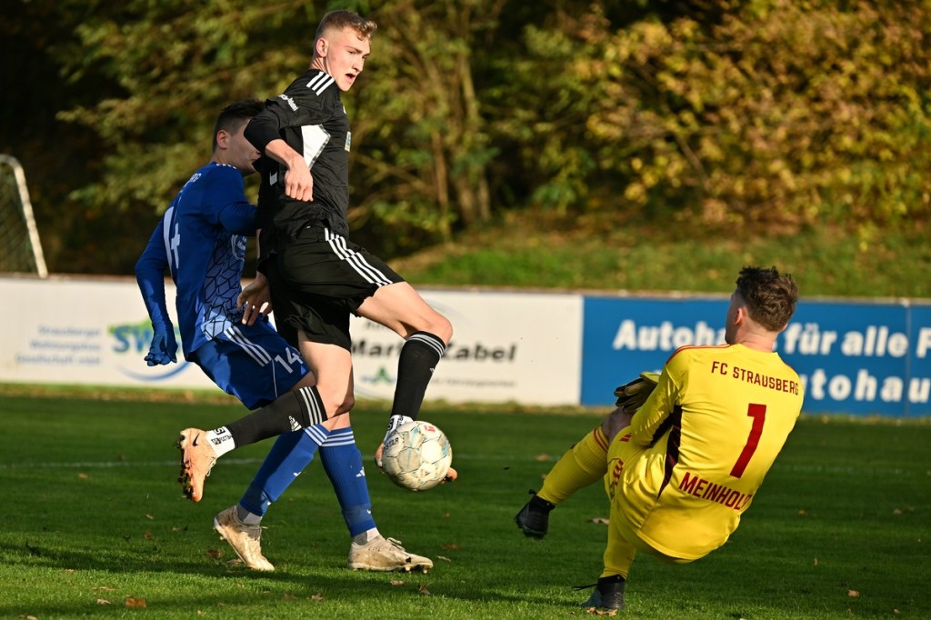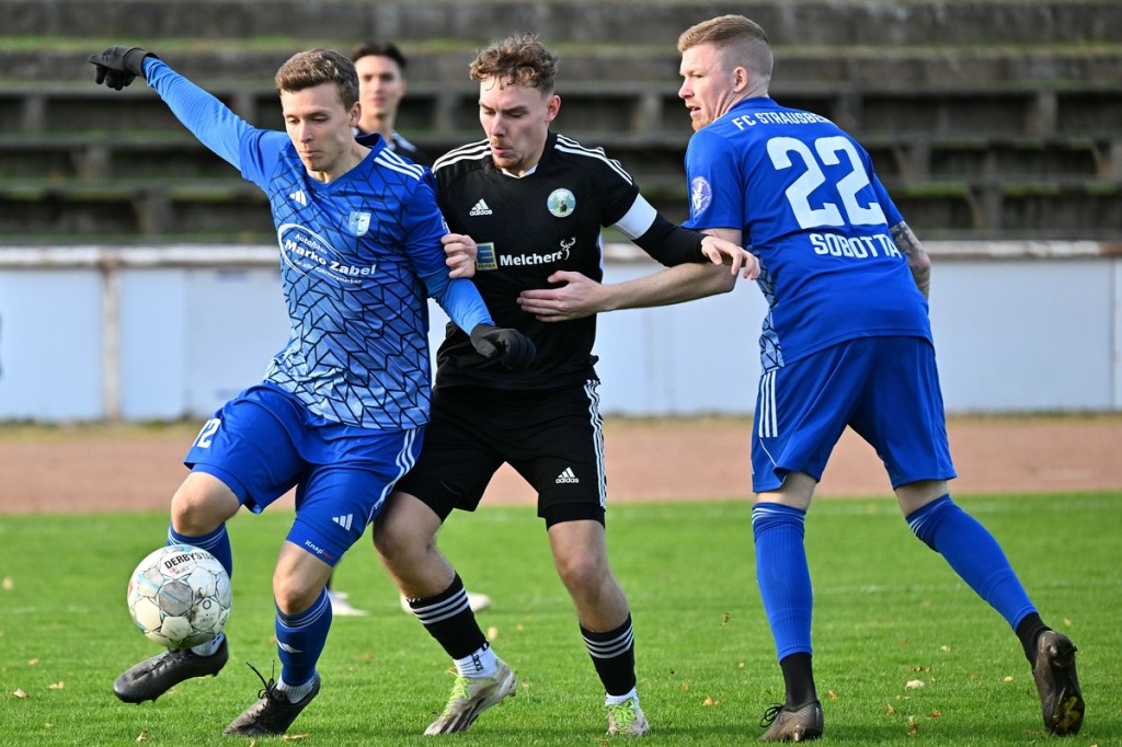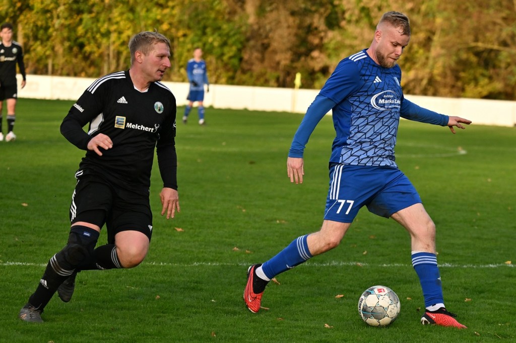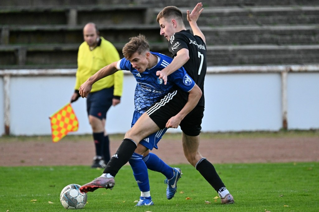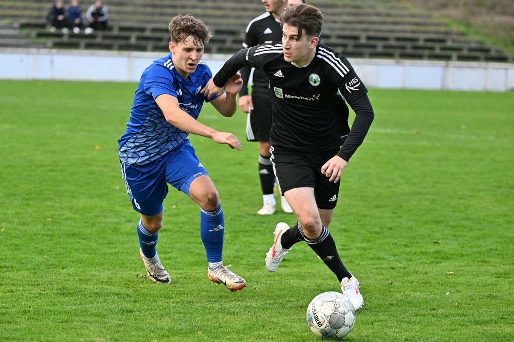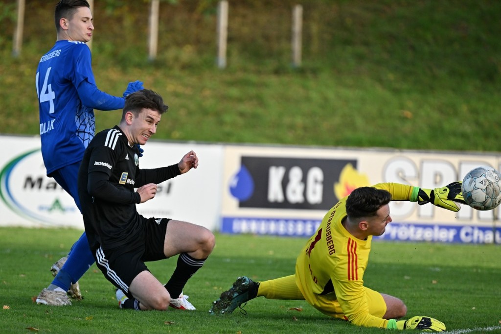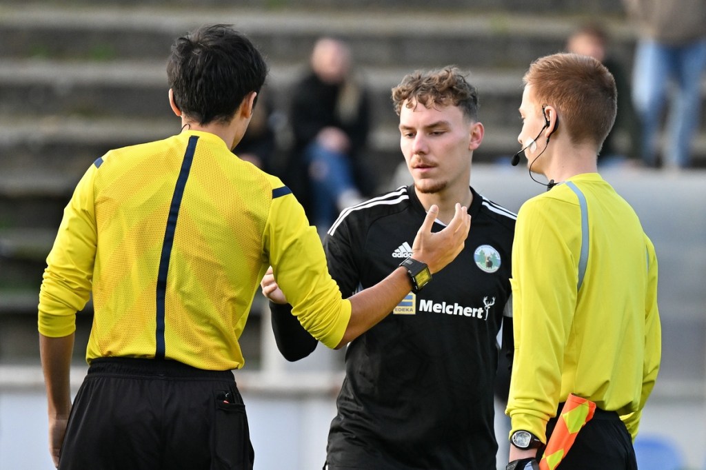 Dabei begann das Spiel hoffnungsvoll intensiv und baute eine gewisse Grundspannung auf. Die Zweikämpfe hatten Rasse und Galligkeit, auch die qualitativen Ansätze im Umgang mit der Kugel ihren Reiz. Mehr wurde aber erst einmal nicht geboten. Unterschiede gab es nur im Vortragen der Angriffe. Joachimsthal wählte die spielerische Nuance und Strausberg über den Verteiler Nico Paepke, der es mit langen Bällen versuchte. Den ersten FC-Torschuss setzte Sven Müller ab. Sein Versuch aus spitzem Winkel brachte schlussendlich aber kaum Gefahr (8.). Ganz anders die Möglichkeit für die Gäste durch Lucas Schmidt, der nach einem Durchstecker im Strafraum halblinks vor Strausbergs Keeper Julius Meinhold auftauchte. Meinhold roch den Braten, verkürzte den Winkel und reagierte hervorragend (14.). Die Partie tauchte nun in eine Phase ein, in der der ein oder andere Zweikampf auf Kante gestrickt wurde und ein konsequenteres Eingreifen von Schiedsrichter Christoph Freytag erfordert hätte. Doch der ließ einiges zu sehr laufen und zog sich verbale Reaktionen zu, die der Partie jedoch zusätzlich einen emotionalen Touch beibrachten. In der Gemengelage, gerade im Bereich der Machtverhältnisse, hatten die Schorfheider sich eine Nasenspitze vor die Heimtruppe gekämpft, was sich aber kaum in Zwingendes ummünzte. In der 22. Minute kam Strausberg zu einer Doppelchance. Erst war es Roger Sobotta, der per Freistoß-Geschoss Gäste-Torsteher Daniel Meinert prüfte. Dann kam Abwehrchef Nico Paepke per Kopfball zur Möglichkeit, doch sein Abschluss war zu ungenau und landete im Aus. Schorfheides Julius Schneider wurde drei Minuten später zum Nutznießer eines FC-Ballverlustes im Mittelfeld. Er zögerte aber zu lange und konnte sich schon ärgern, dass Nico Paepke mit all seiner Routine die Kugel kurz vor dem Abschluss weggrätschte. Die Begegnung wurde das „Wilde“ einfach nicht los. Schorfheide hatte die besseren Möglichkeiten, musste aber weiterhin mit der fehlenden Konsequenz hadern. Auch die nächste Gästemöglichkeit durch Julius Schneider, der sich gut durchgesetzt hatte, landete per Schüsschen in den Armen von Meinhold (35.). Strausberg hingegen stand der fehlenden Entschlossenheit nichts nach. Sporadische Angriffe erstickten schon im Spielaufbau an Ungenauigkeiten, was es den Gästen sehr leicht machte, in die erfolgreiche Verteidigung zu kommen. Auch der Schuss vom Mannschaftskapitän Sven Müller aus gut achtzehn Metern ließ den Schützen die Haare raufen, weil er gut positioniert den Ball recht schwach weit neben den Kasten setzte (42.).