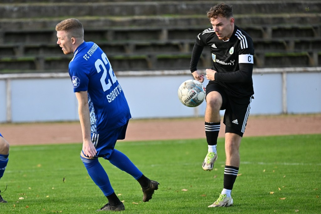 „Ich habe den Jungs in der Halbzeit schon gesagt, dass der erste Durchgang weder Fisch noch Fleisch war. Wir wollten dann aber erst einmal schauen, wie Strausberg aus der Kabine kommen würde“, erzählte Gästetrainer Andy Lindt in Nachgespräch. Doch die Spiel-Arithmetik änderte sich erst einmal nicht. Lucas Schmidt setzte in 49. Minute im Mittelfeld zum Solo an, tankte sich bis zur Strausberger Strafraumgrenze durch, schaffte es aber nicht seinen sehenswerten Lauf mit gleichem Prädikat aufs Tor zu bringen. Sein Schuss misslang und landete weit neben dem Tor. Ein entscheidender Stellungsfehler im Zweikampf der Schorfheider auf der rechten Angriffsseite der Hausherren, bei dem sich Tim Immo Baum recht locker zur Flanke vorbereiten konnte, führte zum 1:0. Baums Eingabe erreichte den frei eingelaufenen Lucas Radtke, der kurzen Prozess machte und unhaltbar einnetzte (52.). Die Gäste schienen schon konstatiert und präsentierten sich in der Folge etwas wackelig. Einen Bärendienst erwies FC-Mannschaftskapitän Sven Müller seiner eigenen Truppe, als er bereits verwarnt, eine Freistoß-Ausführung unsportlich verhinderte und folgerichtig per Ampelkarte zum Duschen geschickt wurde (59.). Doch von der nummerischen Gäste-Überlegenheit war erst einmal nichts zu spüren. Doch mit dem 1:1, erzielt durch Sebastian Temma, nahm die Begegnung die erhoffte Fahrt auf. Lucas Schmidt hatte den Treffer unnachahmlich über die rechte Grundline kommend, vorbereitet, dabei Strausbergs Abwehr zu Statisten degradiert und passgenau auf Temma zurückgelegt (66.). Die Partie zog nun merklich an. Beide Teams wollten mehr als eine Punkteteilung. Die Möglichkeiten für weitere Tore waren durchaus vorhanden. Tim Immo Baum und seine „Piecke“ konnte Meinert reaktionsschnell mit einer Hand abwehren (72.) und auf der Gegenseite scheiterte Julis Schneider ebenfalls aussichtsreich an Strausbergs Keeper Meinhold (74.). Schlussendlich bauten die Kräfte zusehends ab, was die Chancenauswertung qualitativ ausbremste. Den Schlusspunkt der vergebenen Möglichkeiten hatte der eingewechselte Schorfheider Moritz Wille für sich gebucht. Einer Freistoßflanke aus dem rechten Halbfeld brauchte er nur die passende Richtung zu geben, was ihm gut positioniert schlussendlich nicht gelang (90.+3).