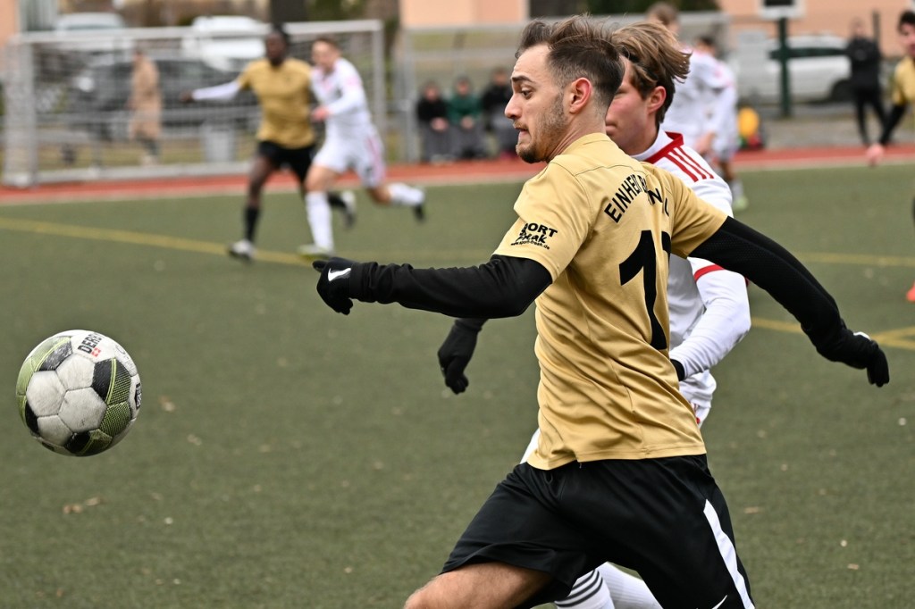 Die Begegnung brauchte eine gute Viertelstunde, um irgendwie in die Puschen zu kommen. Ein Klassenunterschied war in der Anfangsphase nicht auszumachen, zu sehr waren beide Teams damit beschäftigt, strukturelle Unebenheiten aus dem System zu drängen. Doch mit zunehmender Dauer schob sich der Brandenburgligist immer mehr in die Ebene der Spielkontrolleure. Bernau erarbeitete gerade im Mittelfeld mit wacher Galligkeit und gutem Zweikampfverhalten das Oberwasser, was es brauchte, um den Gästen den Schneid abzukaufen. Ludwigsfelde machte aber auch den Fehler, dass man im Aufbau zu statisch und lethargisch agierte und nur auf lange Bälle und Konter setzte. Chancen blieben auf beiden Seiten Mangelware. In der 25. Minute machte Einheit dann das erste Mal in Sachen konkretem Abschluss von sich reden. Einen Chipball in die rechte Strafraumhälfte der Gäste erlief Artur Sajfutdinov, dem der Schuss dann aber etwas abrutschte und knapp ins Aus ging. Bernau blieb weiter im Vorwärtsgang, erarbeitete sich ein ums andere Mal im Ansatz sehr gute Möglichkeiten, blieb aber auf der Zielgeraden im Abschluss einfach zu blass. Ludwigsfelde hingegen glänzte nur, wenn es mal schnell ging. Über die linke Seite kommend, landete der Ball bei Yasin Dag. Doch auch sein Geschoss aus vielversprechender halblinker Strafraumposition verfehlte den Kasten um einen knappen Meter (34.). Die 42. Minute war angebrochen als Artur Sajfutdinov über die rechte Seite in den FC-Strafraum eindrang. Ein nicht zu überhörendes Klappern zweier Fußballschuhe und dem daraus folgenden zu Fall bringen, zwang Schiedsrichter Tobias Behm konsequenterweise auf den Elfmeterpunkt zu zeigen. Enis Hot übernahm die Verantwortung und ließ Lucas Lindner im Gästekasten per Verladung keine Abwehrchance.