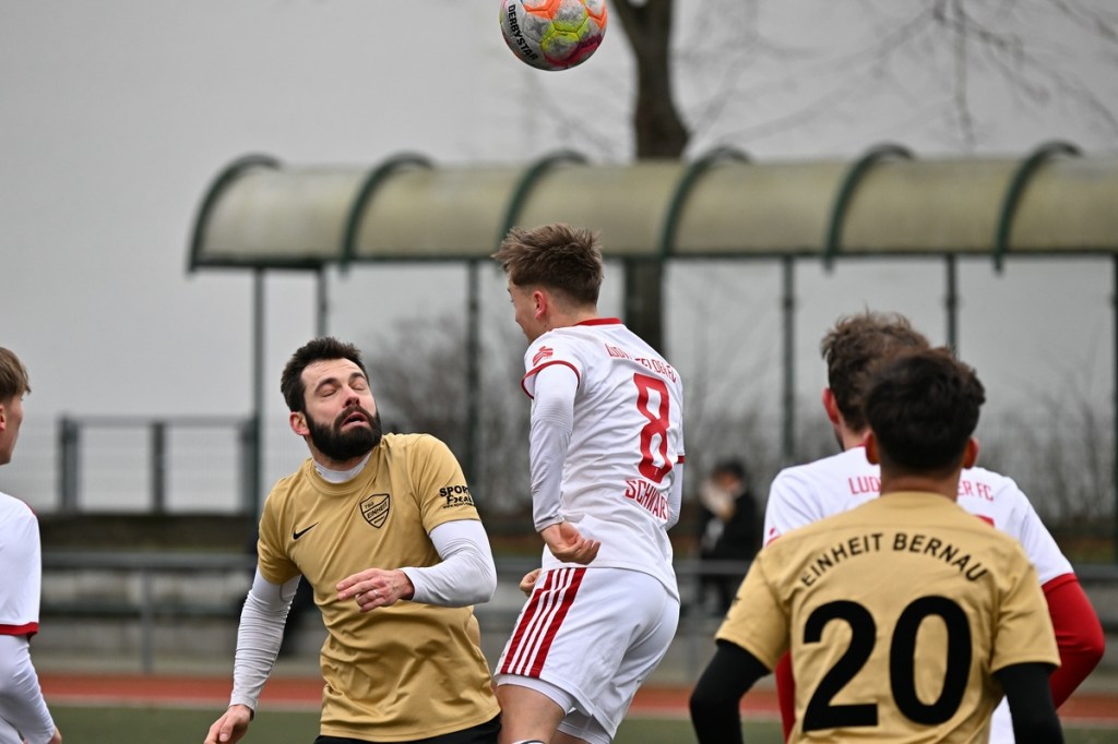 Mit der verdienten Führung der Hausherren ging es in den zweiten Durchgang. Der überschaubare Auftritt der Gäste hatte erst einmal Bestand. Ein Konter, den Ludwigsfelde in der 51. Minute fuhr, wurde irgendwie zur Initialzündung. Der Diagonalball, geschlagen von Joe Kodonu Williams von der linken Seite auf den langen Pfosten, fand seinen Adressaten in Lucas Steinert. Steinert war in Nahdistanz per Kopf zur Stelle, wollte es dann wohl zu genau machen und traf dabei nur die Querlatte. Keine sechzig Sekunden später brannte es im Einheit Strafraum wieder lichterloh. Yasin Dag hatte von der linken Grundlinie halbhoch in den Fünfer geflankt. Doch das reaktionsschnelle Wegschnappen der Kugel durch TSG-Keeper Steve Jarling entschärfte die sich anbahnende knifflige Situation. Die Partie zeigte sich in der Folge auf Wettkampfniveau. Rassige Zweikämpfe im Mittelfeld bestimmten die Szenerie. Maximilian Walter wurde Nutznießer eines gut getimten Anspiels hinter die Gästeabwehr und ärgerte sich im Nachgang schon sehr, dass aus seinem Abschluss nur ein Schüsschen wurde (60.). Praktisch im Gegenzug und in Kontermanier hatte Ludwigsfelde in Persona Alexander Eirich den Ausgleich auf den Schlappen. Doch die fast hundertprozentige Möglichkeit setzte er schon recht kläglich über das Quergebälk. Der Druck auf die Heimtruppe wurde zunehmend größer. Zwar tauchte Artur Sajfutdinov noch einmal im FC-Strafraum auf, doch sein Schuss war zu schwach und leichte Beute für Lucas Lindner (64.). Ein unnötiger Ballverlust im Mittelfeld leitete die nächste gute Ludwigsfelder Chance ein. Der Schlenzer, den Yasin Dag ansetzte, um an Steve Jarling vorbeizukommen, war dann aber abgerutscht und passierte die Torauslinie knapp neben dem Kasten (66.). Eine Erkenntnis stand nun im Vordergrund: Ludwigsfelde mit Geschwindigkeit im Vorwärtsgang brachte große Gefährlichkeit. In der 73. Minute wurde dieser Fakt doppelt untermauert. Der erste Versuch blieb in der vielbeinigen Heimabwehr hängen. Beim zweiten Bestreben, Kaloyan Atanasov hatte abgezogen, war Jarling sehenswert zur Stelle. Der Oberligist ließ nicht locker. Leon Schulz bekam die Kugel in den Lauf durchgesteckt und hatte Pech, dass Steve Jarling herauslaufend ihm die Kugel förmlich von der Piecke schnappte (75.). Jarling rückte immer mehr in den Fokus. Er war auch zur Stelle, als Alexander Eirich von der rechten Fünferkante flach einlochen wollte (80.) und fischte in der Folge einige gefährliche Flanken herunter. Gästetrainer Thorsten Beck musste Haare raufend zu sehen, wie seine Schützlinge es nicht schafften, wenigstens den Ausgleich zu erzielen. Den Höhepunkt der Chancen-Arie gab es in der 85. Minute. Erst wurde Jarling geprüft und der Nachschuss aus sechs Metern durch Martin Kardjilov in den Bernauer Himmel gesetzt. So endete das Testspiel für die Heimtruppe recht schmeichelhaft. Den Grund für die Niederlage müssen die Gäste aber in den eigenen Reihen suchen. Aber wie das so bei Testspielen immer ist, das Ergebnis muss hinten anstehen.