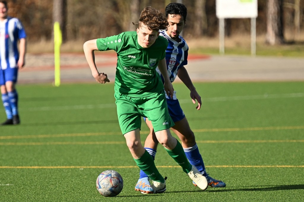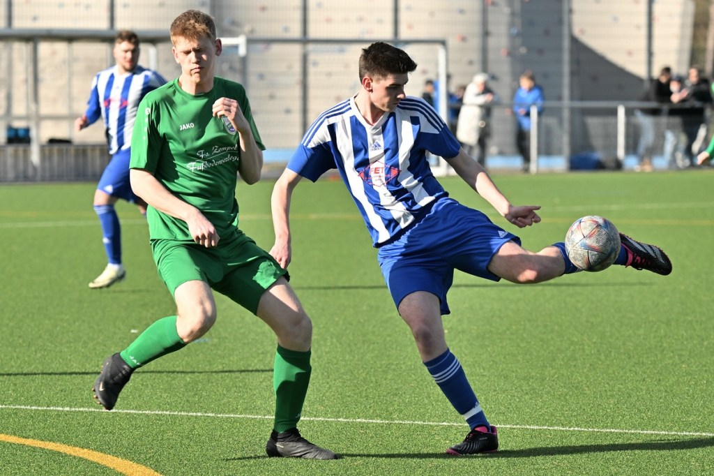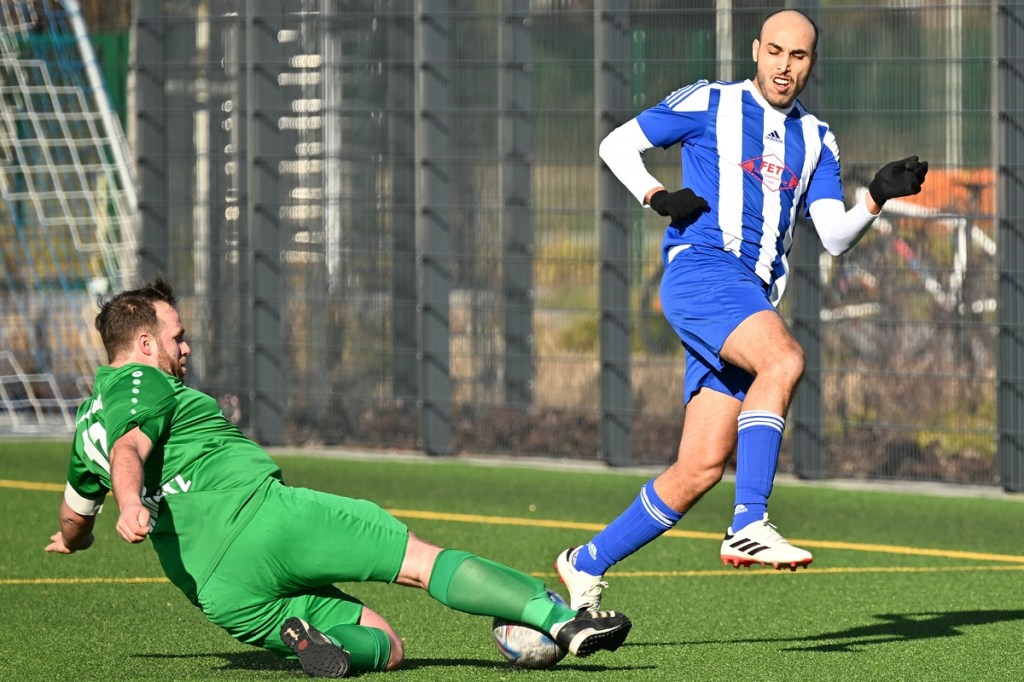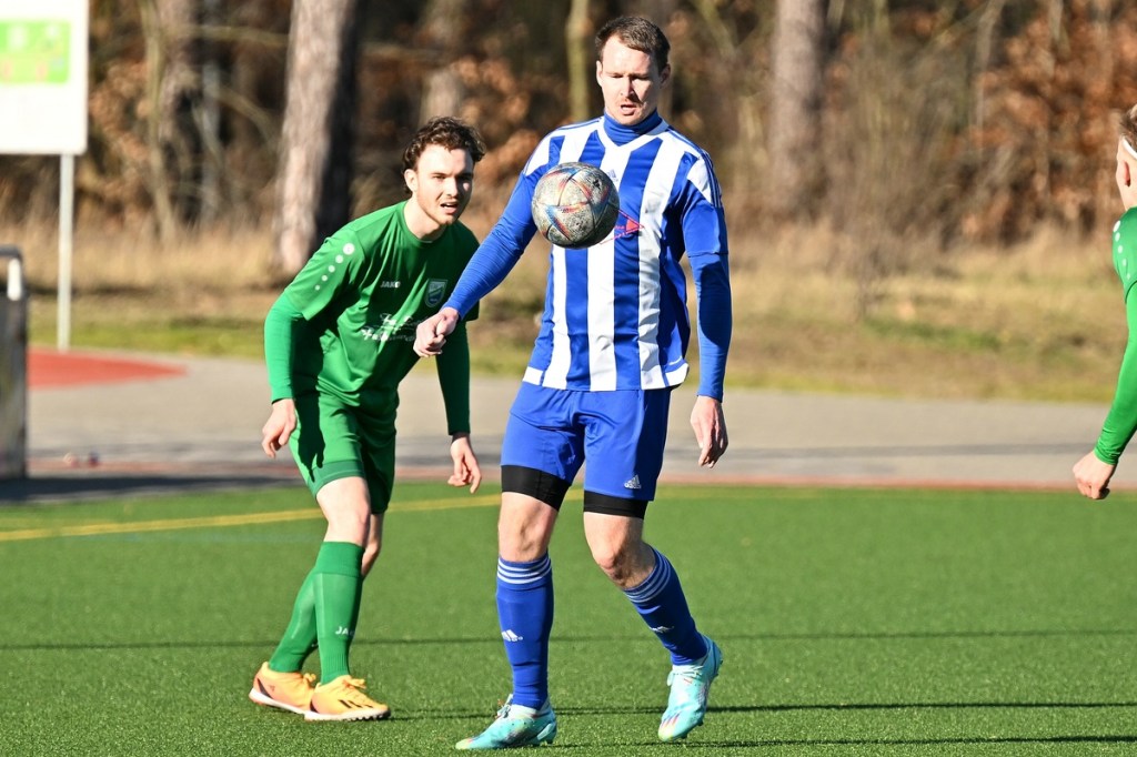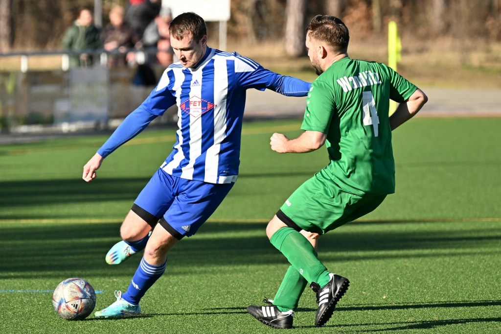 Dabei begann die Partie auf Augenhöhe mit dem ersten Rauchzeichen der Hausherren. Maximilian Voigt hatte nach einem Eckball aus spitzem Winkel Eintracht Torsteher Michael Lehmann geprüft (4.). Keine sechzig Sekunden später klingelte es zum ersten Mal im ESC-Kasten. Die lapidare Spieleröffnung durch Patrick Schröter bestrafte der Landesklassen erfahrene Roman Schmidt, als er im Zweikampf den Ball eroberte und im Nachgang unter die Querlatte nagelte. In Schockstarre verfiel die Sportclub-Truppe keineswegs, sondern kam in der 7. Minute durch Hamid Amachnoug zum nächsten Abschluss, der dann aber recht klar ins Aus ging. Doch damit endete der Heimauftritt. Wandlitz übernahm immer mehr die Regie. Allein schon in der Körpersprache war den Gästen die Brisanz der Partie anzumerken. Hinzu fügte sich eine gewisse Leichtigkeit im Vorwärtsgang, was dann auch zum nächsten Treffer führte. Kombinations-Fußball, begleitet von zuschauenden Eberswaldern, endete mit einem Querpass von Roman Schmidt auf den mitgelaufenen Kollegen Jan Ole Grapentin, der im Endeffekt nur noch den Fuß hinhalten brauchte (11.). Für die Hausherren begann nun eine Leidenszeit, weil die Tür zum Spiel nun endgültig zuschlug. Wandlitz hingegen genoss alle Freiheiten, musste sich aber den Vorwurf machen lassen, dies einfach nicht konsequent genutzt zu haben. Unter dem Antreiber Roman Schmidt entwickelten sich einige gute Möglichkeiten. Doch Halbherzigkeit, Verspieltheit, anstatt mal aus der zweiten Reihe abzuziehen, und einige Ungenauigkeiten verhinderten eine klare Halbzeitführung.