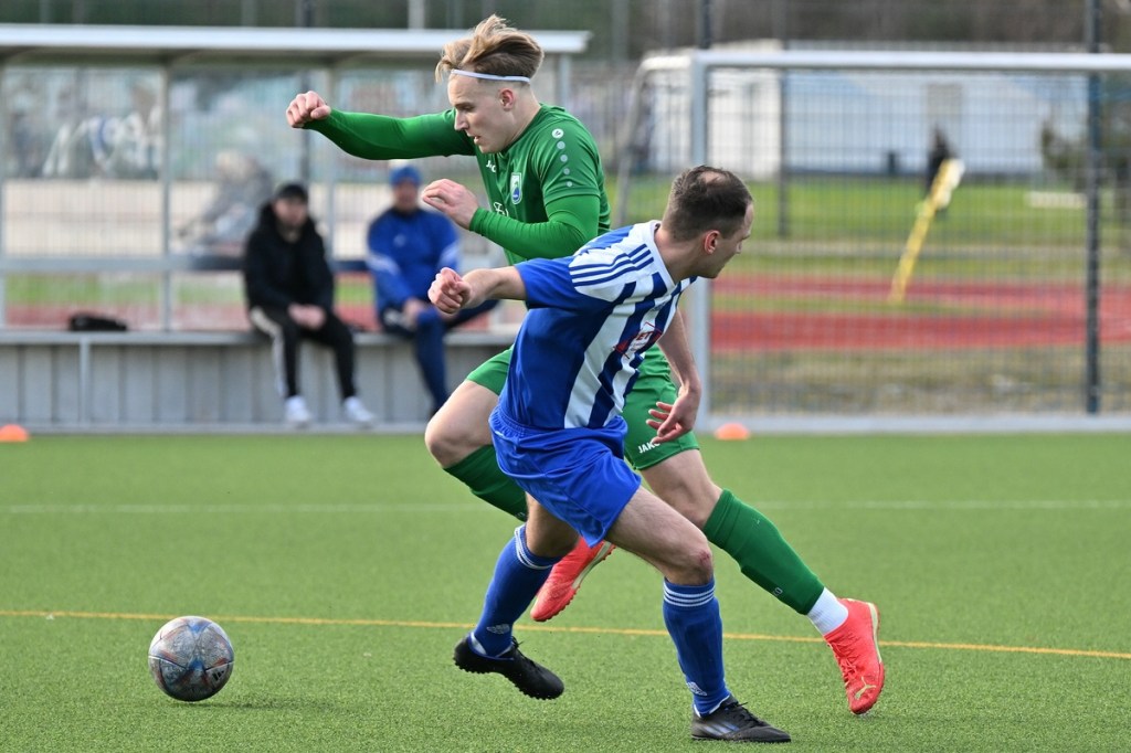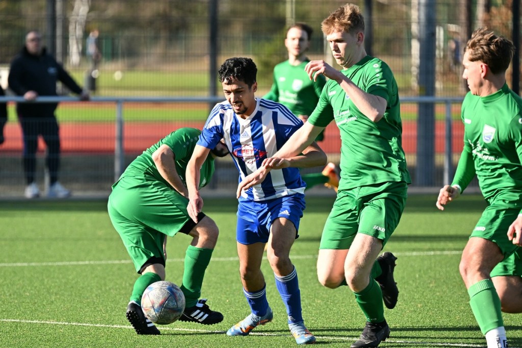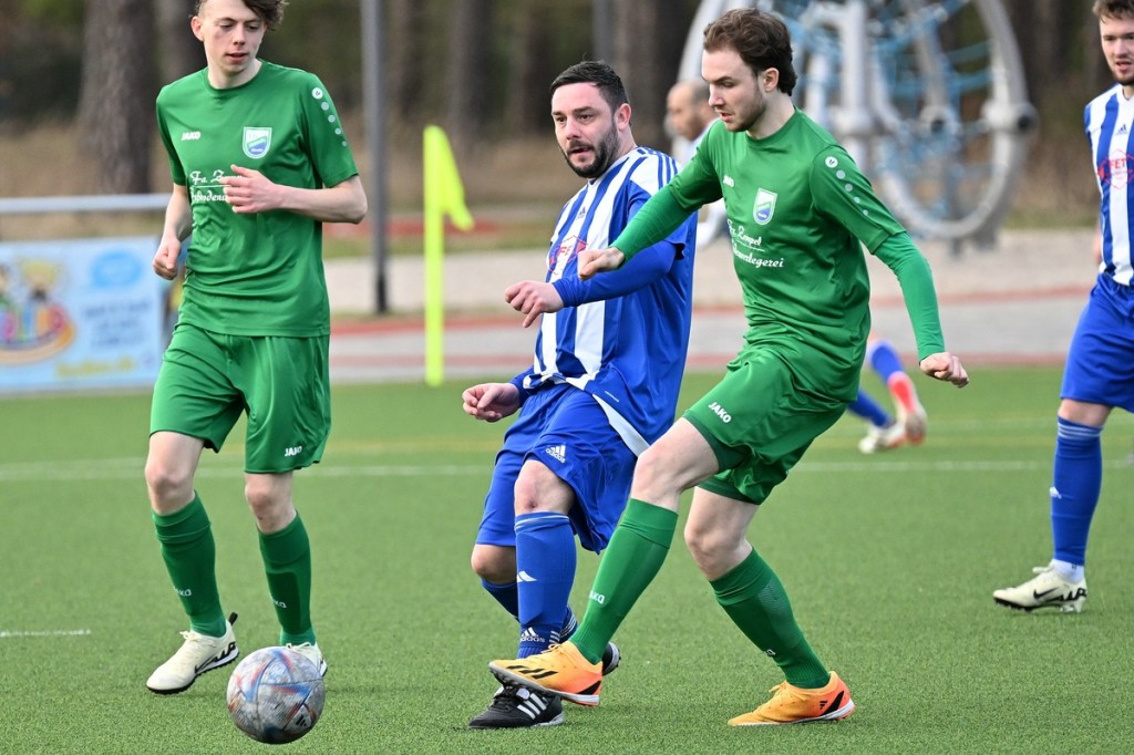 Schiedsrichter: Thomas Burdajewicz (Der Referee lebt schon von seiner jahrelang aufgebauten Erfahrung. Er ließ die Partie zu größtem Teil an der langen Leine, was in vielen Phasen passte, aber auch Zeiten erlebte, wo ein Pfiff mehr zur Gemüter-Beruhigung geführt hätte. Wünschenswert wäre ein größerer eigener Aktionsradius. Denn alles aus der Ferne zu händeln, kann schon mal in die falsche Richtung gehen. In der Schiri-Sprache redet man in diesem Fall von Tatort-Präsenz.)