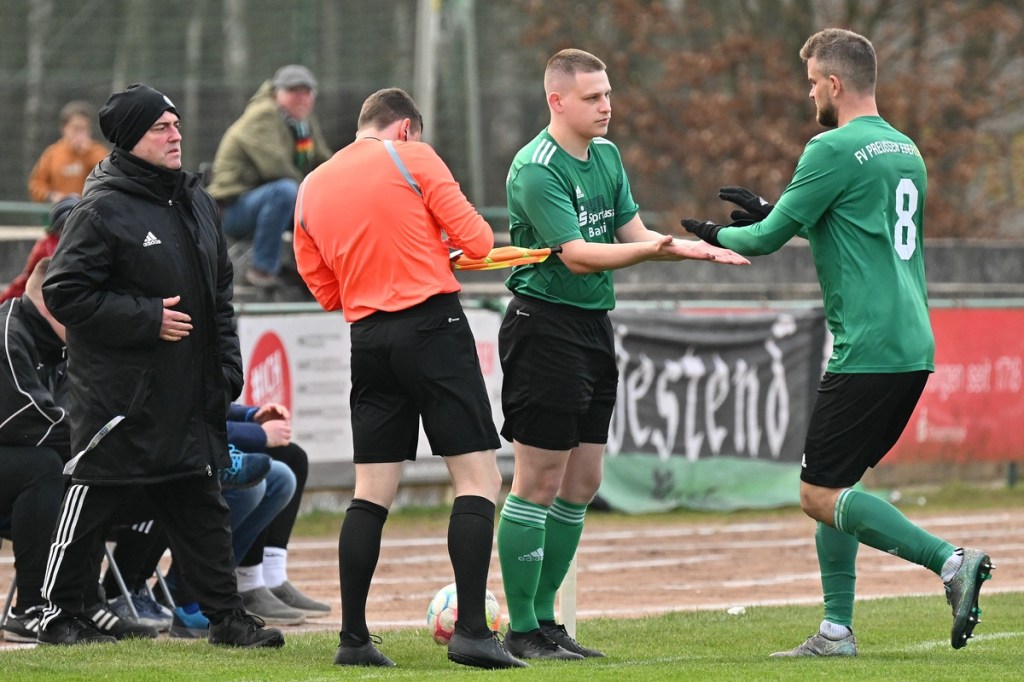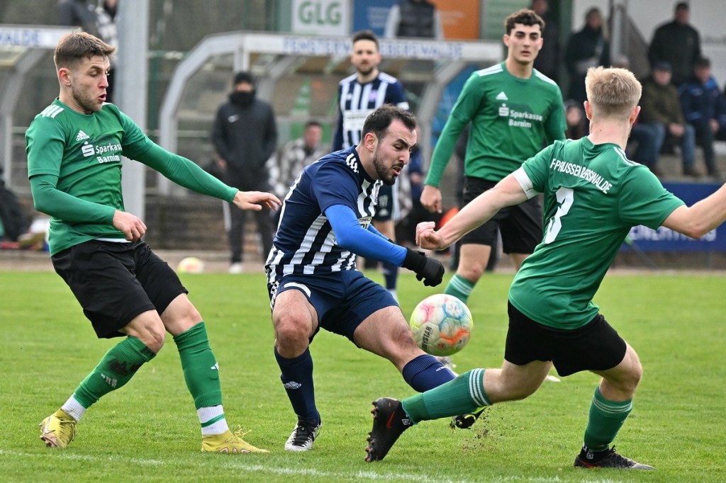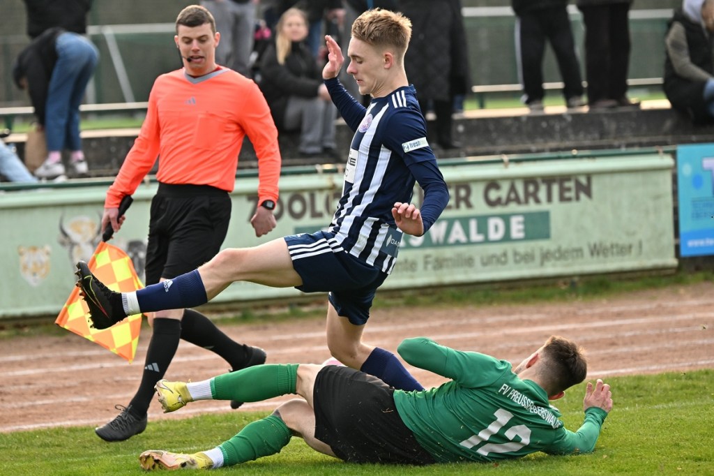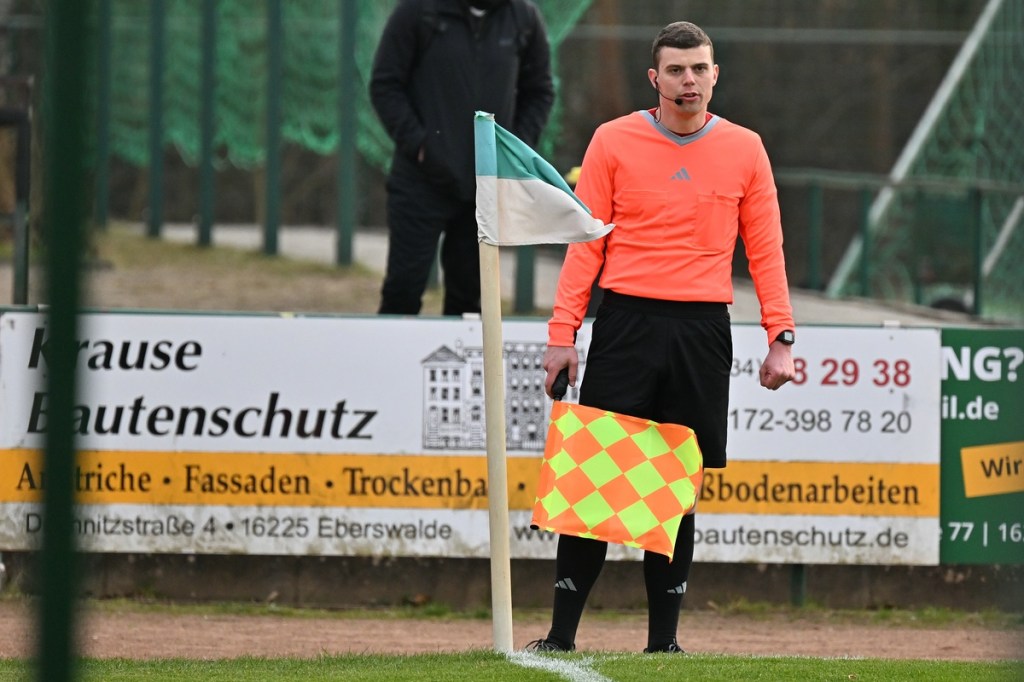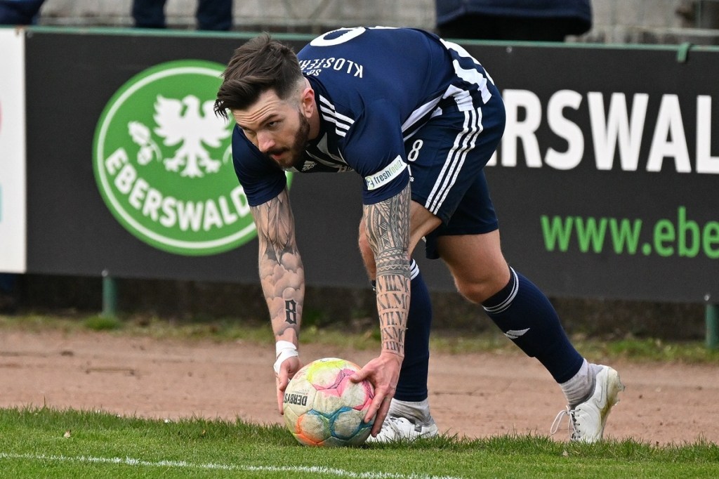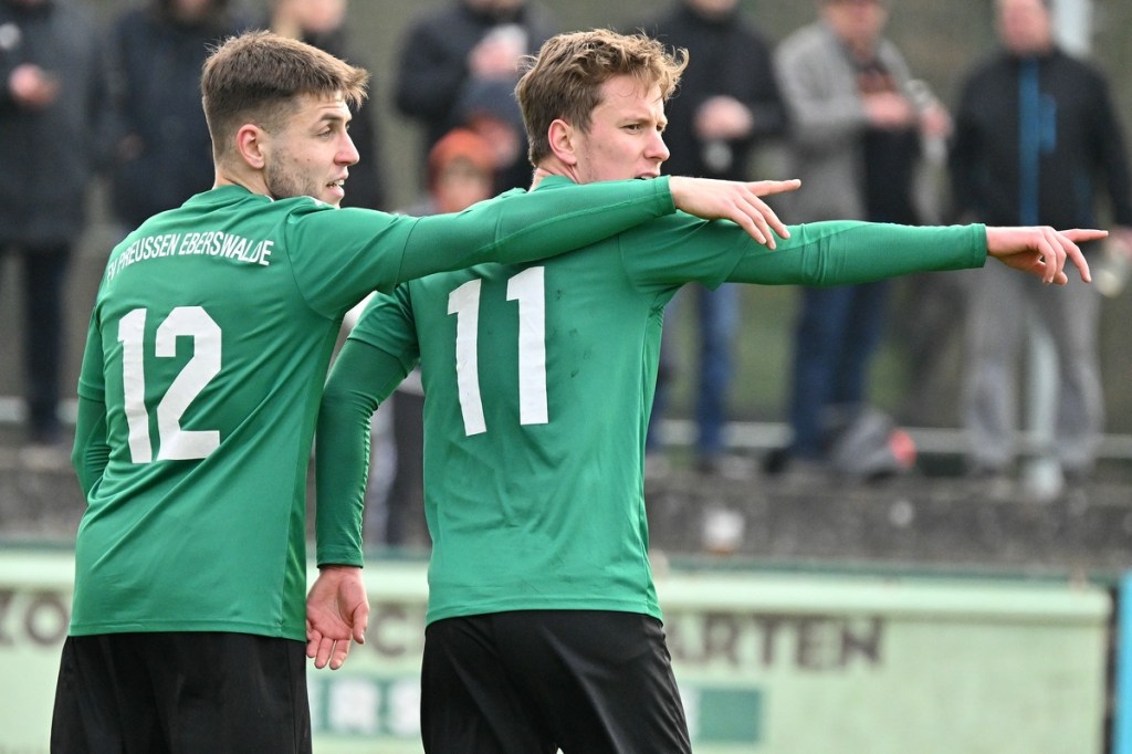 Dabei begann die Partie mit den Gästen als spielbestimmend und dem etwas griffigeren Team. Preussen hingegen, personell arg gebeutelt, versuchte schon am Spiel teilzunehmen und schaffte es auch, die Anfangsviertelstunde im Ganzen etwas offenzuhalten. Trotzdem schwebte über dem Eberswalder Auftritt Nervosität und Verunsicherung. Gerade im Spielaufbau wurde die Kugel zu schnell wieder hergeben bzw. landeten einige Eröffnungsbälle ohne Not im Aus. Klosterfelde hatte dann in der 10. Minute ein Mittel gefunden, um den Hausherren die Grenzen aufzuzeigen. Tempovorstoß über links außen bis zur Grundlinie, praktiziert von Georg Machut, mit folgender flacher Eingabe. Dort war Michel Sobek eingelaufen und beim Versuch abzuschließen, mit Preussens Keeper Eric Kretke zusammengestoßen (10.). Kretke musste behandelt werden und konnte erst einmal weitermachen. Doch so richtig erholte sich der Schlussmann nicht mehr und musste durch Leon Fiedler ersetzt werden (22.). Die Begegnung war nichts für Fußball-Ästheten, zur sehr regierte die Zerfahrenheit, weil auch bei den Gästen einiges an Fehlabspielen in der Offenbarung standen. Einer der seltenen Angriffe der Hausherren hätte das 1:0 bedeuten müssen. Christian Staatz hatte sich über rechts bis zur Grundlinie durchgearbeitet und auf seinen Mannschaftskapitän, Adrian Schedlinski, zurückgepasst. Der konnte sich die Kugel an der Strafraumgrenze in aller Ruhe zurechtlegen und auch überlegen, wo er den Ball unterbringen könnte. Schlussendlich nagelte er das Spielgerät, schon recht kläglich, einen Meter über die Querlatte ins Aus (33.). Da zeigten sich die Gäste, in Persona Georg Machut, praktisch im Gegenzug zielsicherer und vor allem abgeklärter. Mit seinem flachen Schuss am heraus eilenden Ersatzkeeper Leon Fiedler vorbei erzielte er mit dem 0:1 das Tor des Tages (34.). „Ich mache Leon keinen Vorwurf, dass er vielleicht nicht hätte herauskommen sollen. Er wurde aber ins kalte Wasser geworfen, hatte keine Möglichkeit sich richtig warmzumachen“, stellte sich Preussen-Trainer Torsten Maerz im Nachgespräch vor seinen Schützling. Klosterfelde blieb weiterhin in der Spielbestimmung und schaffte es in der Schlussviertelstunde des ersten Durchganges mächtig an einer höheren Halbzeitführung zu knabbern. „Wir müssen mit einer Drei-Tore-Führung in die Kabine gehen“, monierte Kevin Hetzel das magere Halbzeitergebnis und bezog sich dabei auf die guten Möglichkeiten durch Michel Sobek (38.) und durch Moritz Fedder (43.). Sobek scheiterte an Fiedler, der den Ball an den Pfosten lenkte und Fedder nahm zu genau Maß und blieb am Quergebälk hängen. In der Zwischenzeit hatte sich Preussen dann selbst noch personell reduziert. Ein geahndetes Foulspiel für die Eberswalder vor den Trainerbänken ließ Jakub Hilicki überreagieren und im Liegen versuchen nachzutreten. Die konsequente Quittung folgte mit dem Aussprechen des fälligen Feldverweises. Eine vollkommen unnötige Aktion mit dem oft genannten Bärendienst an seine Mannschaftskollegen (40.).