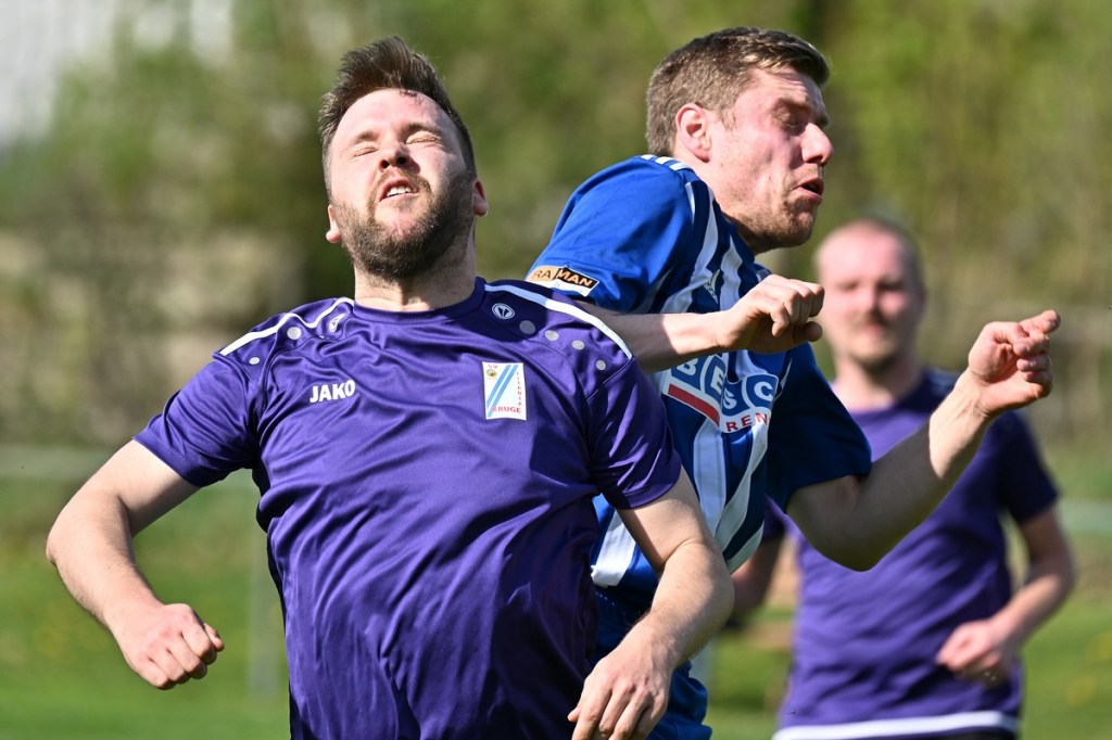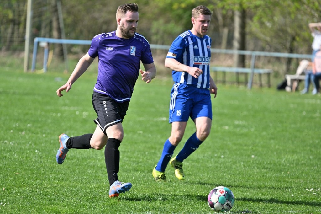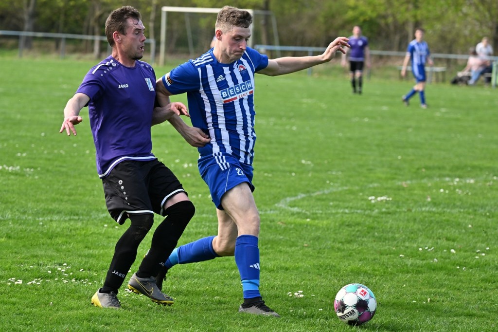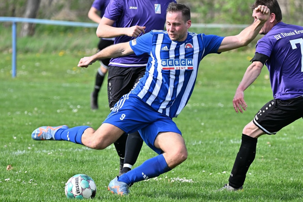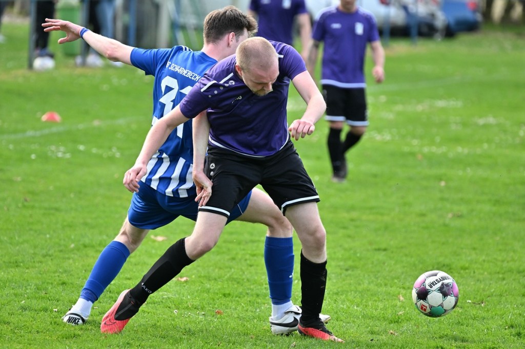Bei frühsommerlichen Temperaturen und einem leider doch recht schwer zu bespielenden Platz ließen es die Kontrahenten erst einmal ruhig angehen. Dabei war in den Anfangsminuten schon zu erahnen, dass die Partie zur schweren Kost werden könnte. Fehlpässe, hüben wie drüben, bestimmten die Szenerie, in der gerade die Hausherren besonders lethargisch wirkten und in vielen Aktionen die Schwanebecker einluden, den eigenen Vorwärtsgang anzukurbeln. Doch die Gäste wussten damit nicht viel anzufangen, weil man es auch gar nicht schaffte wenigstens Geschwindigkeit in die Offensive zu bekommen. So schleppte sich das Ganze durch die Anfangsphase, in der Kruge blass blieb und die Gäste ein paar Halbchancen aus der zweiten Reihe kreierten. In der 19. Minute trat dann das Wort „Effizienz“ in aller Munde, denn Kruge führte aus dem Nichts mit 1:0. Ein Angriff über rechte Seite mit folgender Flanke auf Oliver Reuss, der sich halblinks an der Strafraumgrenze vollkommen frei den Ball zurechtlegen konnte und dann flach ins lange untere Eck einlochte, stellte so ein wenig die Partie auf den Kopf. Schwanebeck war dieser Nackenschlag nicht anzumerken. Die SG intensivierte ihre Spielweise, doch erst einmal ohne zählbare Erfolge. Die Heimtruppe erwachte immer mehr und legte das Augenmerk nun verstärkt in die Abwehrarbeit. Trotzdem konnte die Hintermannschaft den verdienten Ausgleich nicht verhindern. Lapidares und inkonsequentes Agieren in puncto Ball aus der Gefahrenzone befördern, organisierte ein Abstauber-Tor durch Finn Kurkowski, der das abgewehrte Spielgerät konsequent und unhaltbar im Netz unterbrachte (29.). Die Gemengelage änderte sich in der Folge kaum. Schwanebeck tat zwar mehr für das Spiel, weiterhin aber ohne zu glänzen. Kruge versuchte sporadisch mit langen Bällen zu kontern, dies vielversprechend und leider auch Pech behaftet, weil Schiedsrichter Lothar Damrow in zwei Fällen doch recht eindeutig danebenlag und somit zumindest Torchancen verhinderte.