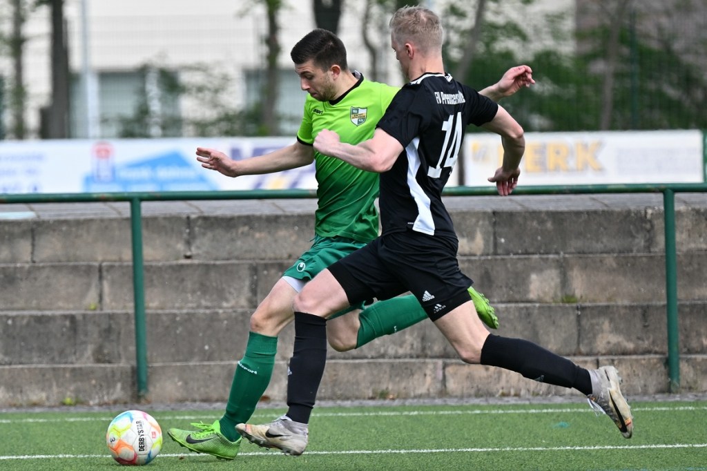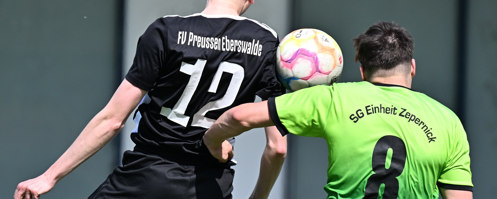 Auf dem kleinen Kunstrasen begann die Partie verhalten und auch taktisch geprägt. Zepernick hatte sich mit Kollegen der ersten Garnitur verstärkt. „Dies tun wir aber schon eine ganze Weile“, hatte Einheit Trainer Peter Strauß vor der Begegnung erklärt und damit so ein wenig die Spekulationen nach der Aufrüstung für das Spitzenspiel weggefegt. Doch viel war von der Verstärkung nicht zu sehen. Zu sehr regierten die Abwehrreihen. Spürbar war aber auch eine gewisse Nervosität, die auf beiden Seiten durch ungenaue Anspiele und Unkonzentriertheiten nach Balleroberungen sichtbar wurde. Eine sehenswerte Kombination über mehrere Stationen brachte die erste Preussen-Möglichkeit. Christian Schlegel schloss den Angriff schießend ab, doch die Zielgenauigkeit ließ noch zu wünschen übrig (6.). Es war für beide Vertretungen ein schwieriges Unterfangen und man brauchte schon Ideen, um die jeweilige engmaschige Abwehrreihe auszuhebeln. Der Versuch, den Einheit in der 8. Minute startete, war schon vielversprechend. Jonny Ratajczak hatte aus dem linken Halbfeld gefährlich geflankt, doch Maurice Platow kam einen Hauch zu spät, sodass der Ball unberührt im Aus landete. Zepernick kam immer besser in die Partie. Richtig knackig für die Hausherren wurde es in der 10. Minute. Jannik Atorf düpierte nach einem Einwurf seinen Eberswalder Gegenspieler und passte von der linken Grundlinie in den Rückraum. Niklas Bauschke bekam seinen Fuß dazwischen und verhinderte damit, dass die Kugel beim einschussbereiten Rodrigo De Jesus Mendes landete. Die Gäste knabberten an der Führung und konnten in der 18. Minute verdient jubeln. Stümperhaftes Agieren gegen den Mann und das Spielgerät begünstigten den Umgang mit dem Ball für Rodrigo De Jesus Mendes, der sich in aller Ruhe die Kugel zurechtlegen und vollenden konnte. In der Folge musste Preussen zweimal verletzungsbedingt wechseln, was nicht Gutes vermuten ließ. Doch der gezwungene personelle Austausch gestaltete sich in der Folge, gerade in der Offensive, sehr positiv. Zepernick verlor immer mehr die Kontrolle und musste schon das ein oder andere Mal zuschauen, wie die Heimtruppe mit schnellen und schnörkellosen Angriffen von sich reden machte. So war es Spieler-Trainer Sebastian Schmidt, der nach einem Einwurf aus der zweiten Reihe abzog und sein Ziel nur knapp verfehlte (21.). Der Konter, den Samer Babikir Adam Mohamad über die rechte Seite einleitete und damit die Gästeabwehr aushebelte, brachte Fadi Kammaz ins Eins-gegen-Eins-Duell mit Gäste-Torsteher Hendrik Peter Zimmer. Doch der Keeper wartete lange, reagierte dann mit Augenmerk und reaktionsschnell (35.). Auch der Kopfball durch Anton Jur nach einer Ecke in der gleichen Minute ließ den Brandfall bei den Gästen ausrufen. Doch wieder war Zimmer zur Stelle und konnte den Ball unter sich begraben. Preussen hatte sich den Ausgleich längst verdient. Kenny Ladewig organisierte dann die hundertprozentige Möglichkeit für seine Farben, nachdem er durch Toni Winnewisser regelwidrig im linken Strafraumbereich zu Fall gebracht wurde. Die Verantwortung für den fälligen Strafstoß übernahm Christian Schlegel, der dem Zepernicker Schlussmann keine Abwehrchance ließ (36.).