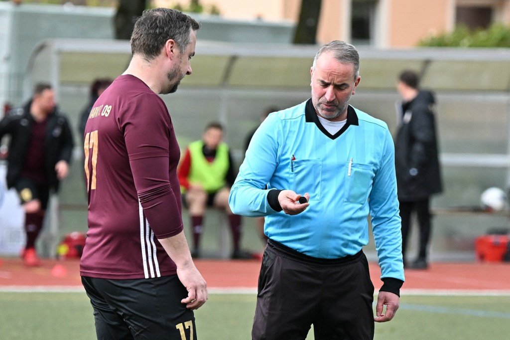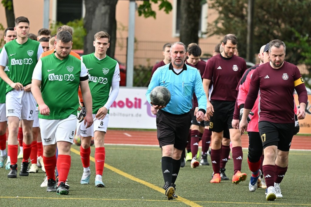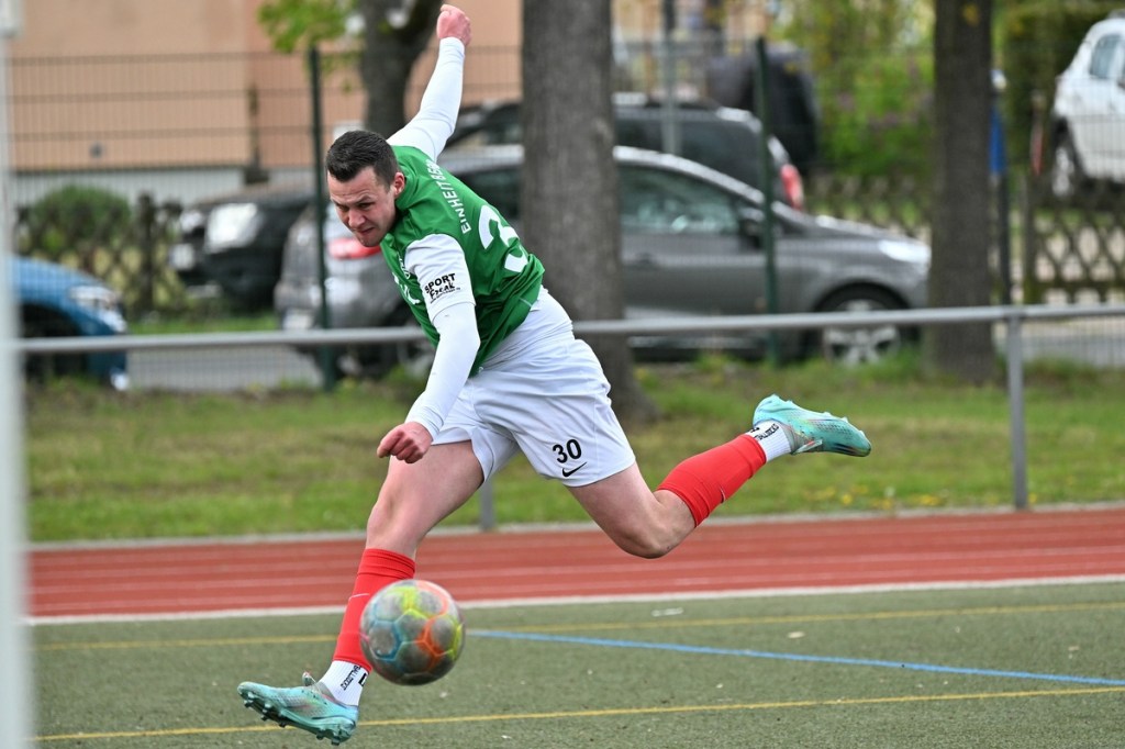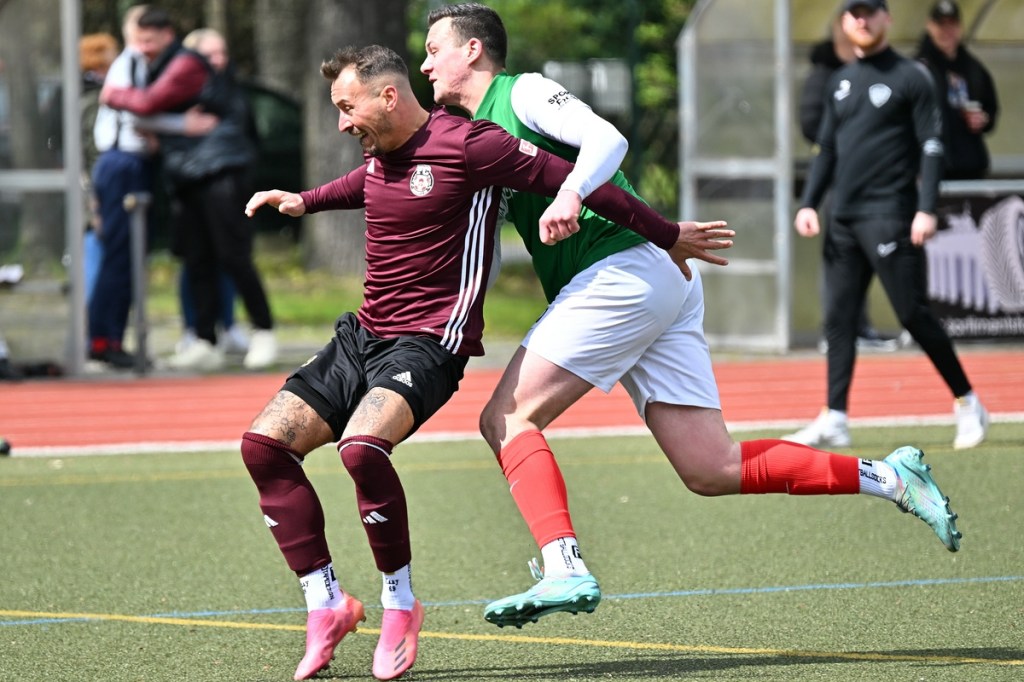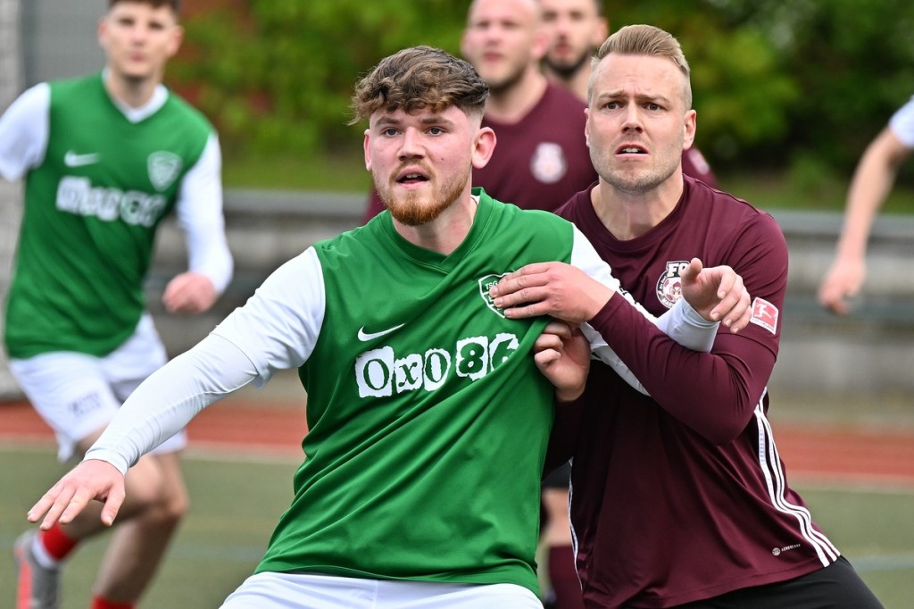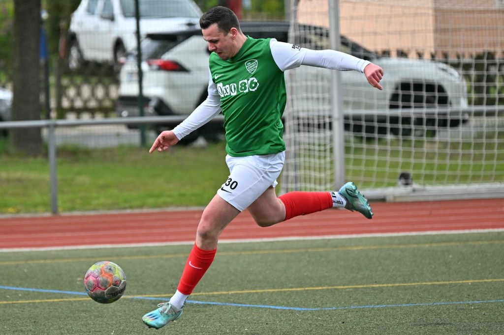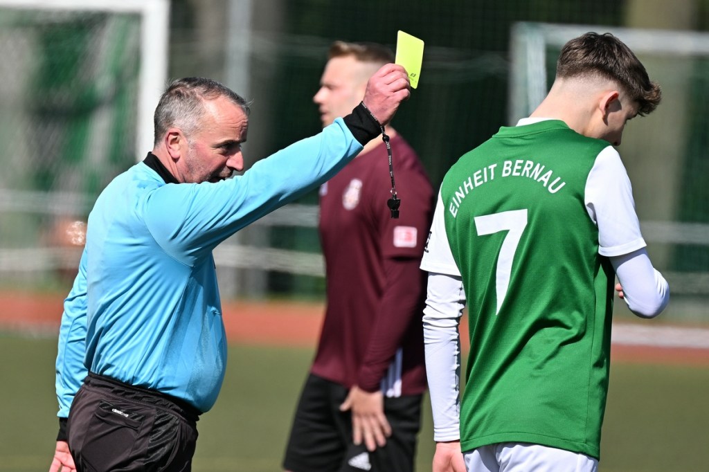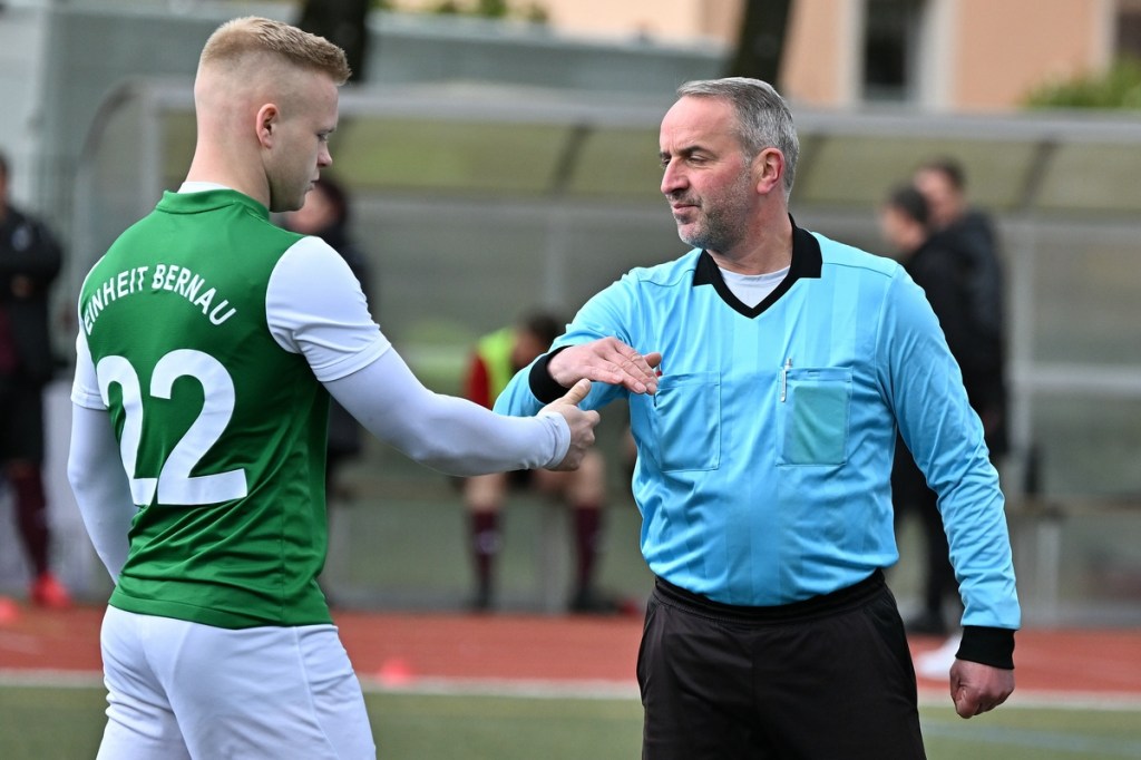Während die Anfangsminuten noch sehr unsortiert daher kamen, sorgte Gäste-Top-Torschütze Max Kühn mit seinem Geschoss ans Quergebälk dafür, dass ein „Hallo wach“ durch sämtliche Reihen ging (5.). Bernau hatte die langen Bälle für sich entdeckt und damit die erste gute Möglichkeit vorbereitet. Elias Schülke konnte die Kugel erlaufen und kam ins Eins-gegen-Eins-Duell mit FC-Torsteher Chris Koch, der reaktionsschnell den drohenden Einschlag verhinderte (9.). Die Begegnung tauchte zusehends in die Intensität ein und lebte von rassigen Zweikämpfen im Mittelfeld. Dabei machte Marwitz die etwas bessere Figur und kam in der 11. Minute zur nächsten Möglichkeit. Eine flache Eingabe rauschte durch den Heimfünfer, bei der Bernau Glück hatte, dass Kenneth Schlecht am langen Pfosten einen Wimpernschlag zu spät kam (11.). Die Gäste kratzten an der Führung, allein schon untermauert durch den nächsten Aluminiumtreffer durch Max Kühn (13.). So ein wenig verflachte die Partie, zumindest in der Strafraumpräsenz. In der 23. Minute war es dann doch passiert, der FC hatte das 0:1 erzielt. Dabei zeigte sich Robert Dietrich recht abgezockt, als er ansehnlich die Kugel serviert bekam und Heim-Schlussmann Joel Kilian Gap per Heber überwand. Keine sechzig Sekunden später roch es dann schon stark nach dem zweiten Marwitzer Treffer. Joel Waßmuth hatte sich den Ball erkämpft und gut positioniert abgezogen. Doch Bernaus Defensive bekam noch einen Fuß dazwischen und verhinderte damit den drohenden zweiten Nackenschlag. Bernaus lange Bälle, wenn auch sporadisch, blieben weiterhin gefährlich. Adressat und Verwerter einer dieser Anspiele war Lucas Schlegel, der über rechts in den Strafraum eindrang und auch gleich abzog. Chris Koch war aber zur Stelle und wehrte das Spielgerät auf Kosten eines Eckballs ab (29.). In der 31. Minute wurde es dann artistisch. Justin Dean Harnaß versuchte es per Fallrückzieher, den Schiedsrichter Volker Obst hätte wegpfeifen müssen, weil der Fuß schon sehr nahe am Kopf seines Gegenspielers war. Stattdessen hämmerte Tomek Bardo Brück das Spielgerät aus der zweiten Reihe knapp am linken Pfosten vorbei ins Aus (32.). Eine Doppelchance der Marwitzer endete dann mit einem Elfmeterpfiff. Den ersten Abschluss parierte der Bernauer Schlussmann, den Nachschuss entwerte Jason Müller mit dem Oberarm. Schiedsrichter Obst hatte nachvollziehbar entschieden, aber jegliche persönliche Strafe unterlassen. Somit konnte sich die Bernauer Fraktion doppelt glücklich schätzen, denn Max Kühn war mit seinen nicht unplatzierten Elfer-Geschoss am sehr gut reagierenden Gap gescheitert (39.). Die 44. Minute wurde dann ereignisreich. Erst traf Marwitz, in Persona Kenneth Schlecht, zum dritten Mal ans Torgehäuse. Und praktisch im Gegenzug erzielte Elias Schülke den Ausgleich. Dabei sah die FC-Abwehr gar nicht gut aus, als auf der linken Seite zwei Kollegen düpiert wurden und der Ball zum Torschützen kam. Marwitz Keeper war chancenlos. Ein Abseits, für das sich Referee Volker Obst entschied, welches aber nicht wirklich eines war, hätte die Bernauer Führung zur Pause bedeuten können (46.+1).
