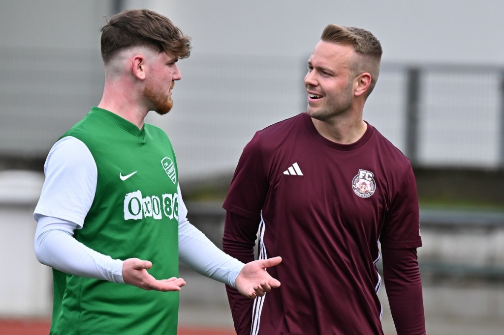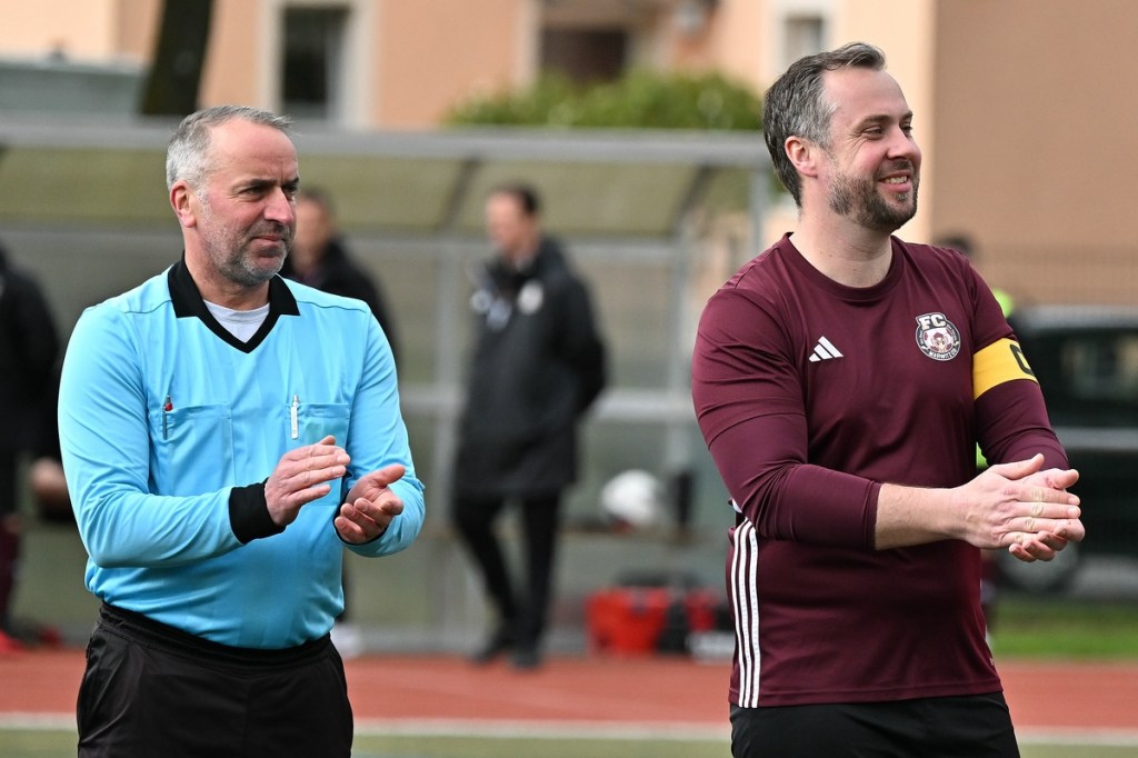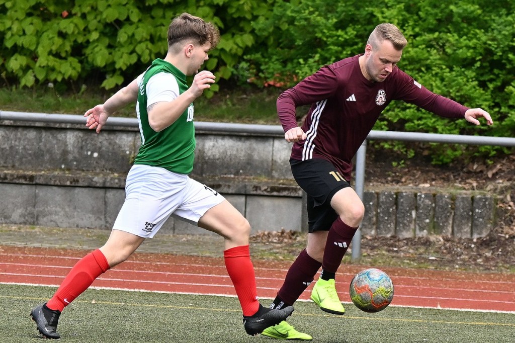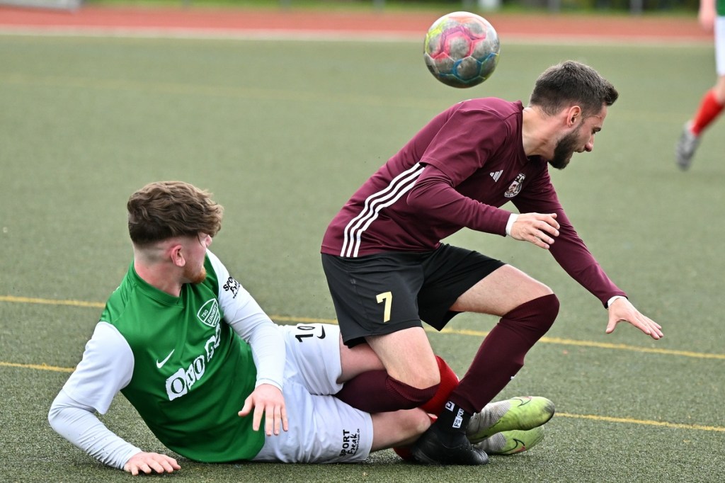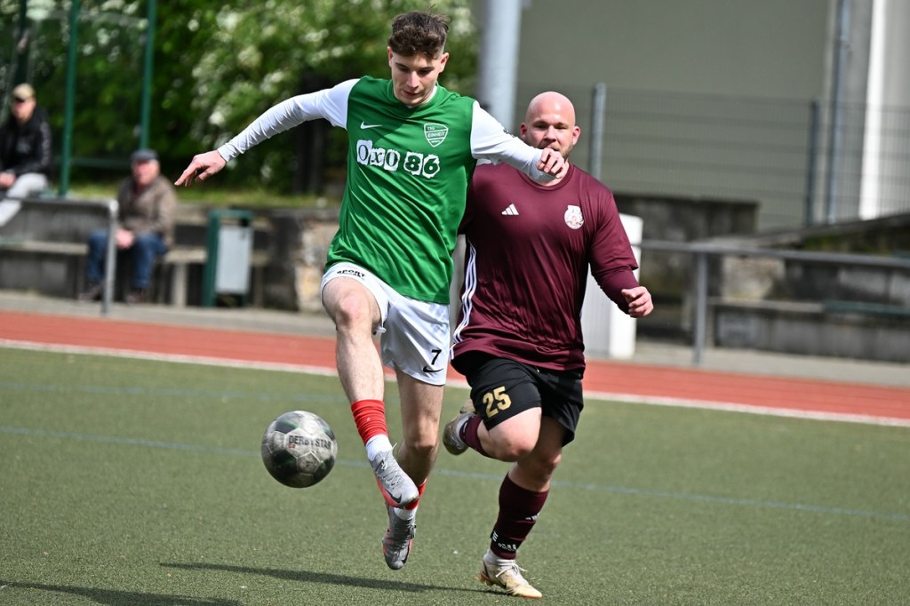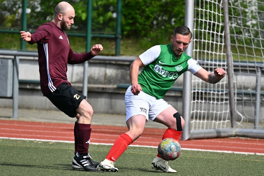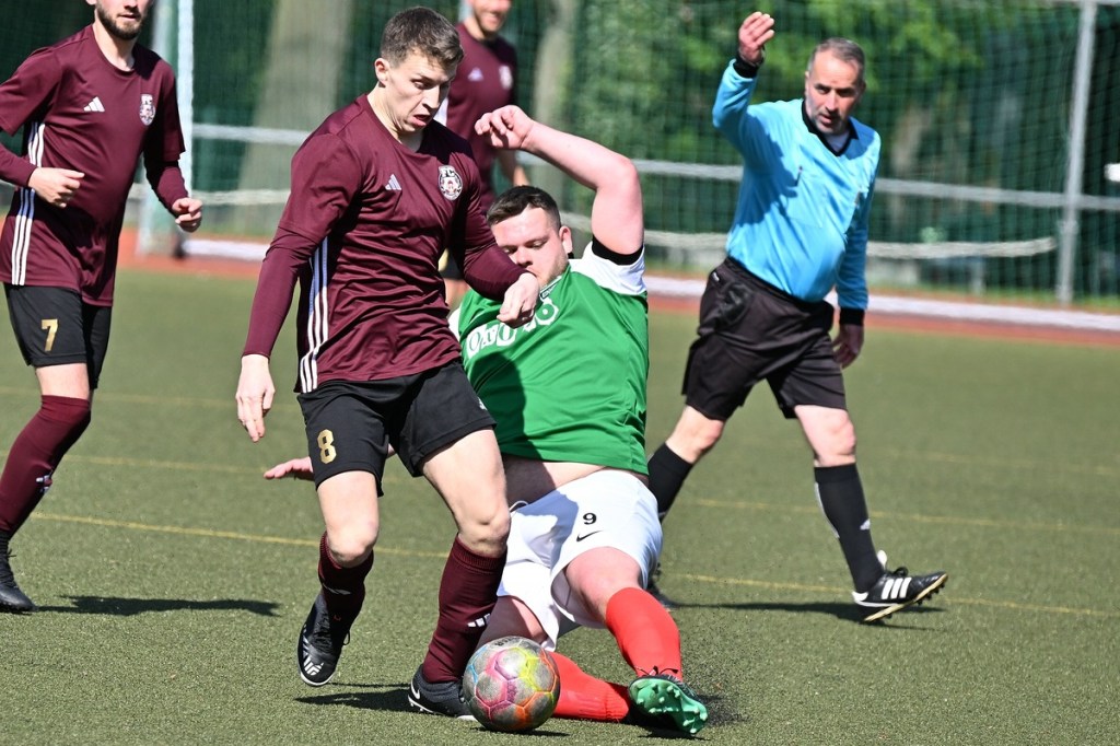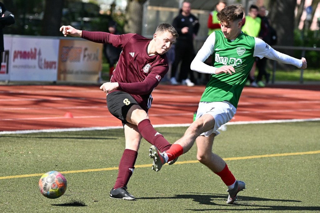 Während die Anfangsminuten noch sehr unsortiert daher kamen, sorgte Gäste-Top-Torschütze Max Kühn mit seinem Geschoss ans Quergebälk dafür, dass ein „Hallo wach“ durch sämtliche Reihen ging (5.). Bernau hatte die langen Bälle für sich entdeckt und damit die erste gute Möglichkeit vorbereitet. Elias Schülke konnte die Kugel erlaufen und kam ins Eins-gegen-Eins-Duell mit FC-Torsteher Chris Koch, der reaktionsschnell den drohenden Einschlag verhinderte (9.). Die Begegnung tauchte zusehends in die Intensität ein und lebte von rassigen Zweikämpfen im Mittelfeld. Dabei machte Marwitz die etwas bessere Figur und kam in der 11. Minute zur nächsten Möglichkeit. Eine flache Eingabe rauschte durch den Heimfünfer, bei der Bernau Glück hatte, dass Kenneth Schlecht am langen Pfosten einen Wimpernschlag zu spät kam (11.). Die Gäste kratzten an der Führung, allein schon untermauert durch den nächsten Aluminiumtreffer durch Max Kühn (13.). So ein wenig verflachte die Partie, zumindest in der Strafraumpräsenz. In der 23. Minute war es dann doch passiert, der FC hatte das 0:1 erzielt. Dabei zeigte sich Robert Dietrich recht abgezockt, als er ansehnlich die Kugel serviert bekam und Heim-Schlussmann Joel Kilian Gap per Heber überwand. Keine sechzig Sekunden später roch es dann schon stark nach dem zweiten Marwitzer Treffer. Joel Waßmuth hatte sich den Ball erkämpft und gut positioniert abgezogen. Doch Bernaus Defensive bekam noch einen Fuß dazwischen und verhinderte damit den drohenden zweiten Nackenschlag. Bernaus lange Bälle, wenn auch sporadisch, blieben weiterhin gefährlich. Adressat und Verwerter einer dieser Anspiele war Lucas Schlegel, der über rechts in den Strafraum eindrang und auch gleich abzog. Chris Koch war aber zur Stelle und wehrte das Spielgerät auf Kosten eines Eckballs ab (29.). In der 31. Minute wurde es dann artistisch. Justin Dean Harnaß versuchte es per Fallrückzieher, den Schiedsrichter Volker Obst hätte wegpfeifen müssen, weil der Fuß schon sehr nahe am Kopf seines Gegenspielers war. Stattdessen hämmerte Tomek Bardo Brück das Spielgerät aus der zweiten Reihe knapp am linken Pfosten vorbei ins Aus (32.). Eine Doppelchance der Marwitzer endete dann mit einem Elfmeterpfiff. Den ersten Abschluss parierte der Bernauer Schlussmann, den Nachschuss entwerte Jason Müller mit dem Oberarm. Schiedsrichter Obst hatte nachvollziehbar entschieden, aber jegliche persönliche Strafe unterlassen. Somit konnte sich die Bernauer Fraktion doppelt glücklich schätzen, denn Max Kühn war mit seinen nicht unplatzierten Elfer-Geschoss am sehr gut reagierenden Gap gescheitert (39.). Die 44. Minute wurde dann ereignisreich. Erst traf Marwitz, in Persona Kenneth Schlecht, zum dritten Mal ans Torgehäuse. Und praktisch im Gegenzug erzielte Elias Schülke den Ausgleich. Dabei sah die FC-Abwehr gar nicht gut aus, als auf der linken Seite zwei Kollegen düpiert wurden und der Ball zum Torschützen kam. Marwitz Keeper war chancenlos. Ein Abseits, für das sich Referee Volker Obst entschied, welches aber nicht wirklich eines war, hätte die Bernauer Führung zur Pause bedeuten können (46.+1).