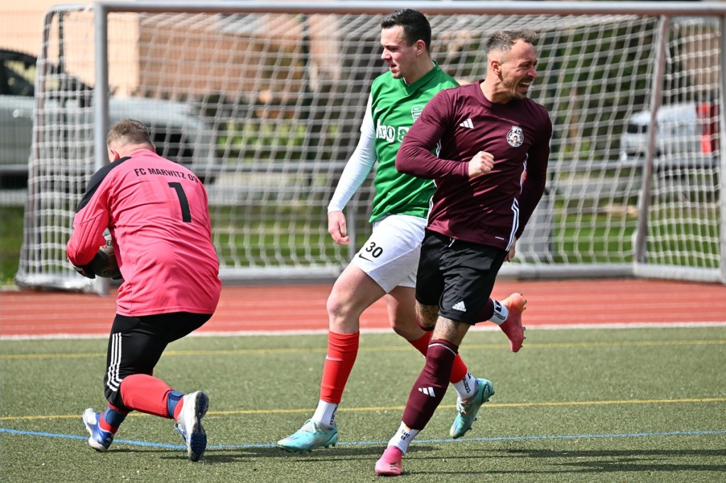 Der Wiederanpfiff war kaum verhallt, da hatte Max Kühn die erneute Gäste-Führung auf den Schlappen. Sein Schlenzer war gut angesetzt, überquerte aber die Torauslinie knapp am Lattenkreuz vorbei ins Aus. Marwitz machte mächtig Druck, kam zu zwei sehr guten Möglichkeiten und belohnte sich dann in der 49. Minute. Eine schnell und kurz ausgeführte Ecke wurde zur Flanke, die Toni Rauschnick per Kopfball versenkte. Bernau reagierte, konterte, flankte und musste am Ende zusehen, wie Toni Rauschnick klärend die Kugel kompromisslos über das eigene Tor ins Aus nagelte (51.). Mit dem 1:3, erzielt durch Robert Dietrich, schienen die Messen für einen Marwitzer Auswärtserfolg gesungen. Zumal sich die TSG gerade im Abwehrverhalten recht schlampig zeigte und dies zum wiederholten Male (53.). Auch die Glanztat von Gap, der hervorragend beim Schuss von Kühn reagierte, untermauerte die These nach einem anerkennbaren FC-Erfolg (57.). Doch Bernau gab nicht auf, vor allem nicht, mit langen Bällen zum Erfolg zu kommen. Florian Spielberg packte die Chance beim Schopfe, als er allein vor Chris Koch auftauchte und den nicht mehr zu erwartenden Anschluss herstellte (65.). Die Moral stimme auf TSG-Seite. Doch mit abnehmender Spielzeit wurden die Angriffe weniger und auch harmloser. Marwitz hingegen, spielte die Zeit herunter, ohne ebenfalls in der Offensive Glanzpunkte zu setzten. Stattdessen wurde in der vierminütigen Nachspielzeit versucht, den Ball an den gegnerischen Eckfahnen festzumachen, um noch mehr Zeit von der Uhr zu nehmen. Dies gelang dann mit dem Resultat eines knappen, aber sicherlich nicht unverdienten Auswärtserfolg. „Aus meiner Sicht haben wir bis auf die ersten zehn Minuten zu Beginn der zweiten Halbzeit das Spiel nach dem Wiederanpfiff klar dominiert. Wir sind leider etwas verschlafen aus der Kabine gekommen. Wenn wir dann die Chancen genutzt hätten, wären wir wohl als Sieger vom Platz gegangen. So ist halt Fußball.“, so das Statement von Bernaus Verantwortlichen Marvin Stephan Ehrke. Sein Marwitzer Trainerkollege Sebastian Bauer war natürlich glücklich über den Erfolg. „Es war das erwartete, schwere Spiel. Wir sind hier schon mit dem Ziel hergefahren, etwas mitzunehmen. Glück hatten wir auch, dass der aberkannte Treffer kurz vor der Halbzeit kein Abseits war und wohl hätte zählen müssen. Pech hatten wir aber auch mit den Aluminiumtreffern. Schlussendlich war es knapp, ich denke aber nicht unverdient.“