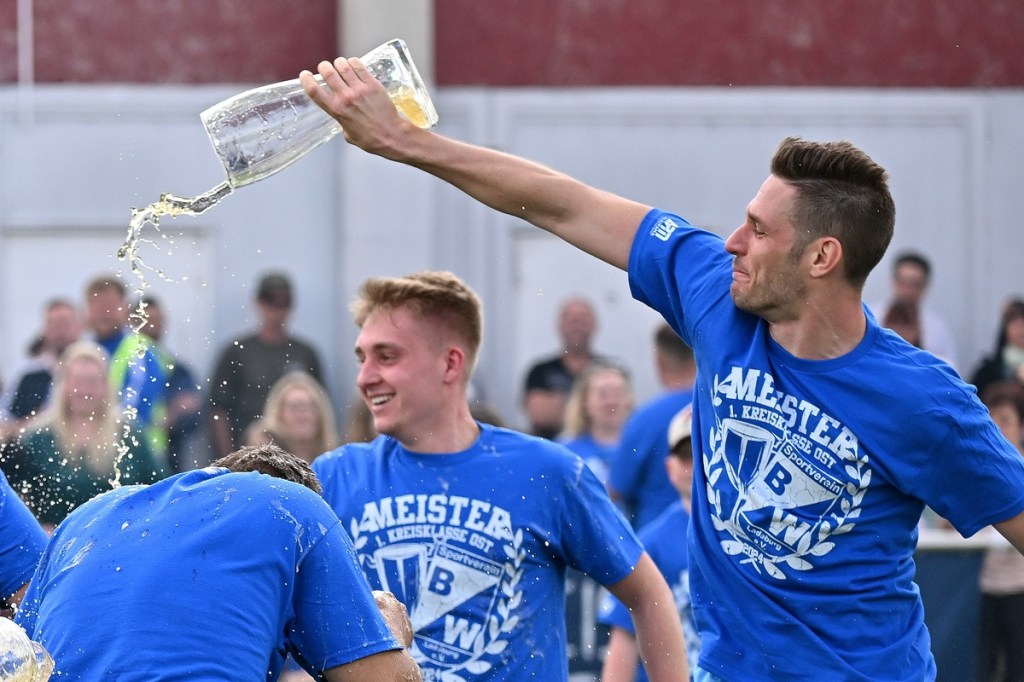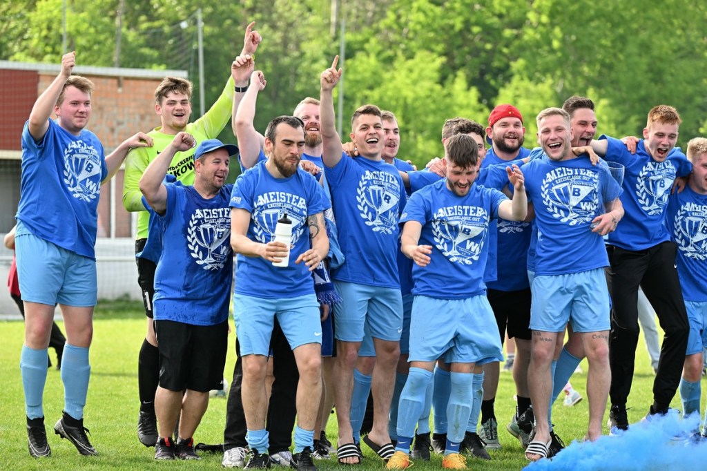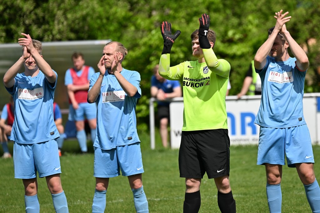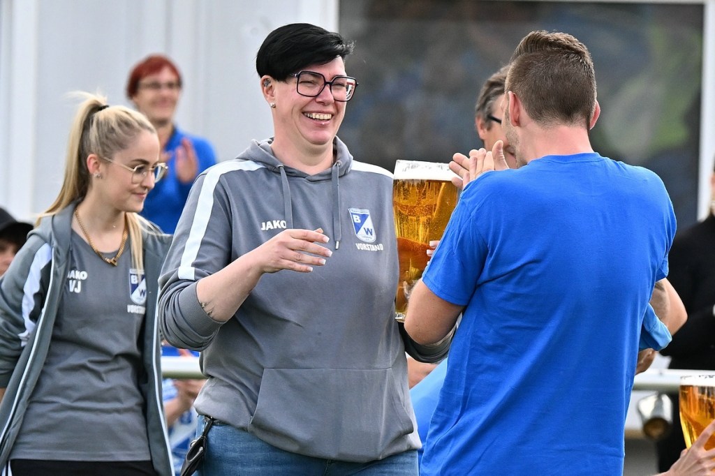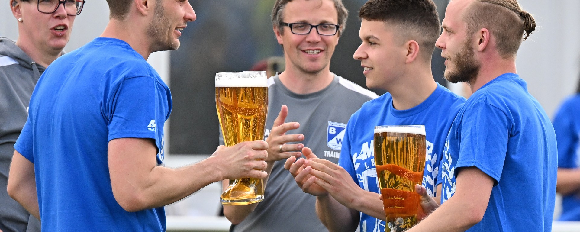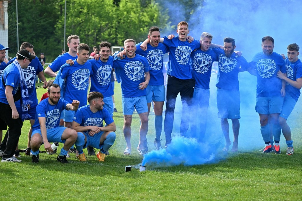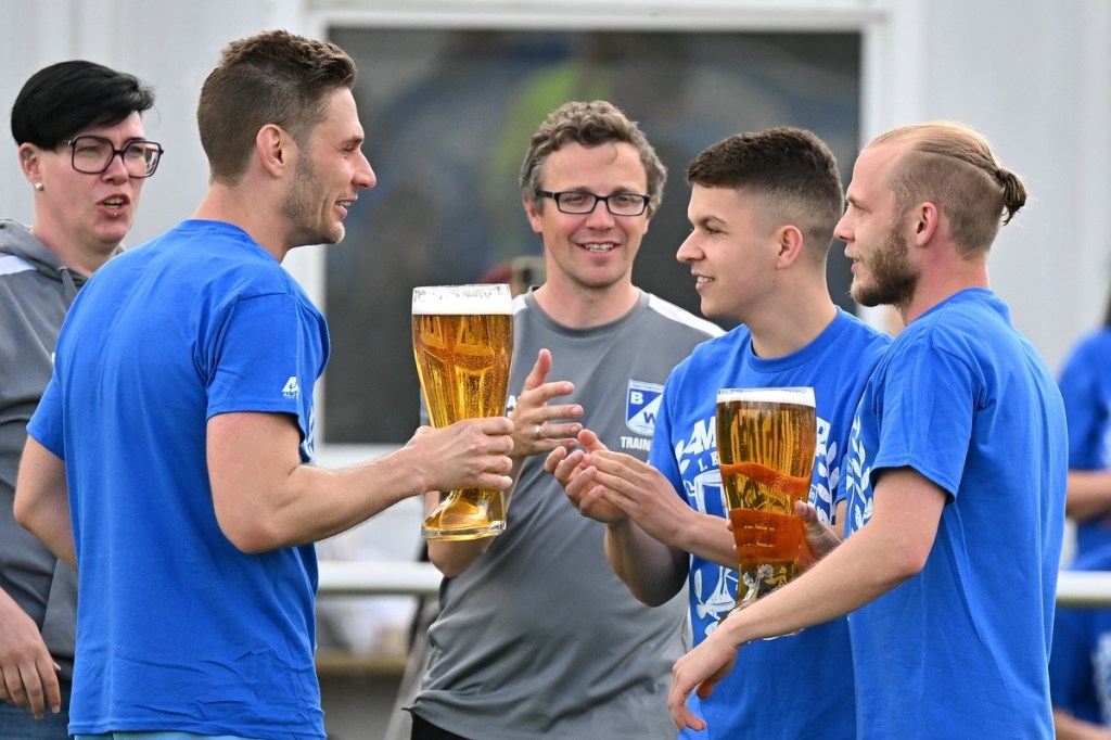 Schlussendlich wurde die Kiste mit den Aufstiegsshirts herbeigeholt und die Aufstiegs-Arie vorbereitet. Der Rest war dann, mit dem pünktlichen Abpfiff des sicheren und wenig geforderten Referees Steffen Gloge, pure Freude, Bierdusche, Blau-Weiße Pyro und huldigende Zuschauer.