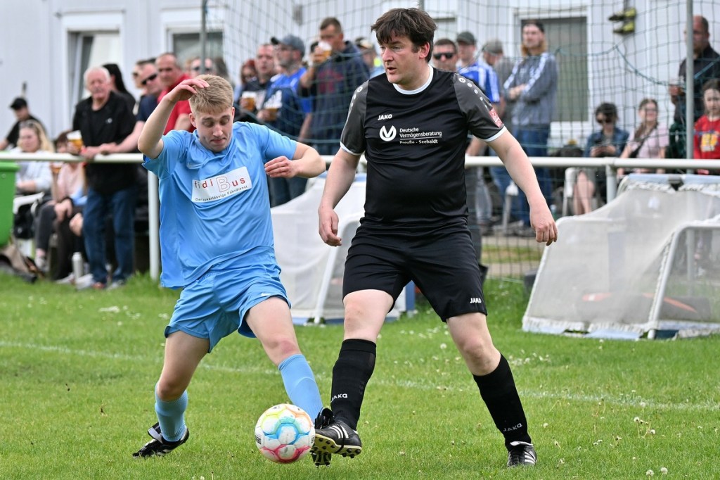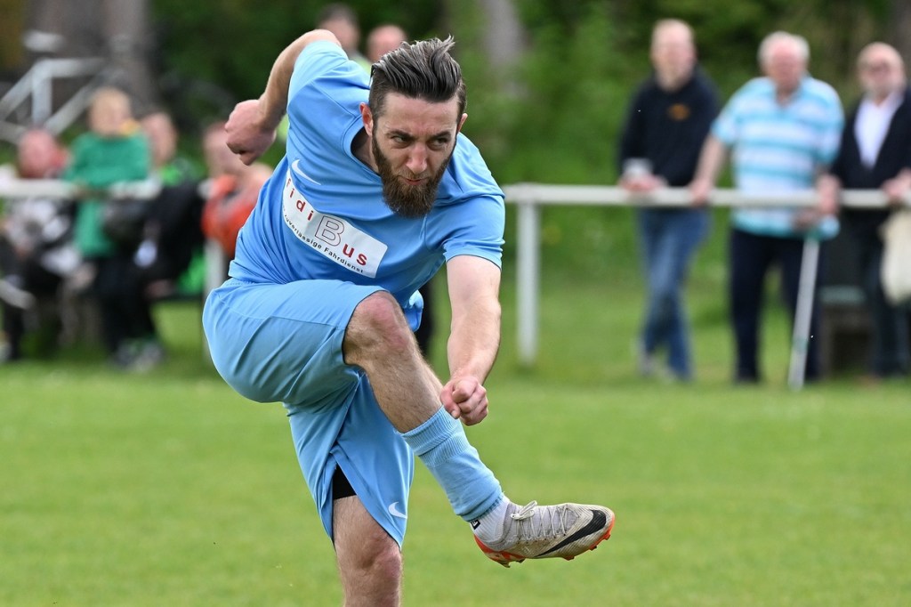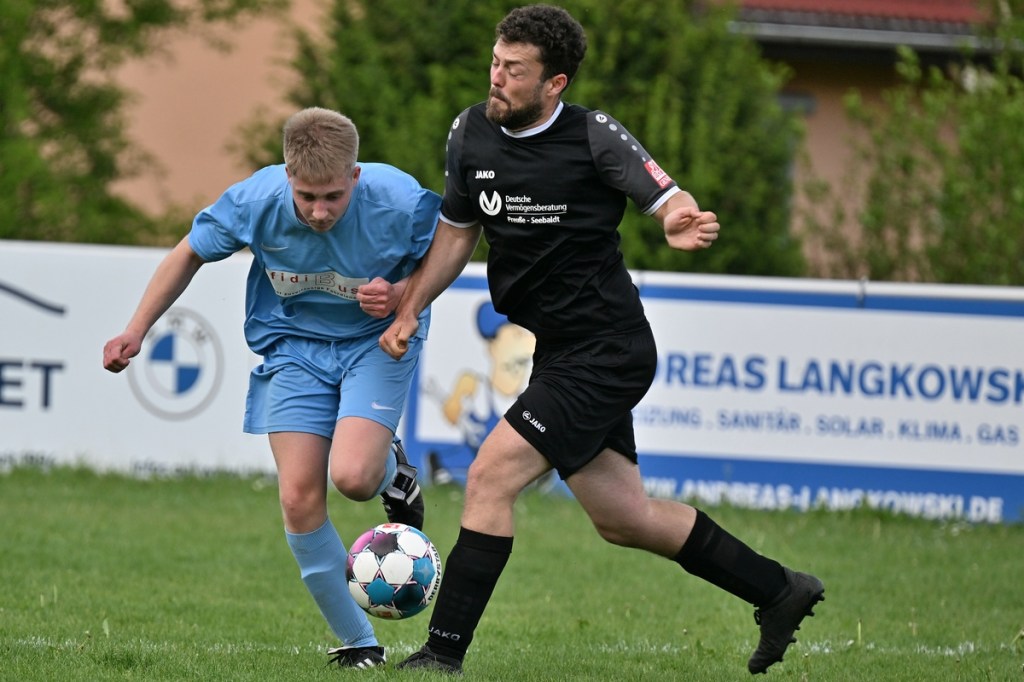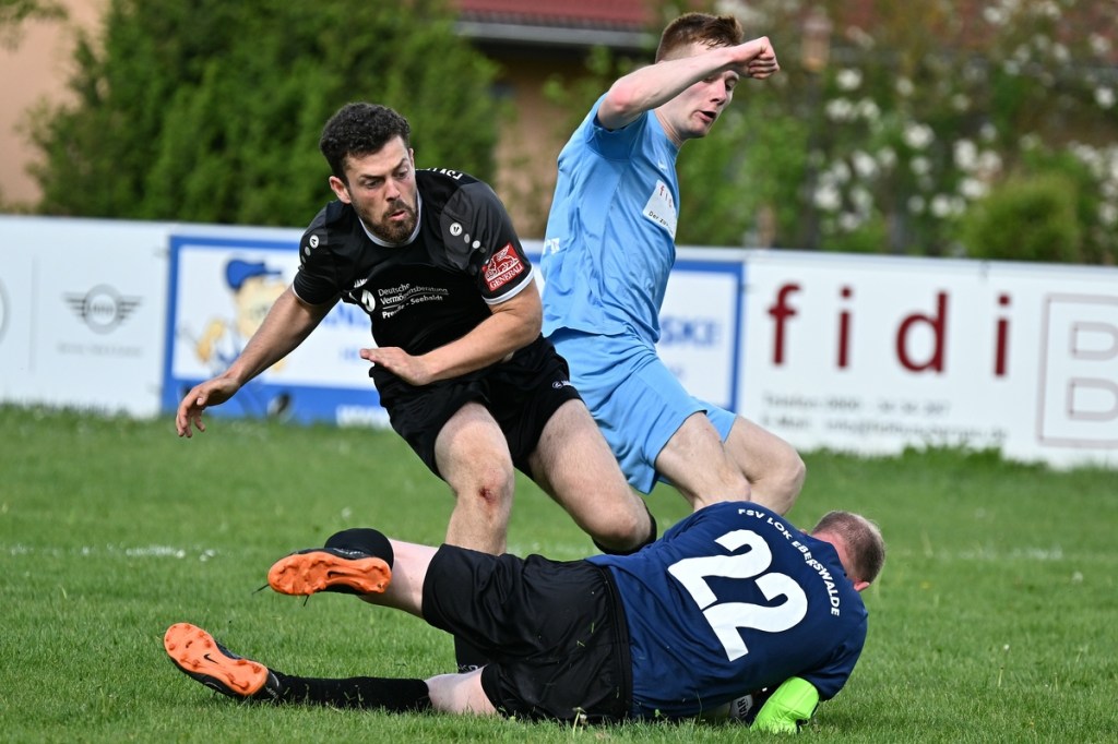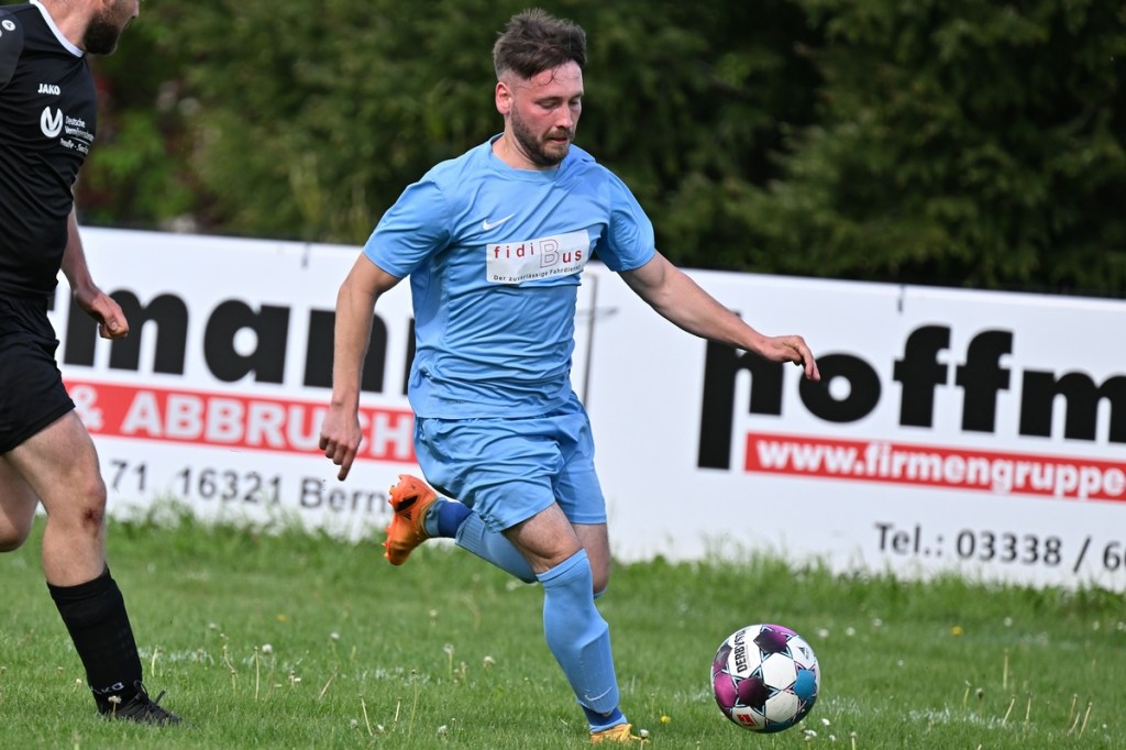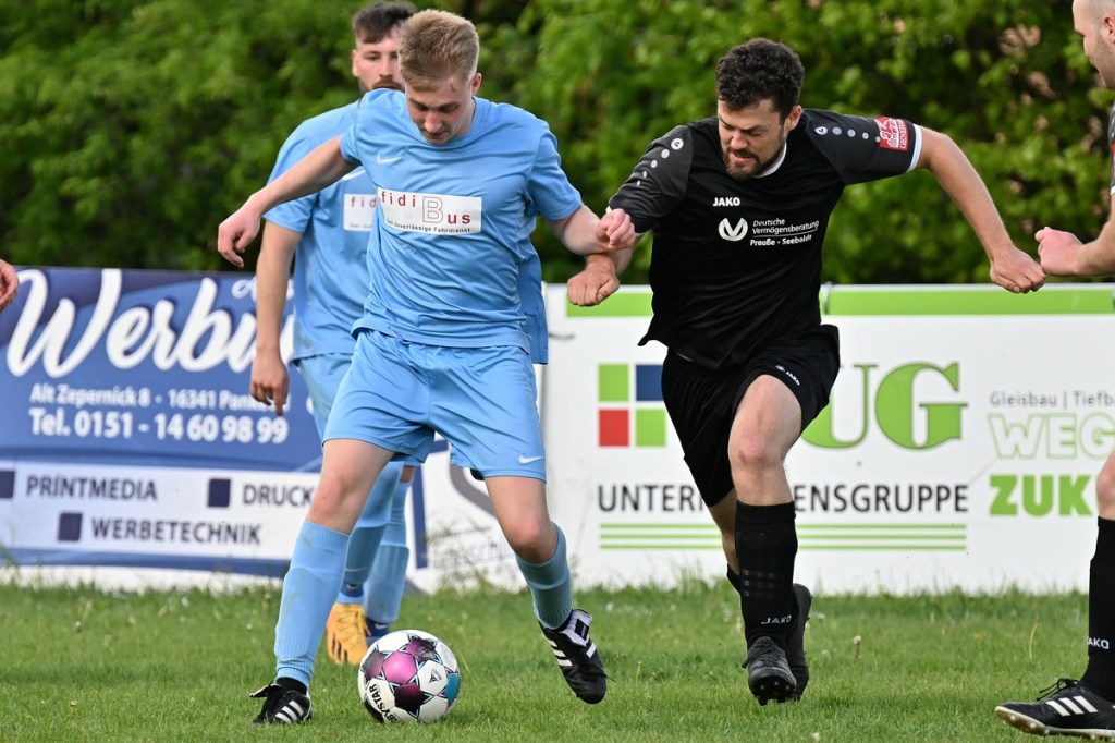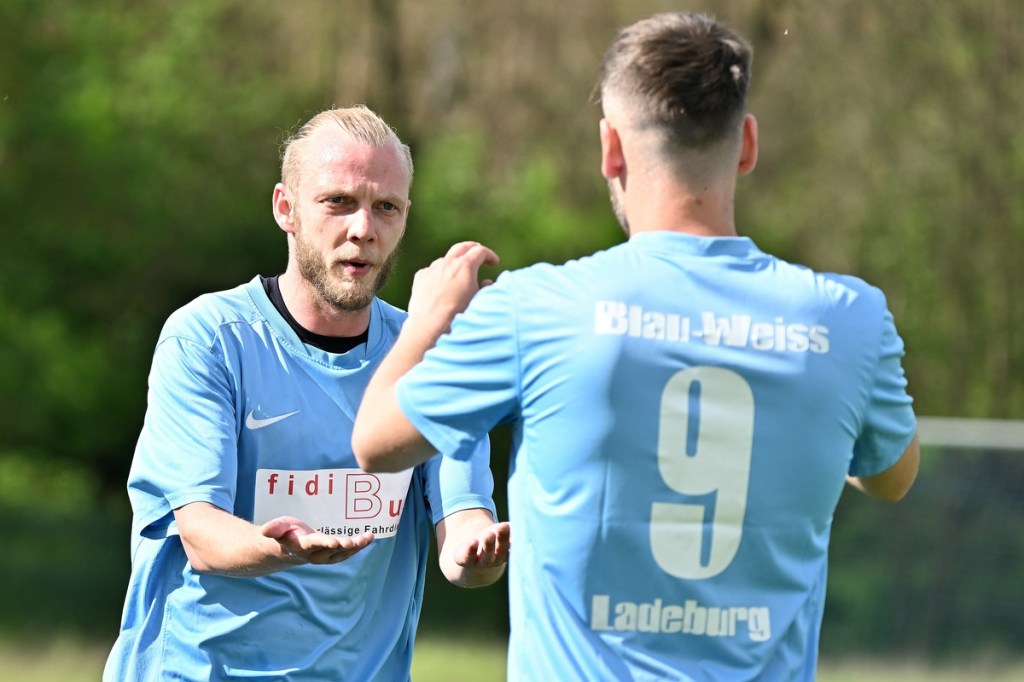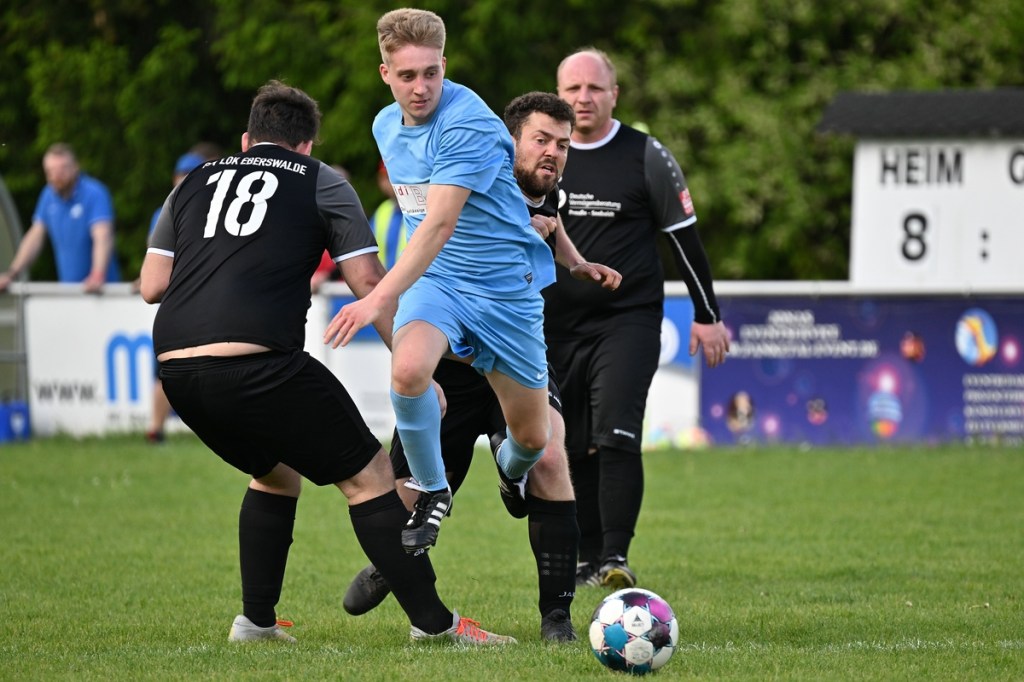 Die heutige Partie in der 1. Kreisklasse Ost war geprägt von der Ausgangslage „David gegen Goliath“. Ladeburg als Ligaprimus gegen das abgeschlagene Schlusslicht, der Spielgemeinschaft Lok Oberswalde/Ostender SV II. Da lag von vorneherein wenig Spannung in der Luft, sondern eher Gedanken nach der Höhe der Torquote und eventuellem Versagen der Hausherren. Schlussendlich standen dreizehn Buden auf der Habenseite der Blau-Weißen, dem gegenüber die oft angestrebte oder für die Niederlage zitierte Null. Es war kein Leckerbissen, den die zahlreich erschienen Zuschauer (150) präsentiert bekamen. Das konnte man bei dieser Konstellation auch nicht erwarten. So dauerte es zwölf Minuten, bis sich Romano Fieting ein Herz nahm und aus der zweiten Reihe das Spielgerät in die Maschen drosch. Es war schwere Kost gegen zum Teil überforderte, aber wacker kämpfende Gäste. „Wir waren überhaupt froh, dass wir eine spielfähige Mannschaft zusammen bekommen haben“, hatte Gästetrainer Felix Rödl den schwachen Auftritt seiner Jungs versucht zu erklären. Aus seiner Sicht konnte er sich schon glücklich schätzen, dass der Favorit nur schwer in die Gänge kam, weil oft viel zu umständlich im Vorwärtsgang agiert wurde und deshalb auch nur von Halbchancen geredet werden konnte. Mit dem 2:0 und 3:0 hatte sich Blau-Weiß den Tabellenletzten nun endgültig zurechtgelegt. Um dem sich anbahnenden Debakel aus dem Weg zu gehen, wurde in der Defensivabteilung der Spielgemeinschaft schon laut über eine Sechserkette nachgedacht, die schlussendlich für den designierten Aufsteiger noch mehr Beton bedeutet hätte. Es fehlte den Gästen aber eindeutig an Qualität, der Übermacht entscheidende Mittel entgegenzusetzen. So führte das Heimteam zur Halbzeit hochverdient mit fünf Treffern, ohne den großen Glanz versprüht zu haben.
