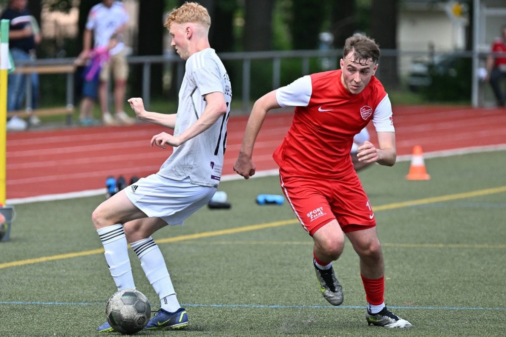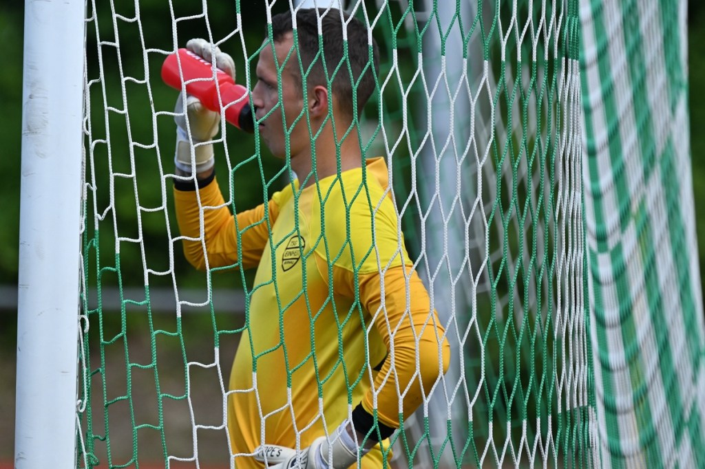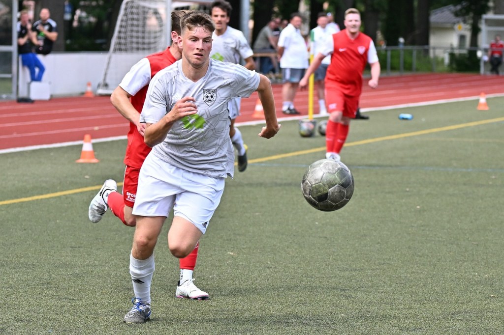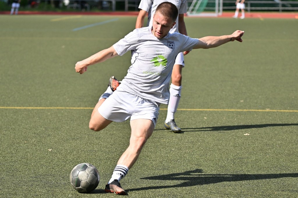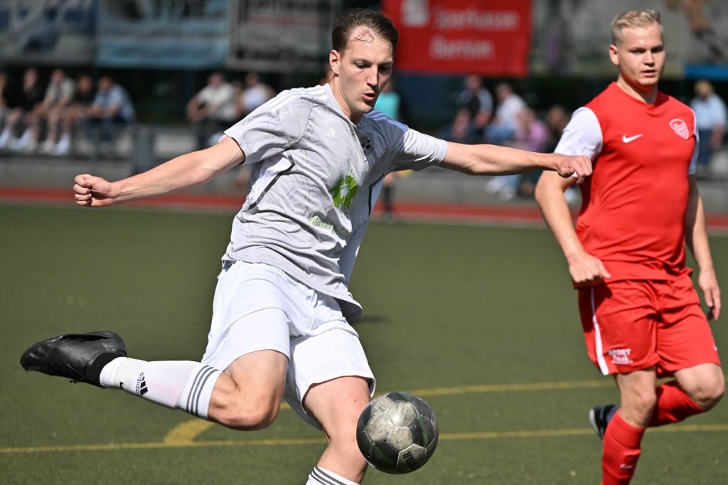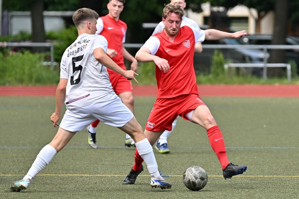 Die Motivation stimmte bei den Hausherren. Und dies zeigte sich besonders in der Anfangsphase. Bereits in der zweiten Minute lag die Führung in der Luft, als Lucas Steinert Gästekeeper Erik Firchau prüfte und der Nachschuss aus dem Rückraum knapp über den Querbalken ging. Keine sechzig Sekunden später bekam Frederick Fiebig, eher zufällig, ein abgefälschtes Anspiel vor die Füße, welches er mehr schlecht als recht verwertete und somit wiederum Firchau zur Endstation des Angriffes machte. Mit dem ersten Gästeangriff lag die Kugel im TSG-Netz. Doch Schiedsrichter Assistent Gero Metzner hatte berechtigterweise ein Abseits gesehen, was den Jubel der Gäste abrupt beendete (5.). Einheit baute sich immer mehr einen Belagerungszustand auf. Dabei wurde Frederick Fiebig zur Galionsfigur. Gerade sein Solo, welches er sehenswert dreißig Meter vor dem Fortuna-Tor ansetzte, wäre schon ein Tor wert gewesen. Doch sein Schuss von der Strafraumgrenze war Pech behaftet, als ein Gästebein den Einschlag verhinderte (6.). Einheit ließ nicht locker und dabei die Gäste kaum zur Entlastung kommen. Das Geschoss aus dem Rückraum, abgesetzt von Felix Glöckner, welches knapp über den Kasten ging, schaffte es auch auf die Strichliste der sehr guten Bernauer Möglichkeiten (8.). Nach gut zwanzig Minuten ebbte die Chancenflut und die damit verbundene Druckphase der Hausherren etwas ab, was den Babelsbergern erst einmal Luft verschaffte. Das „Fortuna Caro einfach“ mit langen Bällen, brachte in der 21. Minute die nächste Möglichkeit, bei der Armand Ligouis die Kaltschnäuzigkeit fehlte und der Abschluss zur leichten Beute für Heim-Torsteher Steve Jarling wurde. Dies war im Allgemeinen das Problem der Gäste, dass man im Ansatz gut unterwegs war, aber im Zielgebiet zu nachlässig agierte und der unbedingte Wille einen Treffer zu erzielen, nicht wirklich spürbar war. Bernaus Enis Hot erzielte dann das hochverdiente 1:0. Vorausgegangen war ein gewonnener Zweikampf eines Kollegen, aus dem Hot mit seinem Ballbesitz profitierte. Eine kurze Finte und er hatte seinen Gegenpart abgeschüttelt. Das Tor erzielte er in Stürmermanier, als er die Kugel sehr abgezockt rechts an Firchau vorbeischob (23.). Bernau hatte weiterhin alles im Griff, musste aber bei sporadischen Gästekontern immer auf der Hut sein. Die knackigeren Möglichkeiten blieben aber auf der Heimseite. Einen Hochkaräter bekam Lucas Steinert an der Strafraumkante der Fortuna aufgelegt. Doch anstatt noch ein paar Meter zu gehen, zog er gleich ab und verschenkte damit viel Potenzial und gab dem viel beschäftigten Firchau die Chance abwehrend einzugreifen (27.). In der 31. Minute reklamierten die Gäste nicht unberechtigt ein Handspiel im TSG-Strafraum durch Viacheslav Veybert, der bei einer halbhohen Flanke der Ball an die Hand bekam und damit der Kugel eine klare Richtungsänderung verpasste. Doch Referee André Stolzenburg ließ weiterspielen, was im Nachgang zu kurzen Diskussionen führte (31.). Die Begegnung flachte immer mehr ab. Praktisch mit dem Halbzeitpfiff führte ein Zweikampf im Bernauer Sechszehner zu einer Strafstoßentscheidung. Viacheslav Veybert kam beim Kampf um den Ball einen Wimpernschlag zu spät und traf John Lukas Schmidt regelwidrig. Schmidts Mitstreiter Tim Dethloff übernahm die erfolgreich die Verantwortung und nahm den Ausgleich motivierend mit ins Halbzeitgespräch (45.).