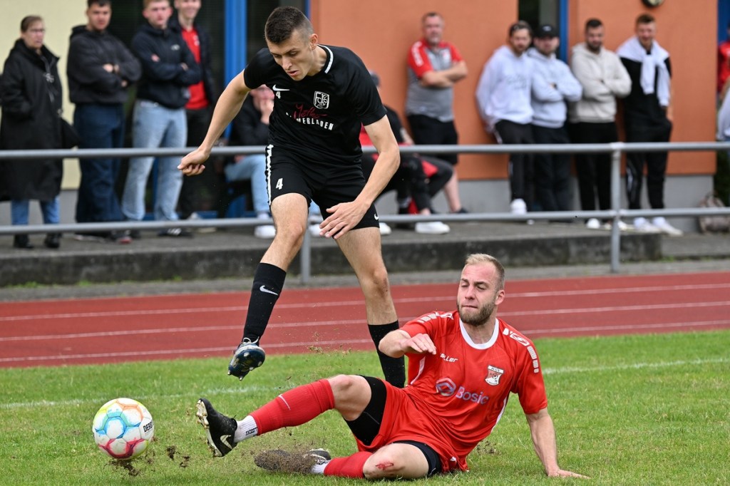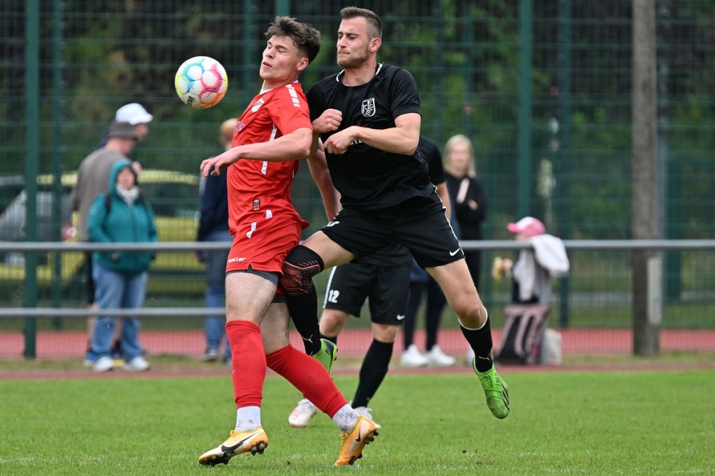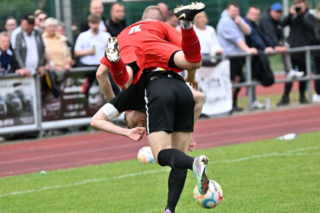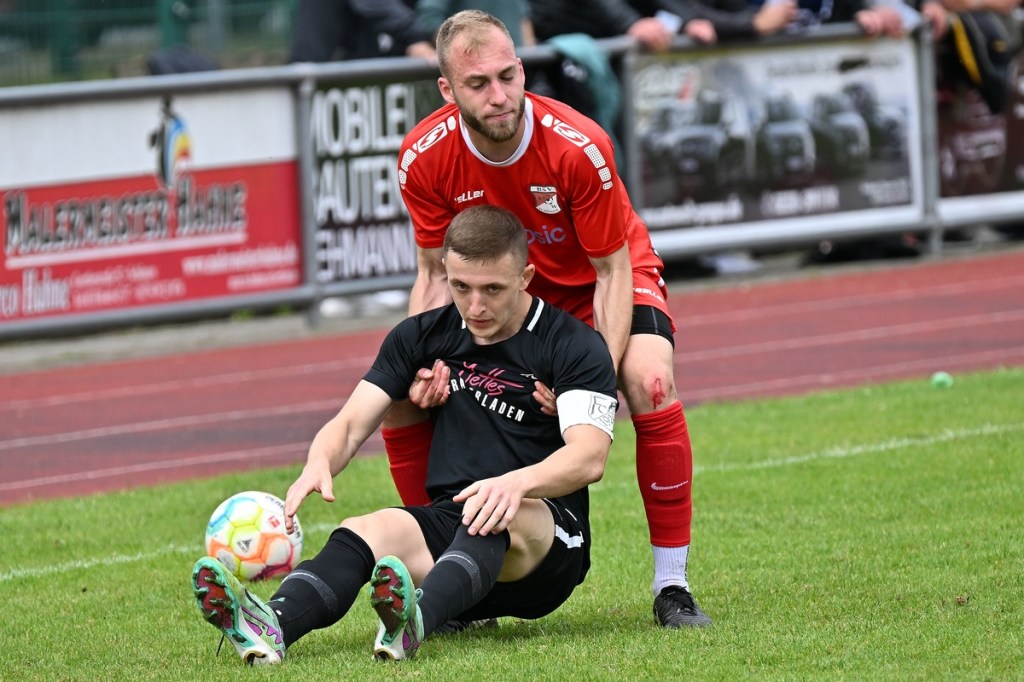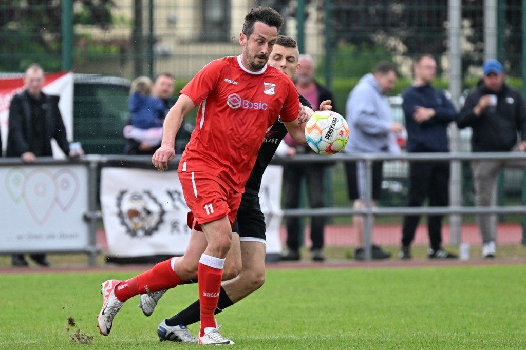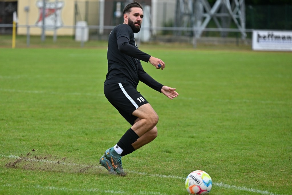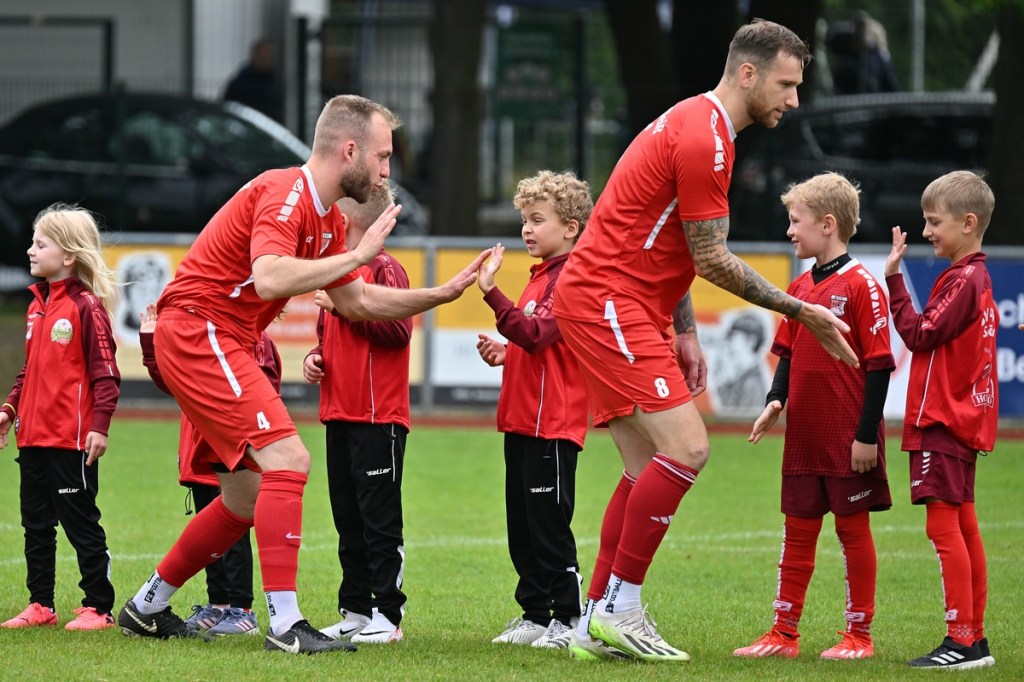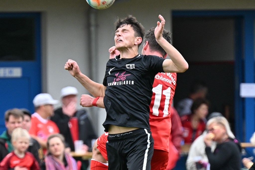 Doch vor der Siegerehrung waren noch neunzig Minuten, plus Nachspielzeit, zu absolvieren. Schiedsrichter Bastian Knuth hatte pünktlich angepfiffen und damit scheinbar dem Regen den Garaus gemacht. Unter dem mit zunehmender Dauer aufreißenden Himmel entwickelte sich eine durchaus interessante Partie. Man merkte den Aktiven aber schon an, dass bei der sicherlich vorhandener Brisanz, niemand mehr sich das ganz große Futter ausreißen wollte. „Wir wollten eine Reaktion auf die Niederlage aus der Vorwoche in Falkenthal zeigen und uns ordentlich aus der Liga verabschieden. Da mussten wir uns schon in die Partie reinarbeiten,“ hatte Schönows scheidender Trainer Hendrik Brösel im Nachgang den moralischen Aspekt für seine Spielstrategie erklärt. Denn es war in den Anfangsminuten eine Partie auf Augenhöhe, in der sehr Mittelfeld lastig agiert wurde und die Torhüter einen fast beschäftigungslosen frühen Nachmittag verlebten. Der erste Abschluss der Hausherren zappelte dann auch gleich im FC-Netz. Dabei zeigte Stefan Schulz eingehauchte Abstauber-Qualitäten, als er einen abgewehrten Ball unhaltbar in die Maschen drosch (11.). Kremmen hingegen, kam nach fünfzehn Minuten zur ersten Chance, welche aber nur in die Kategorie der Halbchancen passte. Dann war lange Flaute in und vor den Sechszehnern, weil keines der Teams es schaffte, die aufkommende Hektik im Mittelfeld und die vielen eigenen Ballverlusten zu unterbinden. Die Gäste unterbrachen als Erste diese Phase in der 29. Minute. Niclas Köpke wurde per Diagonalanspiel in halbrechter Position bedient, zog sehenswert und mit guter Knackigkeit ab, zwang Johannes Weinrich abzutauchen und auf Kosten eines Eckballs zu klären. Und diese Standardsituation hatte die nächste Gästemöglichkeit in der Präsentation, als Philipp Pfaff per Kopfball das linke Lattenkreuz traf. Kremmen kratzte am Ausgleich. Felix Kirstein, mit seinem Schuss aus der zweiten Reihe, der nur knapp das Quergebälk verfehlte, untermauerte den Verdienst-Gedanken nach einem Torerfolg (32.). Effizienz, als Code-Wort für die Hausherren, machte in der 34. Minute die Runde. Dazu gesellte sich Schnörkellosigkeit im Angriff über drei Stationen mit passgenauer Flanke auf Maximilian Bachnick, der per Kopf vollendete. Nur zwei Minuten später lag das 3:0 in der Luft. Mannschaftskapitän Peter Erdmann war ebenfalls mit der Stirn zur Stelle und hatte aber zu sehr maß genommen und das Spielgerät an die Latte gesetzt.
