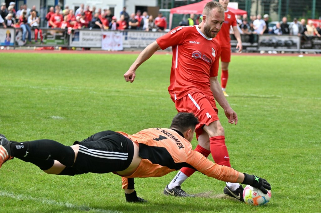 Kremmen hatte sich spürbar für den zweiten Durchgang etwas vorgenommen. Die auffälligsten Akteure, Niclas Köpke, Patrick Breyer und Lukas Kraeft, nahmen die Kurbel in die Hand und versuchten schnellsten zum Anschluss zu kommen. Doch Schönow verteidigte souverän und ließ kaum etwas anbrennen. Unter einem Rot-Weißen Spielerspalier und mit viel Applaus bedacht, wurden Peter Erdmann und Stefan Schulz in der 50. Minute ausgewechselt. Erdmann hängt die Herren-Töppen altersgerecht an den Nagel und Schulz verlässt den Verein. Mit dem 3:0, erzielt durch Routinier Dennis Aerts, der nach einer Ecke vollkommen frei die Kugel aus Nahdistanz über die Linie drücken konnte, war die Partie gefühlt entschieden (64.). Für den Foulelfmeter, Bachnick wurde klar gehalten und zu Fall gebracht, hatte sich Eric Schneider den Ball zurechtgelegt. Doch die Hoffnung auf das vierte Tor erstickte der Schütze selbst, als er schwach schoss und Gästekeeper Mike Koger die Möglichkeit gab, zu parieren (68.). Niclas Köpke entzündete keine sechzig Sekunden später mit seiner Bude zum 3:1, erzielt aus Nahdistanz, moralisch ein kleines Feuerchen (69.). Doch Schönow antwortete und stellte nur fünf Minuten später die Machtverhältnisse wieder her. Dabei bestrafte Christoph Spitze die wiederholt schläfrige und nicht resolut agierende Gästeabwehr. Eine Flanke rutsche komplett durch den Fünfer zu Spitze, der seinerseits unorthodox einnetzte. Der Rest der Begegnung stand nun unter dem Motto „Die Zeit herunterspielen“. Dabei setzte der eingewechselte Pascal Bettge sein Können per Balleroberung und dem Willen sehr abgezockt ein Tor zu erzielen, mit dem 5:1 unter Beweis (78.). Maximilian Bachnick machte dann das halbe Dutzend voll und bedankte sich bei Vorlagengeber Bettge, der er ihm passgenau die Kugel serviert hatte (89.).