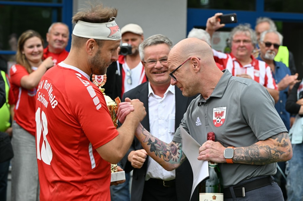 Das Schlusswort zur Partie und zum Saisonende hatte sich Schönows Trainer Hendrik Brösel reserviert, der sich zukünftig voll auf seine hauptamtliche Tätigkeit beim FSV Luckenwalde konzentrieren möchte und deshalb den Schönowern zukünftig nicht mehr zur Verfügung steht. „Das war heute schon ein Charaktertest und es hätte mich schon gewundert, wenn wir hier heute verloren hätten. Irgendwann haben wir dann unseren Fußball gespielt und hochverdient gewonnen. Vier Jahre, mit einer Saison Unterbrechung, waren für mich großartig. Ich habe allen zu danken, besonders unseren Nachwuchstrainern. Wir haben gemeinsam sehr viel erreicht, gerade in der Außendarstellung, dem Zuschaueraufkommen etc.. Dies alles war ein Prozess für den Aufstieg, zu dem in dieser Saison alle, aber auch alle, von der Vereinsführung bis zu den Fans, an einem Strang gezogen haben. Sicherlich war ich in den vergangenen Saisons schon traurig, dass wir nicht aufgestiegen sind. Schlussendlich passt es jetzt genau, auch mit meinem Abschied. Rot-Weiß ist ein toller und großartiger Verein und ich wünsche alles erdenklich Gute auf dem weiteren Weg.“