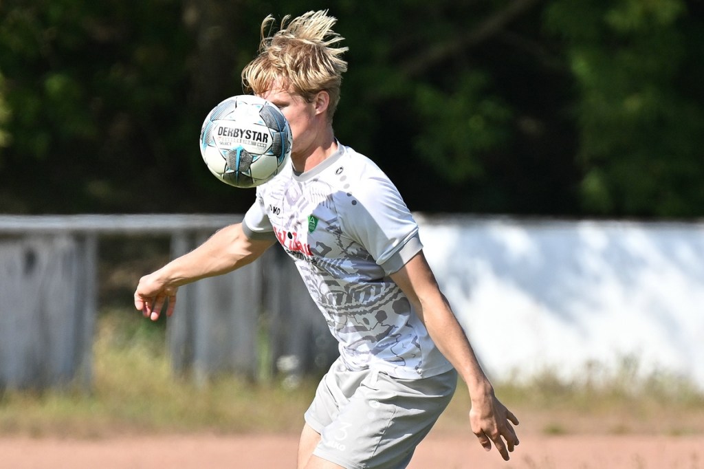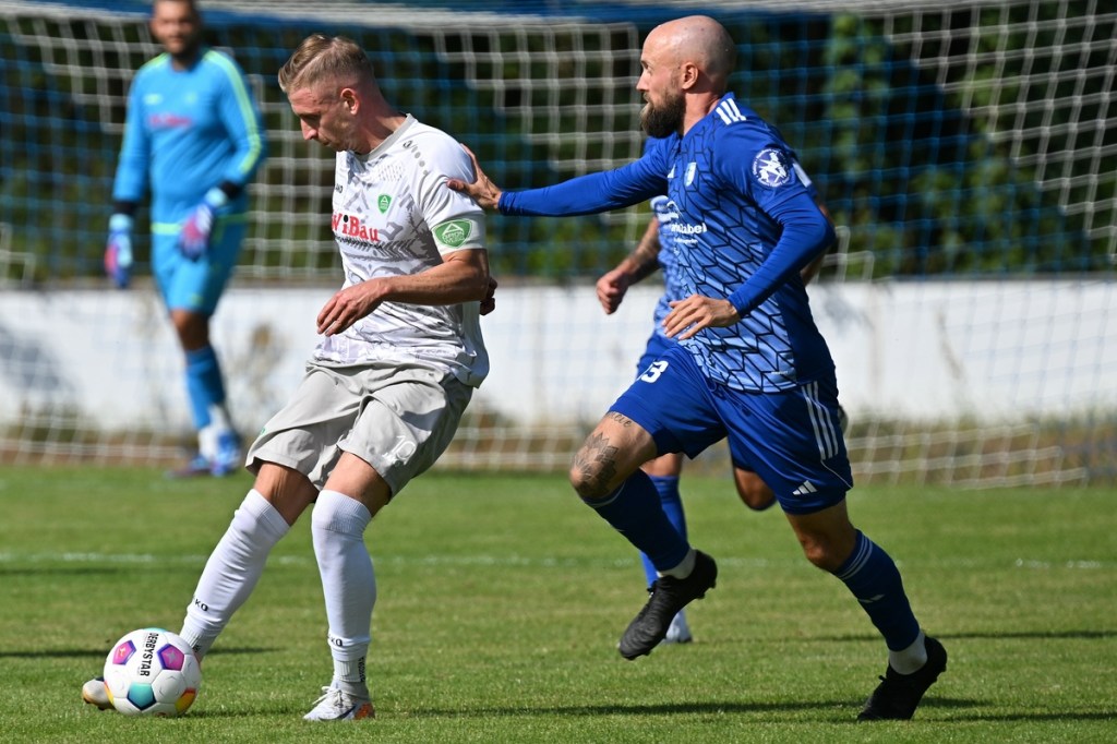Eine Aufwärmphase hatten beiden Vertretungen sichtbar nicht in ihre Agenda geschrieben. Die Offensive forcierend, waren besonders die Hausherren strukturierter unterwegs. Die Stadionuhr hatte noch keine ganze Spielminute angezeigt, da heimste sich Routinier Silvan Küter nach einem kapitalen Abspielfehler der Ahrensfelder die Kugel ein, um das frühe 1:0 zu erzielen. Doch sein Schuss aus spitzem Winkel konnte gerade noch so abgewehrt werden. In der 5. Minute trat FC-Kapitän Sven Müller abschlusstechnisch das erste Mal aus der zweiten Reihe in Erscheinung. Letztendlich war GWA-Keeper Glenn Böhme zur Stelle und klärte die Angelegenheit auf Kosten eines Eckballs. Grün-Weiss begann in der 10. Minute Rauchzeichen zu setzen. Jakub Kilank zog aus halbrechter Strafraumposition ab und verfehlte das Tor sehr knapp. Nach gut fünfzehn Minuten flaute die Partie merklich ab und wurde nun zu einer ganz normalen Landesklassen-Begegnung. Lange Bälle traten immer mehr auf die Tagesordnung, mit dem Effekt, dass nur selten die Adressaten zum Zuge kamen. Wenn für Strausberg etwas ging, dann war Silvan Küter beteiligt. „Er ist leider kein Torschütze, das war er in seinem alten Verein auch nicht. Trotzdem ist er immens wichtig für uns“, nahm Roman Sedlak seinen erfahrenen Offensiv-Spezialisten in Schutz. Ahrensfelde kam nach gut einer halben Stunde besser in die Partie und gestaltete die Gemengelage auf eine Ebene. Dabei wirkte aber gerade in Strafraumnähe der Aufzug oft zu verspielt, anstatt den direkten Weg zu wählen. Zweimal lag der Ball im Gäste-Netz, beide Male war Küter beteiligt und beide Male hatte Schiri-Assistent Leo Tadeusz Gontarek die Fahne korrekterweise zur Abseitsanzeige gehoben. In der 38. Minute schaltete sich Ahrensfeldes Abwehr-Chef Alexander Kaatz mit in den Angriff ein und kam dabei auch gut positioniert zum Schuss. Der verunglückte aber und wurde so zur leichten Beute für FC-Torsteher Rene Fingerhut. So konnte man noch zwei Möglichkeiten vor der Pause erwähnen. Erst war es wiederholt Küter, der knapp sein Ziel mit einem Schuss aus zwölf Metern verfehlte (40.). Dann trug sich Pavlo Moherchuk auf die Strichliste der GWA-Chancen ein. Aber auch sein Schlenzer aus halblinker Position wurde nur mit einem Abstoß belohnt (44.).