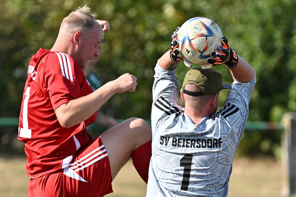 FSV-Übungsleiter Enrico Jürgens kritisierte in der Halbzeitansprache die etwas luftige Abwehrarbeit seiner Jungs, welche für den zweiten Durchgang kaum noch ins Gewicht fiel. Denn mit den beiden Strafstoß-Treffern zum 0:3 und 0:4 war der Beiersdorfer Bann endgültig gebrochen. Den ersten Elfer verwandelte Arthur Holzmann souverän, nachdem er im Zweikampf unsanft und regelwidrig im rechten Strafraumbereich zu Fall gekommen war (50.). Die Entstehung des anderen Strafstoßes zeigte schon närrische Züge. Beim Versuch den Ball abzuwehren, prallten Sebastian Falk und Brian Reinicke-Böttcher zusammen und nahmen sich so die Möglichkeit in eine klare Situationsklärung zu kommen. Reinicke-Böttcher versuchte krabbelnd den Ball zu erreichen, schob dabei mit den Händen das Spielgerät weg, was Referee Alexander Hentze korrekterweise dazu bewegte auf den Punkt zu zeigen. Abdalmhymn Kablawi übernahm die Verantwortung und ließ dem armen Beiersdorfer Schlussmann keine Chance (58.) Angetrieben von Enrico Jürgens blieb Britz weiter am Drücker und leitete zusehends eine schmerzliche Schlussphase für die Hausherren ein. Denn die stark abnehmende Kondition rüttelte am inneren Schweinehund, der in der gelebten Abwehrschlacht nun dringend benötigt wurde. Doch die Moral der Beiersdorfer stimmte. Britz kam nur noch zu zwei Treffern, erzielt durch Marc Seifert und Marc Fahrenheim, der das zweite Eigentor produzierte (82., 86.). Wenn man das Haar in der Britzer Suppe suchen müsste, wäre es die Chancenverwertung, welche zum Teil kläglich daherkam. Besonders zu erwähnen war hier die Situation in der 88. Minute, als drei Versuche in Peinlichkeit untergingen. Aus Nahdistanz wurde zweimal von den leidenschaftlich agierenden Hausherren gerettet und einmal stand der Querbalken im Wege. Schlussendlich steht für Britz das Weiterkommen im Vordergrund. Beiersdorf hingegen wird sich auf den Ligaalltag konzentrieren müssen, denn da hat die Truppe nach zwei Spielen eine Null in der Punkteleiste zu stehen.