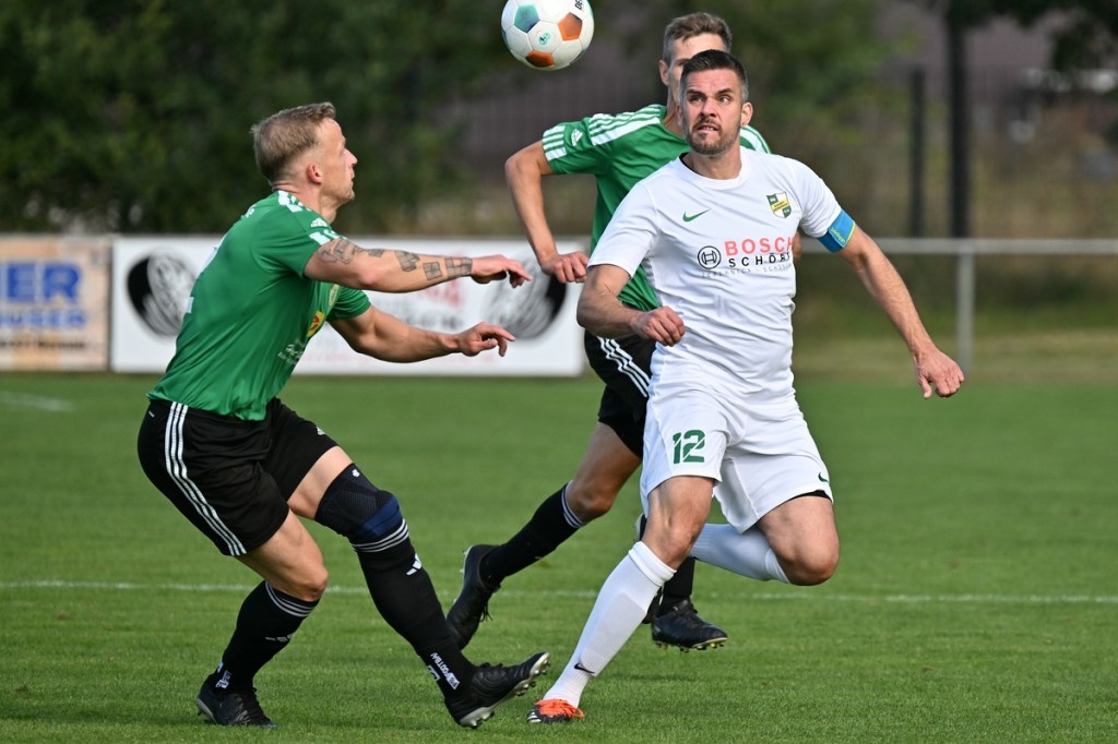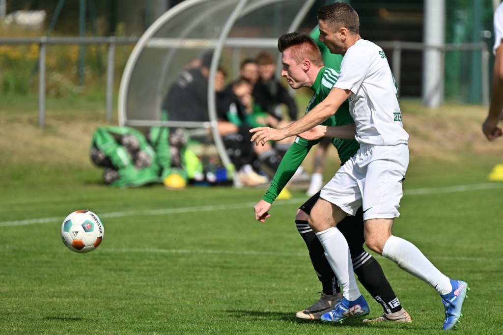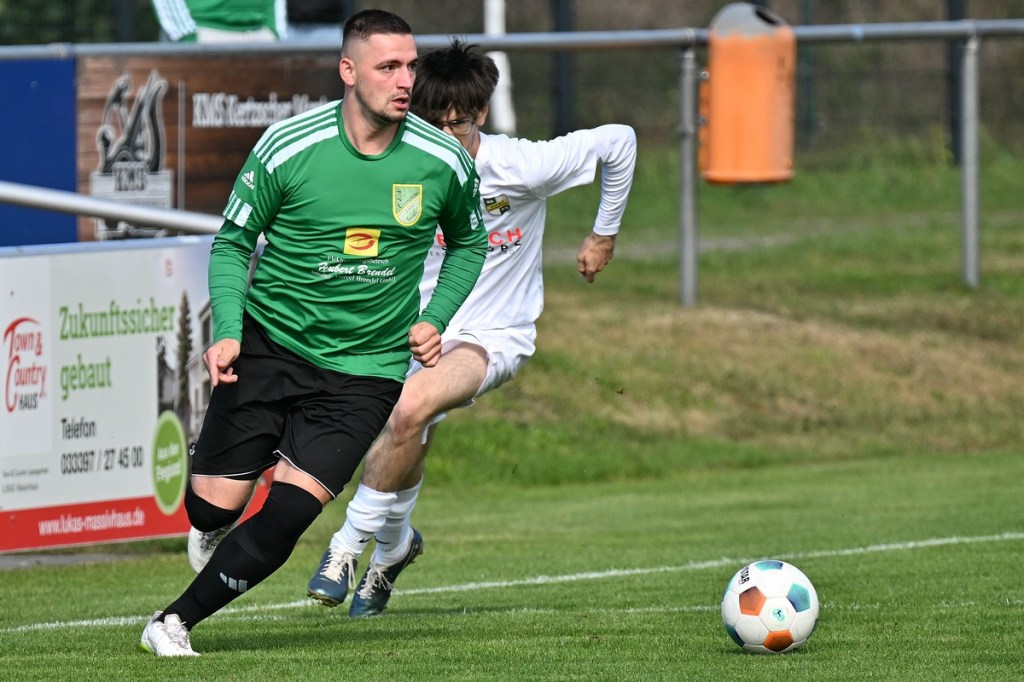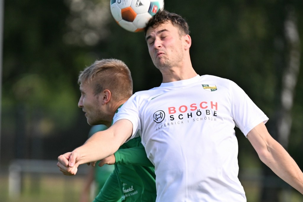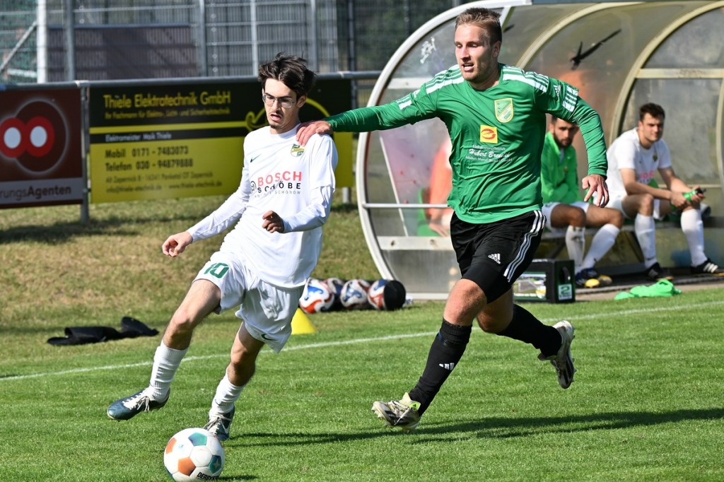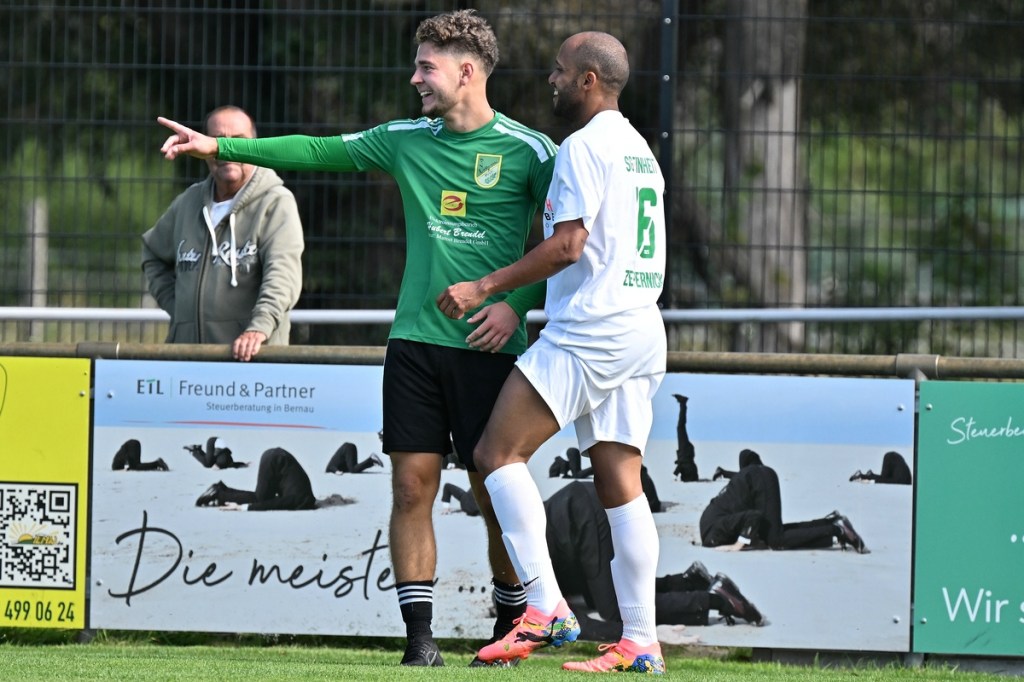 Die Partie wurde in Absprache mit den Gästen kurzfristig auf den Hauptplatz vom Kunstrasenbelag auf das sehr gepflegte Naturgrün verlegt. Ein Umstand, der den favorisierten Spielgemeinschaftlern wohl eher zugutekam als den Hausherren, die ihr gewohntes Umfeld mit den geringeren Maßen damit aufgaben. „Dies war eine Entscheidung der Mannschaft und uns war das Risiko schon bekannt“, hatte Ratajczak die Platzverlegung begründet und damit jeden Zweifel weggewischt. Besonders die Anfangsminuten wurden zum taktischen Abtasten. In der 8. Minute erzielten die Gäste das erste Mal eine gewisse Aufmerksamkeit. Dabei bekam Martin Kühn nach einem Ballverlust der Zepernicker über zwei Stationen die Chance draufzuhalten. Schlussendlich klärte die Heimabwehr im Verbund auf Kosten eines Eckballs. Einheit brauchte fünfzehn Minuten, um gefährlich zu werden. Piet Dübel nahm eine Eingabe in artistischen Ansatz und verfehlte sein Ziel um einen Meter. Die Partie schleppte sich etwas, weil keine der beiden Vertretungen es irgendwie schaffte, die Gemengelage an sich zu reißen. Zwar wirkte der Auftritt der Gäste etwas strukturierter, griffiger und weniger fehlerbelastet, mehr aber auch nicht. Chancen blieben Mangelware. Da änderte der Schuss von Tobias Koepnick, der die Zepernicker Querlatte zittern ließ, auch nichts (23.). Was aber immer offensichtlicher wurde, war der Fakt, dass Einheit gravierende Probleme im Spielaufbau hatte und die Gäste kein Mittel fanden bzw. wach genug waren, dies in die eigene Nutzung zu bringen. So brannte es am Einheit-Strafraum in der 32. Minute lichterloh, als der spieleröffnende Pass völlig verunglückte. Tobias Koepnick war zur Stelle, legte sich die Kugel zurecht und zog ab, doch mehr als ein abgefälschter Ball mit folgendem Eckenstandard sprang erst einmal nicht heraus. Doch diesen münzte die SpG in einen Torerfolg um. Michael von Zobeltitz stieg am höchsten und hatte keine Mühe, das Spielgerät einzuköpfen (33.). Die Hausherren versuchten weiterhin, mit langen Bällen die Offensive anzukurbeln. Dies gelang zwar nur sporadisch, hatte aber Potenzial. Doch zwingend wurde es kaum, allein weil es an Kaltschnäuzigkeit fehlte und auch der Mut, den Angriff zu Ende zu spielen, anstatt die Geschwindigkeit herauszunehmen. Den nächsten Aufreger produzierte die schlechte Abstimmung in der Heimhintermannschaft, speziell von Jan Gedenk und seinem Torhüter Cedric Stange. Gedenk ließ einen langen Gäste-Abschlag passieren, in der Hoffnung, dass Stange mitspielen würde. Stattdessen roch von Zobeltitz den Braten, preschte dazwischen und vollendete. Schlussendlich ließ eine wacklige Abseits-Entscheidung die Hausherren ohne weiteres Gegentor durchatmen (41.). Tobias Koepnick, neben von Zobeltitz, der agilste SpG-Angreifer, erzielte das 0:2. Dabei zeigte er sehenswerte Schuss-Qualitäten, als er einen abgewehrten Ball aus dem Rückraum unhaltbar in den rechten oberen Dreiangel versenkte (42.). Einer der seltenen Hausherren-Konter hätte der Anschlusstreffer sein müssen. Ariclaiton Oliveira Fernandes gewann nach einem Steilpass über die linke Seite sein Laufduell und passte dann quer im SpG-Strafraum auf den mitgelaufenen Chris Nordau, der mit allen Freiheiten ausgestattet war. Doch seinen Schuss verstolperte er und gab somit Gäste-Schlussmann George Burghause die Möglichkeit, einzugreifen (45.).