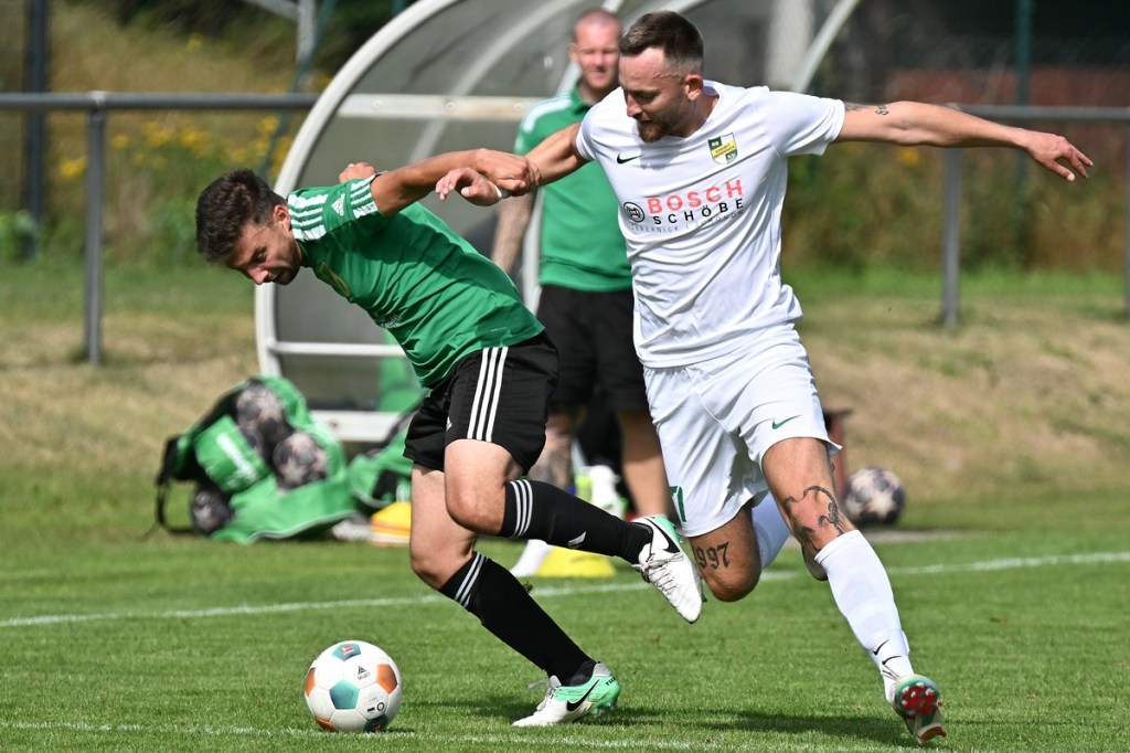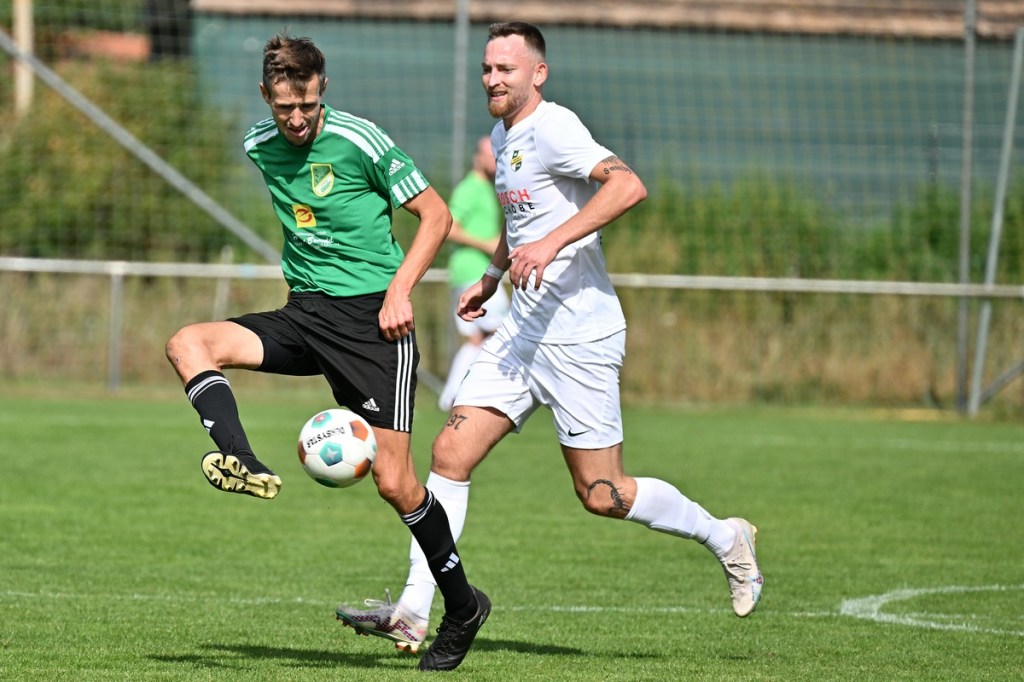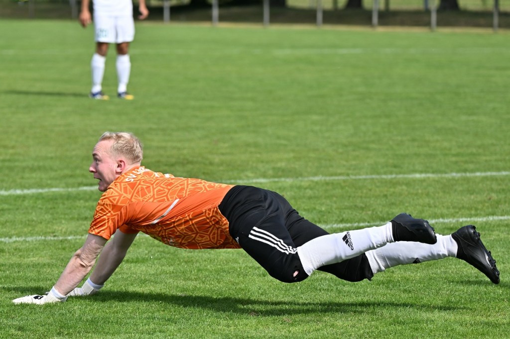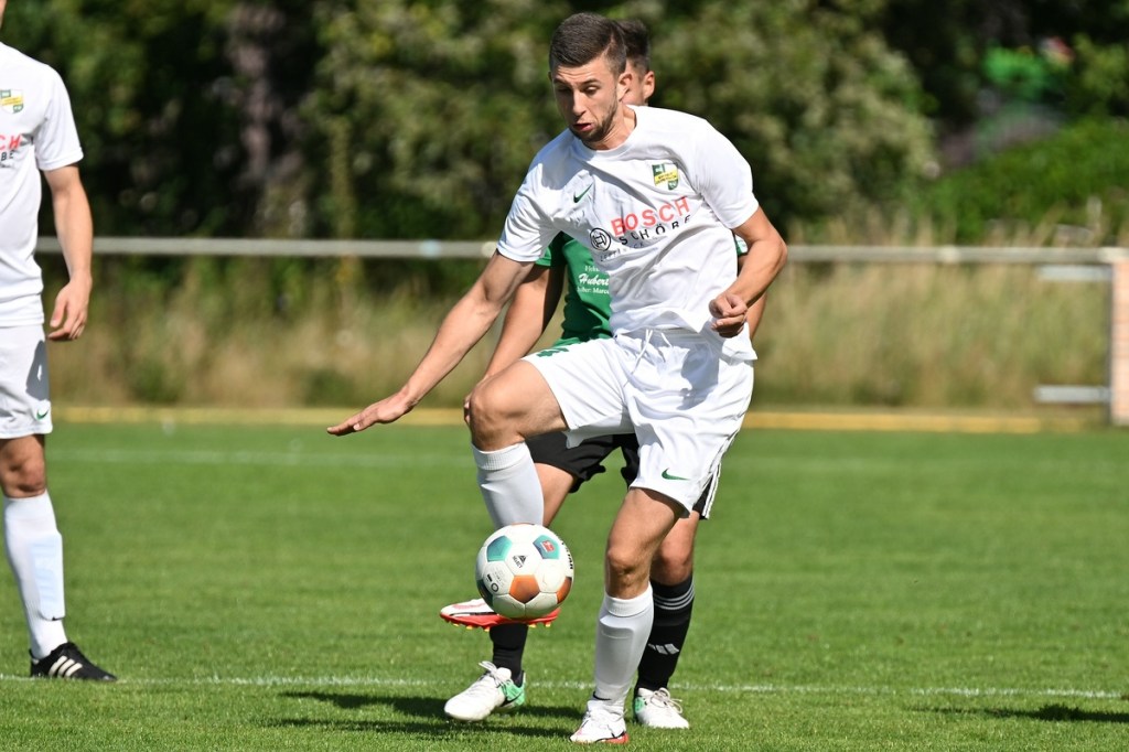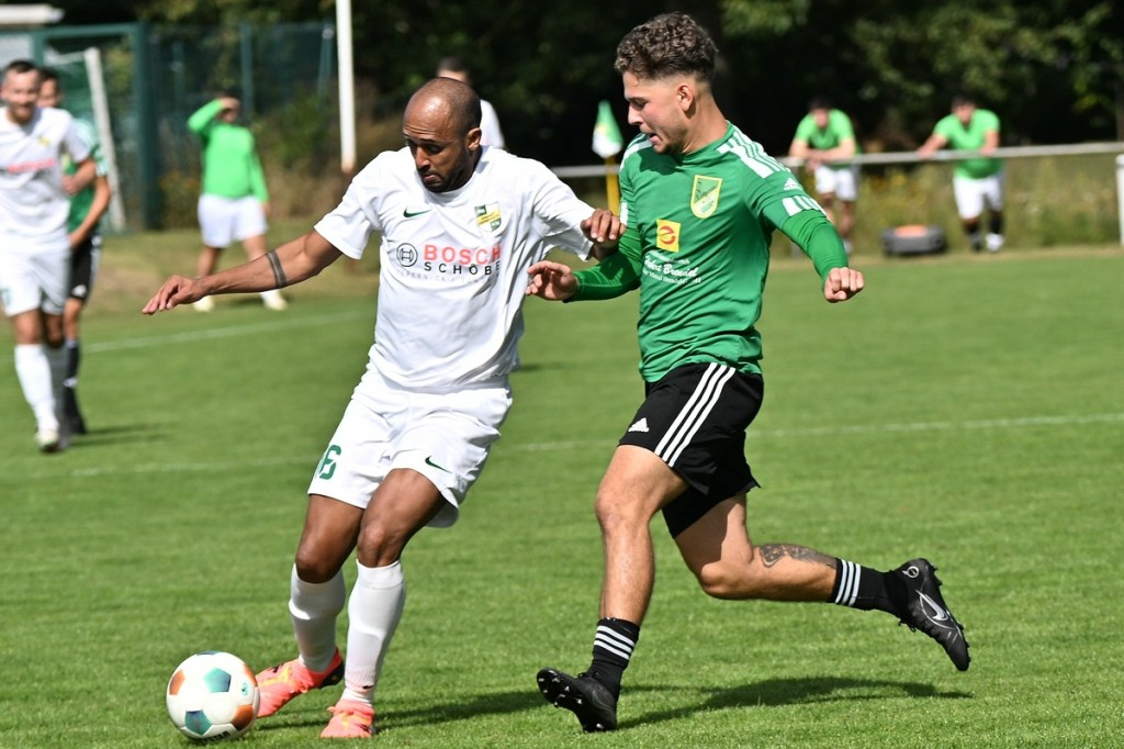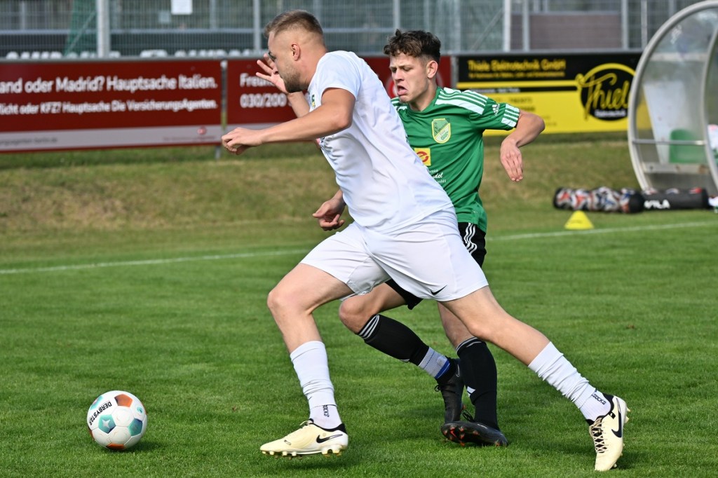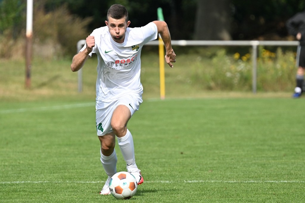 Die Partie wurde in Absprache mit den Gästen kurzfristig auf den Hauptplatz vom Kunstrasenbelag auf das sehr gepflegte Naturgrün verlegt. Ein Umstand, der den favorisierten Spielgemeinschaftlern wohl eher zugutekam als den Hausherren, die ihr gewohntes Umfeld mit den geringeren Maßen damit aufgaben. „Dies war eine Entscheidung der Mannschaft und uns war das Risiko schon bekannt“, hatte Ratajczak die Platzverlegung begründet und damit jeden Zweifel weggewischt. Besonders die Anfangsminuten wurden zum taktischen Abtasten. In der 8. Minute erzielten die Gäste das erste Mal eine gewisse Aufmerksamkeit. Dabei bekam Martin Kühn nach einem Ballverlust der Zepernicker über zwei Stationen die Chance draufzuhalten. Schlussendlich klärte die Heimabwehr im Verbund auf Kosten eines Eckballs. Einheit brauchte fünfzehn Minuten, um gefährlich zu werden. Piet Dübel nahm eine Eingabe in artistischen Ansatz und verfehlte sein Ziel um einen Meter. Die Partie schleppte sich etwas, weil keine der beiden Vertretungen es irgendwie schaffte, die Gemengelage an sich zu reißen. Zwar wirkte der Auftritt der Gäste etwas strukturierter, griffiger und weniger fehlerbelastet, mehr aber auch nicht. Chancen blieben Mangelware. Da änderte der Schuss von Tobias Koepnick, der die Zepernicker Querlatte zittern ließ, auch nichts (23.). Was aber immer offensichtlicher wurde, war der Fakt, dass Einheit gravierende Probleme im Spielaufbau hatte und die Gäste kein Mittel fanden bzw. wach genug waren, dies in die eigene Nutzung zu bringen. So brannte es am Einheit-Strafraum in der 32. Minute lichterloh, als der spieleröffnende Pass völlig verunglückte. Tobias Koepnick war zur Stelle, legte sich die Kugel zurecht und zog ab, doch mehr als ein abgefälschter Ball mit folgendem Eckenstandard sprang erst einmal nicht heraus. Doch diesen münzte die SpG in einen Torerfolg um. Michael von Zobeltitz stieg am höchsten und hatte keine Mühe, das Spielgerät einzuköpfen (33.). Die Hausherren versuchten weiterhin, mit langen Bällen die Offensive anzukurbeln. Dies gelang zwar nur sporadisch, hatte aber Potenzial. Doch zwingend wurde es kaum, allein weil es an Kaltschnäuzigkeit fehlte und auch der Mut, den Angriff zu Ende zu spielen, anstatt die Geschwindigkeit herauszunehmen. Den nächsten Aufreger produzierte die schlechte Abstimmung in der Heimhintermannschaft, speziell von Jan Gedenk und seinem Torhüter Cedric Stange. Gedenk ließ einen langen Gäste-Abschlag passieren, in der Hoffnung, dass Stange mitspielen würde. Stattdessen roch von Zobeltitz den Braten, preschte dazwischen und vollendete. Schlussendlich ließ eine wacklige Abseits-Entscheidung die Hausherren ohne weiteres Gegentor durchatmen (41.). Tobias Koepnick, neben von Zobeltitz, der agilste SpG-Angreifer, erzielte das 0:2. Dabei zeigte er sehenswerte Schuss-Qualitäten, als er einen abgewehrten Ball aus dem Rückraum unhaltbar in den rechten oberen Dreiangel versenkte (42.). Einer der seltenen Hausherren-Konter hätte der Anschlusstreffer sein müssen. Ariclaiton Oliveira Fernandes gewann nach einem Steilpass über die linke Seite sein Laufduell und passte dann quer im SpG-Strafraum auf den mitgelaufenen Chris Nordau, der mit allen Freiheiten ausgestattet war. Doch seinen Schuss verstolperte er und gab somit Gäste-Schlussmann George Burghause die Möglichkeit, einzugreifen (45.).