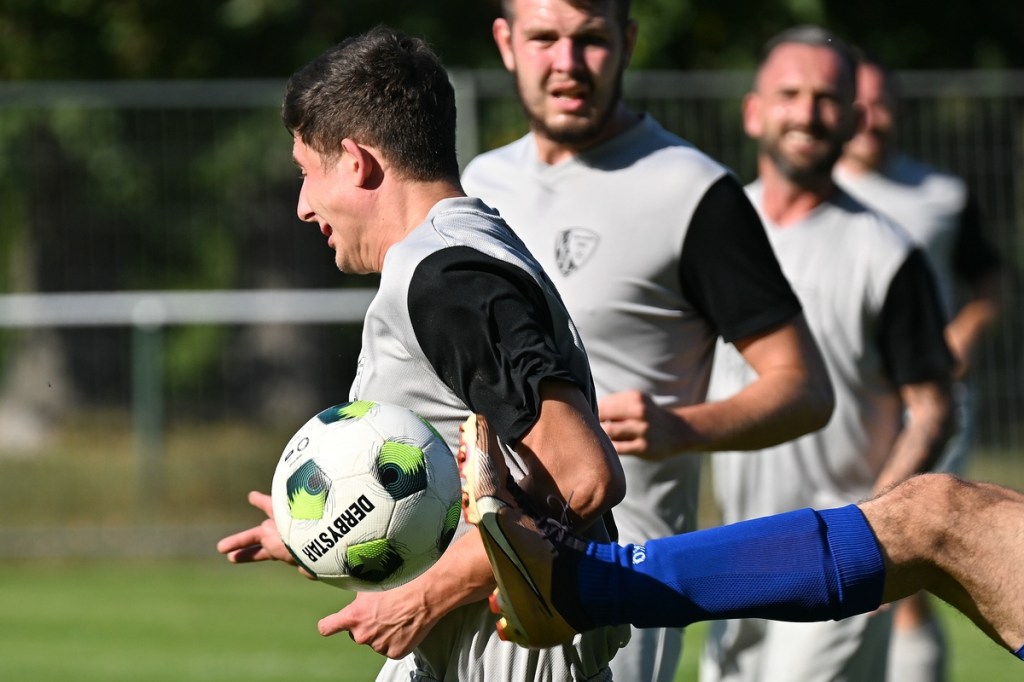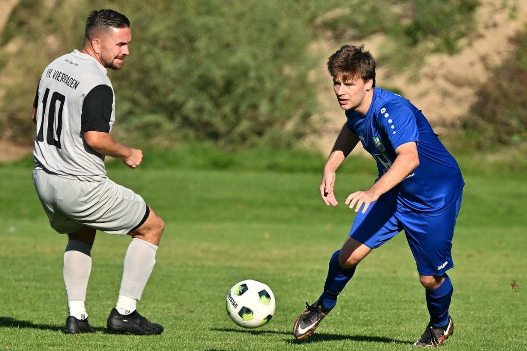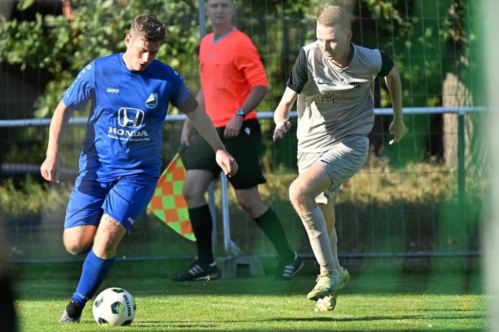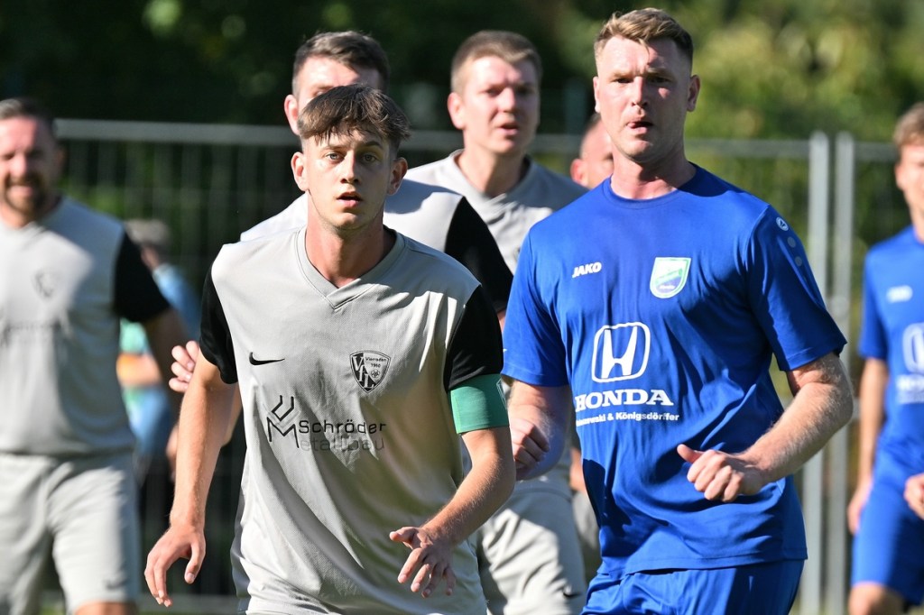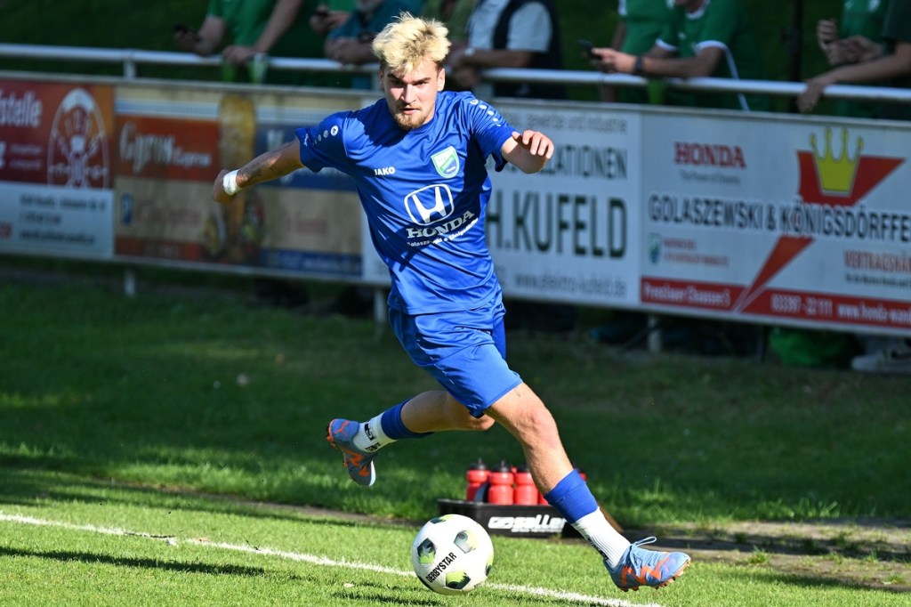 Mit fünfzehnminütiger Verspätung begann die Partie. Vierraden konnte sich staugeplagt erst recht spät vervollständigen und bat um die zeitliche Anstoßverschiebung. Die Gäste im Neuland der Landesklasse Nord ließen es gemächlich angehen und zelebrierten mit Ball hin und her Geschiebe Sicherheitsgefühl in den eigenen Reihen. Vier Minuten schaute Wandlitz dem genüsslich zu. Ein Ballgewinn wurde in einen Steilpass umgemünzt, den Roman Schmidt in Torjägermanier an Gästekeeper Kevin Möbius unhaltbar vorbeischob (4.). Die VfL-Jungs tauchten nun in eine Phase ein, in der vieles richtig gemacht wurde, aber auch augenscheinlich der Grund zu finden war, warum noch kein Punktgewinn auf der Habenseite stand. „Uns fehlen heute einige wichtige Spieler“, hatte VfL-Torhüter Kevin Möbius im Vorgespräch die Erwartungen heruntergeschraubt. Diese fehlten den Hausherren aber auch. Der Vorwärtsgang der Gäste war im Wesentlichen griffiger, als dem, was die Eintracht indessen anbot. Doch in der Zielregion fehlte den Uckermarkern ganz einfach die Kaltschnäuzigkeit, die Geschwindigkeit und auch ein wenig der Mut. So schleppte sich die Begegnung auf unterem Niveau Richtung Halbzeitpfiff, woran die Hausherren in Punkto Qualitätsmängel den etwas größeren Part für sich gebucht hatten. Roman Schmidt war der Wandlitzer, der den zählbaren Unterschied schlussendlich ausmachte. Den Ball auf der rechten Seite, Höhe Mittellinie, in Besitz nehmend, startete Schmidt ein Solo, welches er sehr abgeklärt aus angespitztem Winkel flach und unhaltbar im Torjubel beendete (41.). Keine sechzig Sekunden später stellte die Anzeigetafel auf 3:0. Schmidt zeigte wiederholt hundertprozentige Effizienz, als er Nutznießer eines unnötigen Ballverlustes der Gäste wurde. In der 44. Minute bekam der „Wirkungsgrad“ des Hattrick-Inhabers einen leichten Dämpfer. Ein Konter, mit Fast-Torgarantie, wurde im Zusammenspiel mit seinem Kollegen Petrahn in letztendlich ungenauen Doppelpässen nicht ins Ziel gebracht. So führte die Eintracht zwar verdient, aber in der Art und Weise schon moralisch niederschmetternd für die Gäste.