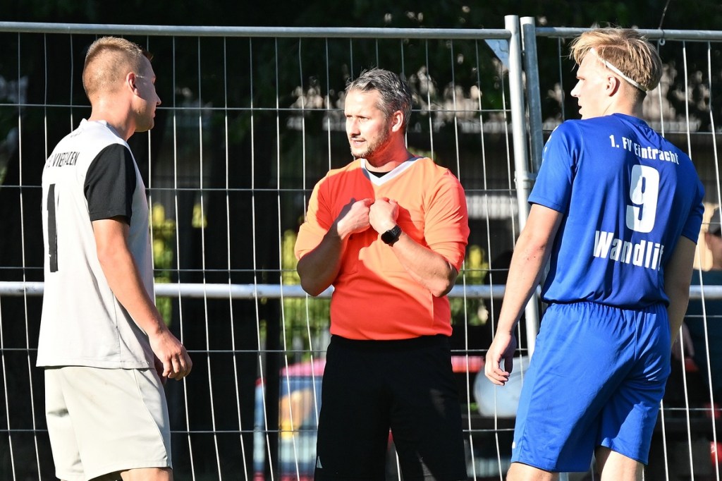 Eintracht Wandlitz gewinnt das Heimspiel, umringt von Baustellen, in der Höhe zwar verdient, muss sich aber den klaren Vorwurf gefallen lassen, gerade im ersten Durchgang einen ganz schwachen Auftritt hingelegt zu haben. Es wird viel gewerkelt auf und neben der Eintracht-Arena und irgendwie hinterlässt das Ganze den Eindruck einer längeren Bauunterbrechung, weil vieles seit geraumer Zeit unangetastet wirkt. Da wird ein Kunstrasenplatz angelegt, ein Kabinentrakt gebaut und ganz nebenbei die Hauptstraße ertüchtigt. Und wenn man passend dazu das Wandlitzer Team nüchtern betrachtet und deren Leistung hinzuzieht, hat Wandlitz-Coach Matthias Händler, der im Übrigen seit kurzem in der Vereinsvorsitzenden-Verantwortung ist, auch noch einige Mängelbeseitigungen anzugehen. „Wir machen gerade einen Mini-Umbruch durch und ich sehe uns auf einem sehr guten Weg. Was schon ein Grundunterschied zur Vergangenheit ist, dass wir in der Breite viel größer aufgestellt sind,“ so Trainer in leicht angehauchter Zukunfts-Euphorie.