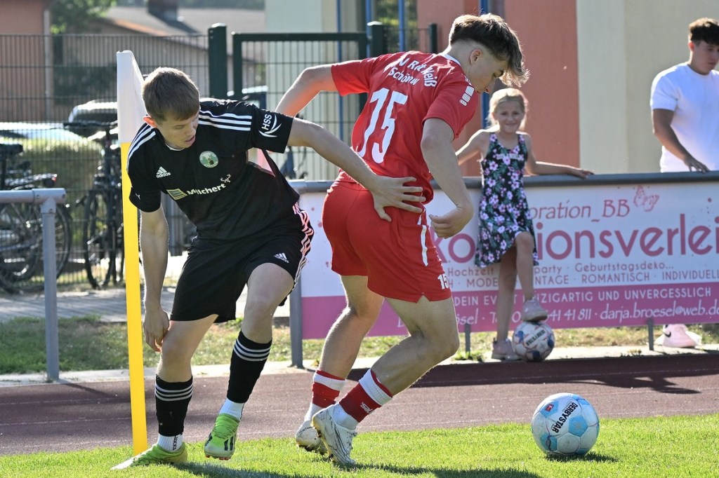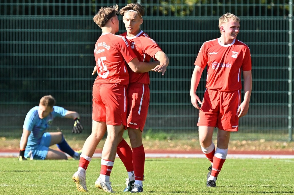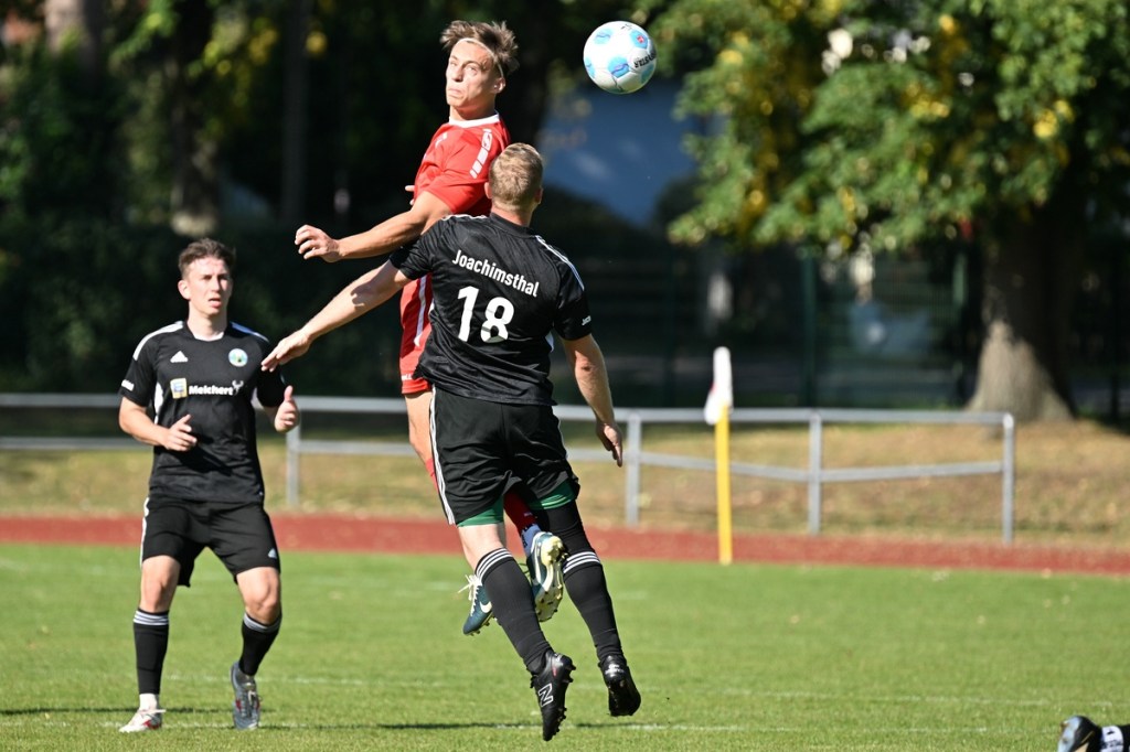 Den Kopf gesenkt und in sich gekehrt, ließ Schorfheides Coach Andy Lindt den Hausherrenjubel kurz nach Abpfiff über sich ergehen. Es war ein bitterer Moment, den seine Truppe in der 93. Minute erleben musste, als sich Schönows Sturmtank Maximilian Bachnick auf den Weg machte, um Joachimsthals Keeper Luca Meng zu überlupfen und damit die rot weiße Seele vollends beglückte. „Grundsätzlich sind wir konditionell sehr gut aufgestellt. Trotzdem hat uns die Krankheitswelle unter der Woche ein wenig die Luft genommen“, so die Begründung für die offensichtlichen Verschleißerscheinungen im zweiten Durchgang, die scheinbar dann doch die Hauptursache für das niederschlagende Ende darstellte. „Ein wenig bin ich schon enttäuscht von beiden Teams. Nach der sehr guten ersten Halbzeit wurde der Faden verloren und schlussendlich hätte das Spiel keinen Sieger verdient“, so die Meinung von Lindt zum gesamten Spielgeschehen. Sein Gegenüber, Schönows Übungsleiter Florian Gerber hatte in puncto Ergebnisverdienst dann doch eine etwas andere Meinung. „Ich finde schon, dass wir verdient gewonnen haben. In der ersten Halbzeit haben wir viel Aufwand betrieben und uns nicht belohnt. Im Gesamten hat meine Mannschaft mehr für das Spiel getan. Mein Eindruck war auch, dass die Joachimsthaler in Hälfte zwei auf ein Unentschieden aus waren. Wir haben uns hinten heraus schon schwergetan, aber weiterhin an uns geglaubt.“