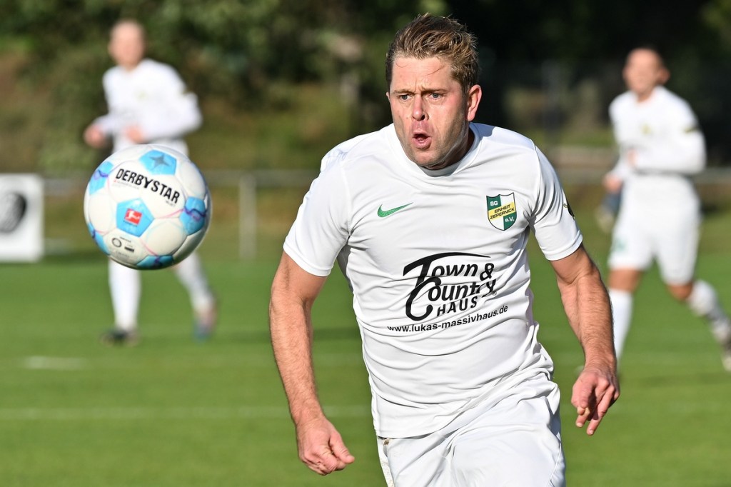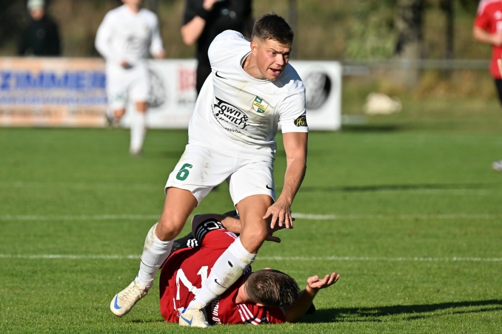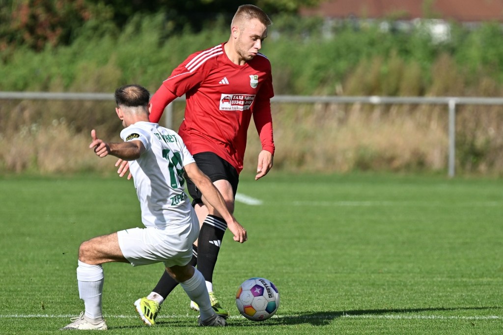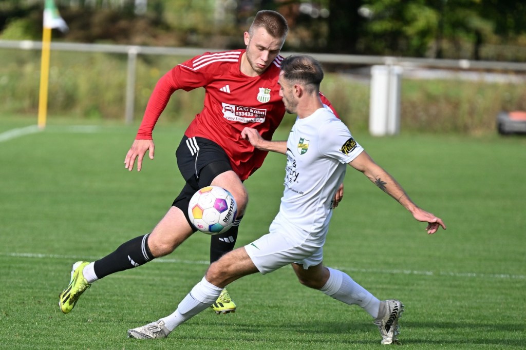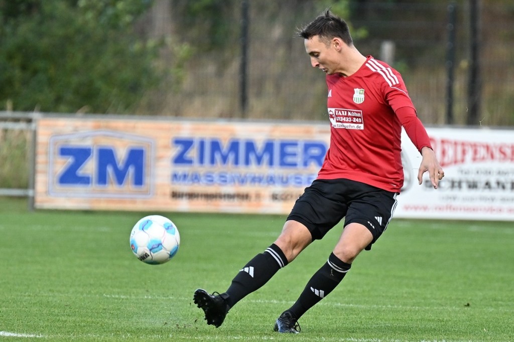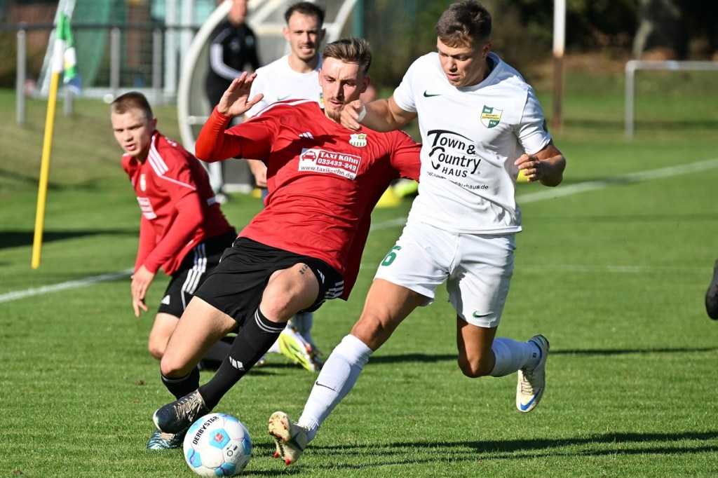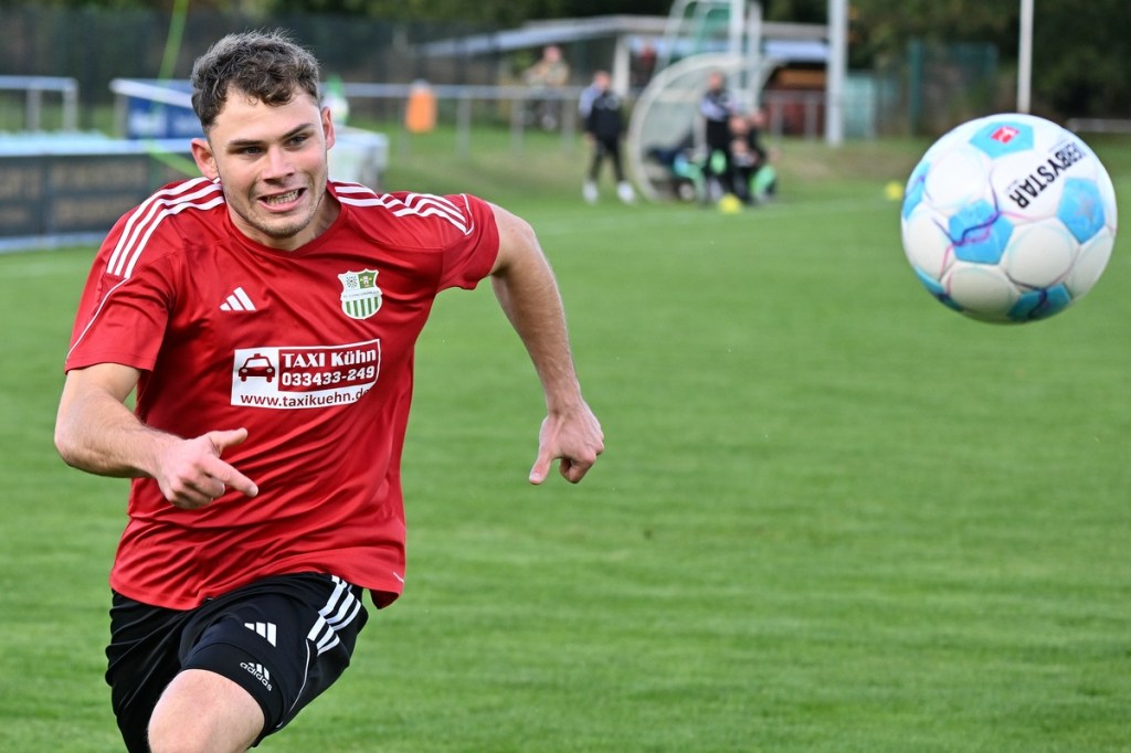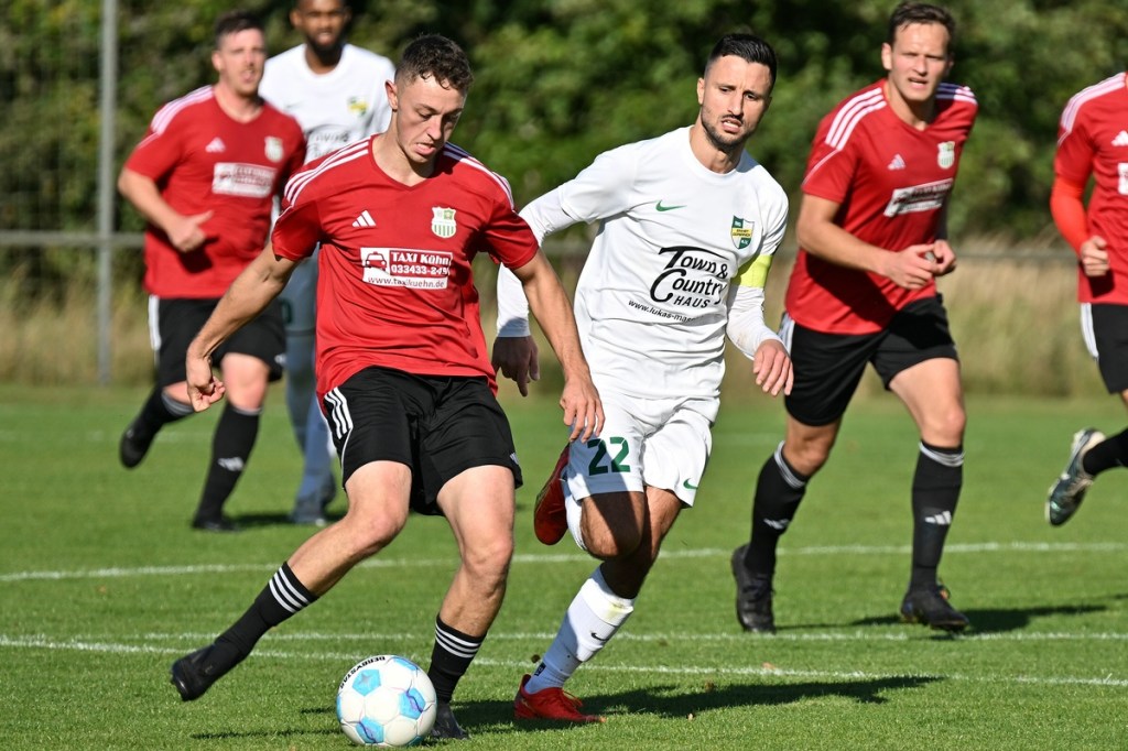 Dabei begann die Begegnung sehr taktisch geprägt. „Buckow ist schon sehr hoch angelaufen“, stellte Zepernicks Trainer Daniel Lingfeld im Nachgespräch fest und musste auch zugeben, dass sich seine Mannschaft spielerisch dadurch nicht sehr entfalten konnte. Zehn Minuten blieben die Strafräume fast verwaist und zu diesem Zeitpunkt war schon zu erahnen, dass dies auch so weitergehen konnte. Doch der erste Angriff der Hausherren hätte diese These über den Haufen werfen können. Luca Grabarek bekam die Kugel rechtslastig in Lauf gespielt. Er gewann sein Sprintduell und flankte sauber in die Mitte zum mitgelaufenen Paul Maurer, der mit neunundneunzig prozentiger Quote das 1:0 hätte erzielen können. Doch irgendwie versagten ihm die Nerven, als er den Ball knapp links am Tor vorbeischob (11.). Obwohl Lingfeld in der Nachbetrachtung zu Halbzeit eins seine Truppe auf Augenhöhe sah, wirkte Buckow/Waldsieversdorf einfach griffiger und zweikampfgieriger, aber ohne nach dem Ballgewinn die ganz große Torgefahr auszustrahlen. Den nächsten Einheit-Riesen hatte wieder Paul Maurer für sich reserviert. Nach einem Eckball von der rechten Seite bekam er den abgewehrten Ball hervorragend aufgetischt, doch wie beim ersten Versuch, setzte er das Spielgerät neben den Kasten (19.). Während die Gäste vieles richtig machten und Zepernick versuchte besser zu werden, unternahm Maurer den nächsten Anlauf seine Farben auf die Anzeigetafel zu bringen. Ein Freistoß aus siebzehn Metern, recht mittig gelagert, zirkelte er sehenswert und unhaltbar über die Mauer in den linken Dreiangel zum 1:0 (36.). Die Gäste mussten schon mit sich hadern, denn bei allem, was die Truppe so positiv produzierte, fehlte ihnen schlussendlich im Zielgebiet der letzte Punsch, die Idee und vielleicht auch der Knipser. Der Treffer verschaffte den Hausherren nicht nur im Ergebnis etwas Luft, sondern auch in der Spielanlage.