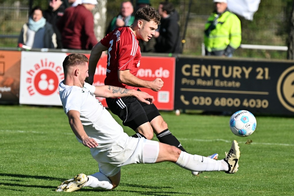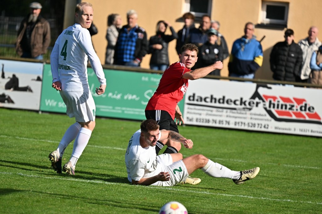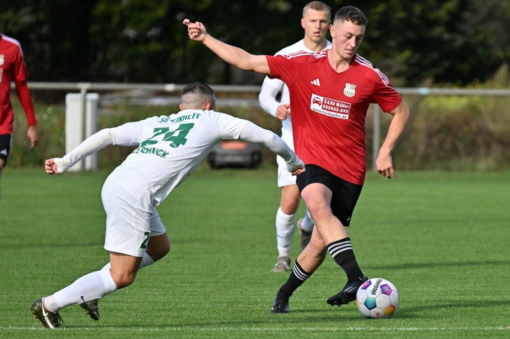 „Das ist hier schon Rohkost“, hatte Zepernicks Routinier Max Gerhard in der Halbzeit im Vorbeigehen in den Raum geworfen und dies sicherlich auf die allgemeine Spielqualität bezogen. Damit hatte er aber auch recht und musste erst einmal zu sehen, wie die Gäste mehr und mehr die Spielkontrolle übernahmen. Chancen blieben immer noch Mangelware, doch der Ausgleich rückte spürbar näher. Zepernicks Konteransätze versiegten, doch in den Standards, wie bei dem Eckball in der 60. Minute wurde es noch einmal knackig. Rodrigo De Jesus Mendes stieg ohne Gegenwehr zum Kopfball hoch, schien dabei etwas überrascht zu sein und setzte den Ball Zentimeter neben dem Pfosten ins Aus. Während für die 03er aus dem Spiel heraus weiterhin die klaren Möglichkeiten ausblieben, brachte ein Freistoß aus dem rechten Halbfeld das ersehnte und auch verdiente 1:1. Jonas Ehm war am langen Pfosten am höchsten gestiegen und damit erfolgreich, als er den Ball mit der Stirn über die Linie drückte (67.). Einheit schien angeknockt, denn Buckow/Waldsieversdorf drängelte weiter. Die Partie war inzwischen tief in den Kampfmodus eingetaucht. In die reagierende Rolle gezwungenen Hausherren versuchten per Konter Offensive auszustrahlen, was kaum noch gelang. Die 82. Minute war angebrochen, die Gäste griffen über die rechte Seite an und eine passgenaue Flanke erreichte Ibrahim Cante. Der zeigte sich in Stürmermanier und ließ dem armen Tietz im Kasten der Zepernicker keine Abwehrmöglichkeit. Einheit suchte die berühmte Brechstange, fand diese erst spät und kam nur noch zu einem erwähnenswerten Abschluss. Diesen setzte Max Gerhard, halbrechts, aus der zweiten Reihe ab, mit dem Resultat, dass die Kugel die Querlatte knapp ins Aus passierte (90.). „Eine völlig unnötige Niederlage“, begann Daniel Lingfeld sein Statement. „Wir hätten das Spiel in der ersten Halbzeit festmachen können und haben heute leider die Möglichkeit einen großen Schritt zu vollziehen, verpasst. Kämpferisch kann ich heute keinem einen Vorwurf machen. Aber so ganz unschuldig an der Niederlage sind wir nicht.“