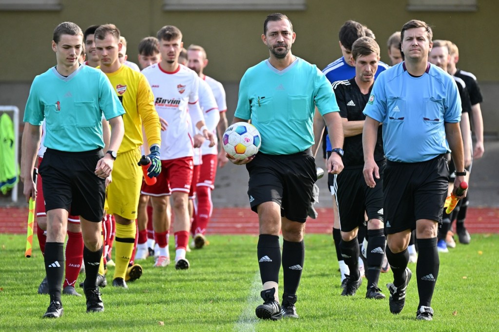 Das Spielgehen nach dem Wiederanpfiff veränderte sich kaum. Die Gäste weiter im Vorwärtsgang und Lok mit größerem Augenmerk in der Verteidigung und sporadischen Kontern. In der 50. Minute war es dann passiert. Dyako Dana Jabar beendete seine Torflaute und Ladehemmungen und zeigte sich diesmal sehr kaltschnäuzig, als er die Kugel im persönlichen Duell mit Bittighofer am Keeper vorbei ins Netz schob (50.). Die Partie tauchte immer mehr in den Kampfmodus ein, passend zu den Platzverhältnissen, die auch immer schwieriger wurden. Leidenschaft und Moral waren die Tugenden, welche die Intensität noch mehr anfeuerten. Emotionen machten sich Luft an Entscheidungen, die Schiedsrichter Sebastian Jahn traf, die aber grundsätzlich nicht falsch waren. So nutzte Jahn in der 74. Minute die neue „Kapitäns-Regelung“ und schickte Rene Hoppe per Ampelkarte vom Feld, weil der sich reklamierend kaum ein bekam. Direkt vor den Toren spielte sich kaum noch etwas ab. Lok hatte die Möglichkeiten, zwar selten im Konter, aber ohne die erforderliche Konsequenz. Die Gäste versuchten alles und schnürten die Hausherren Richtung Spielende immer mehr ein. Die Chancen waren durchaus vorhanden, zumindest, die Verlängerung zu erreichen. Eberswalde wackelte, verteidigte aber mit voller Hingabe und belohnte sich am Ende mit dem Glück des Tüchtigen und dem Erreichen des Viertelfinales.